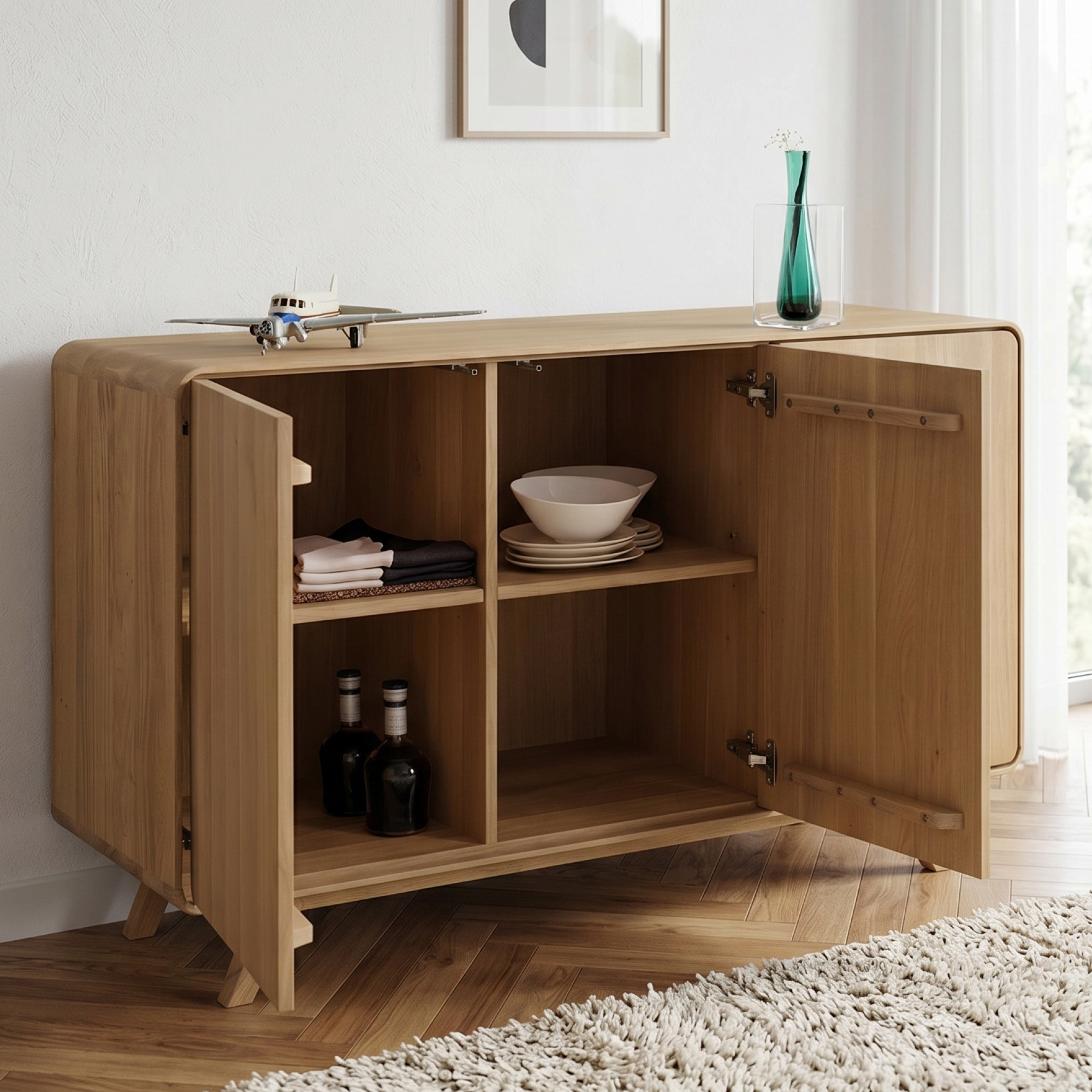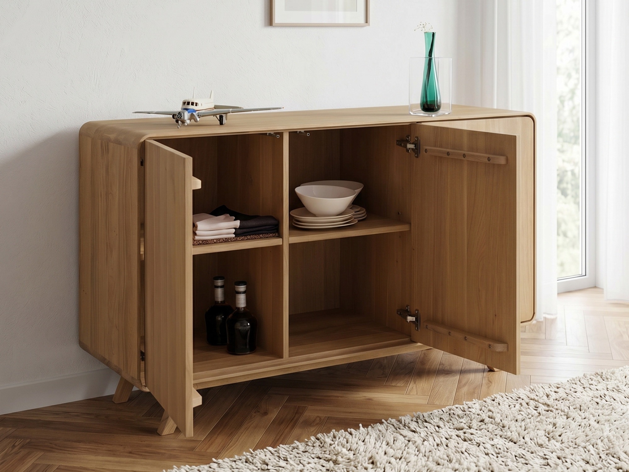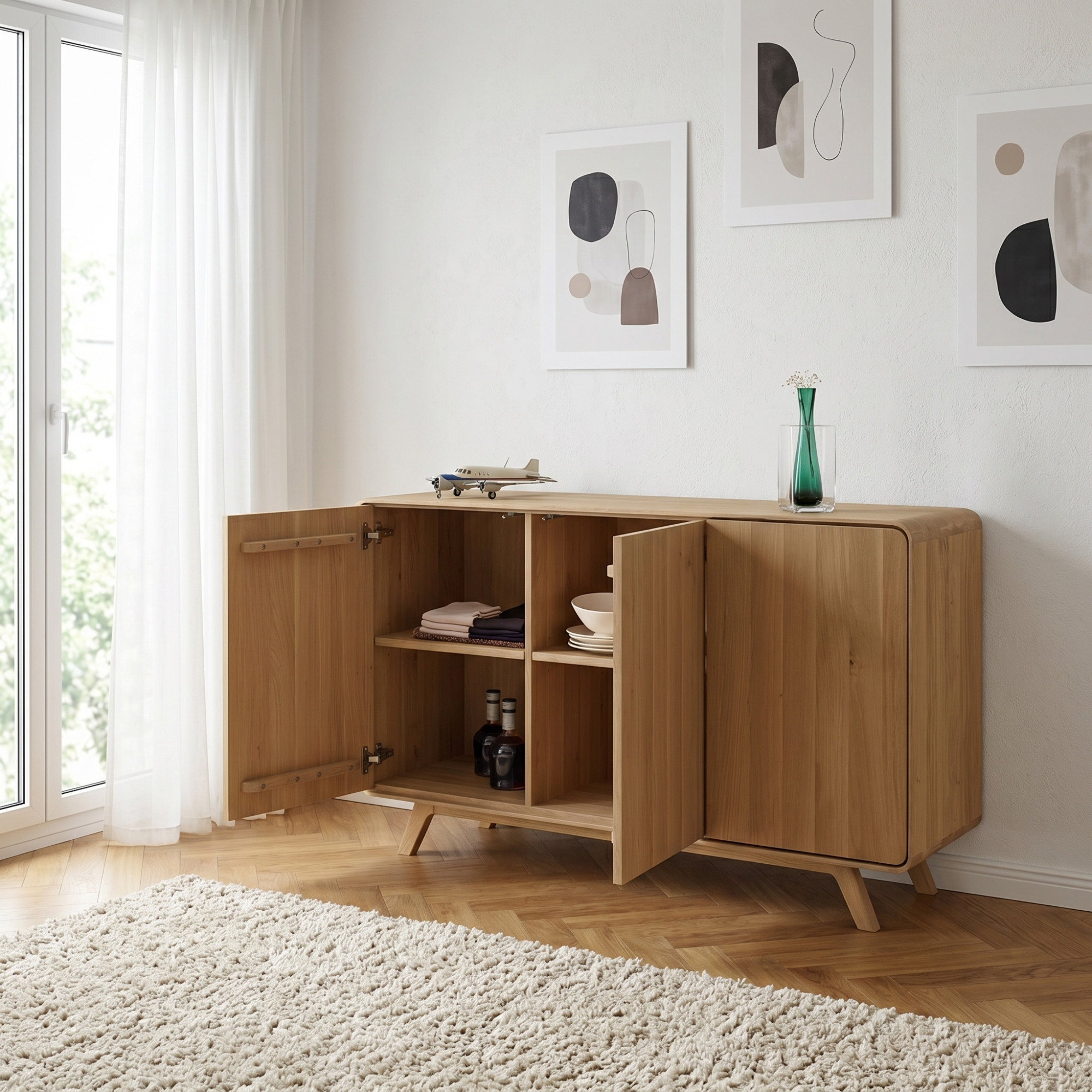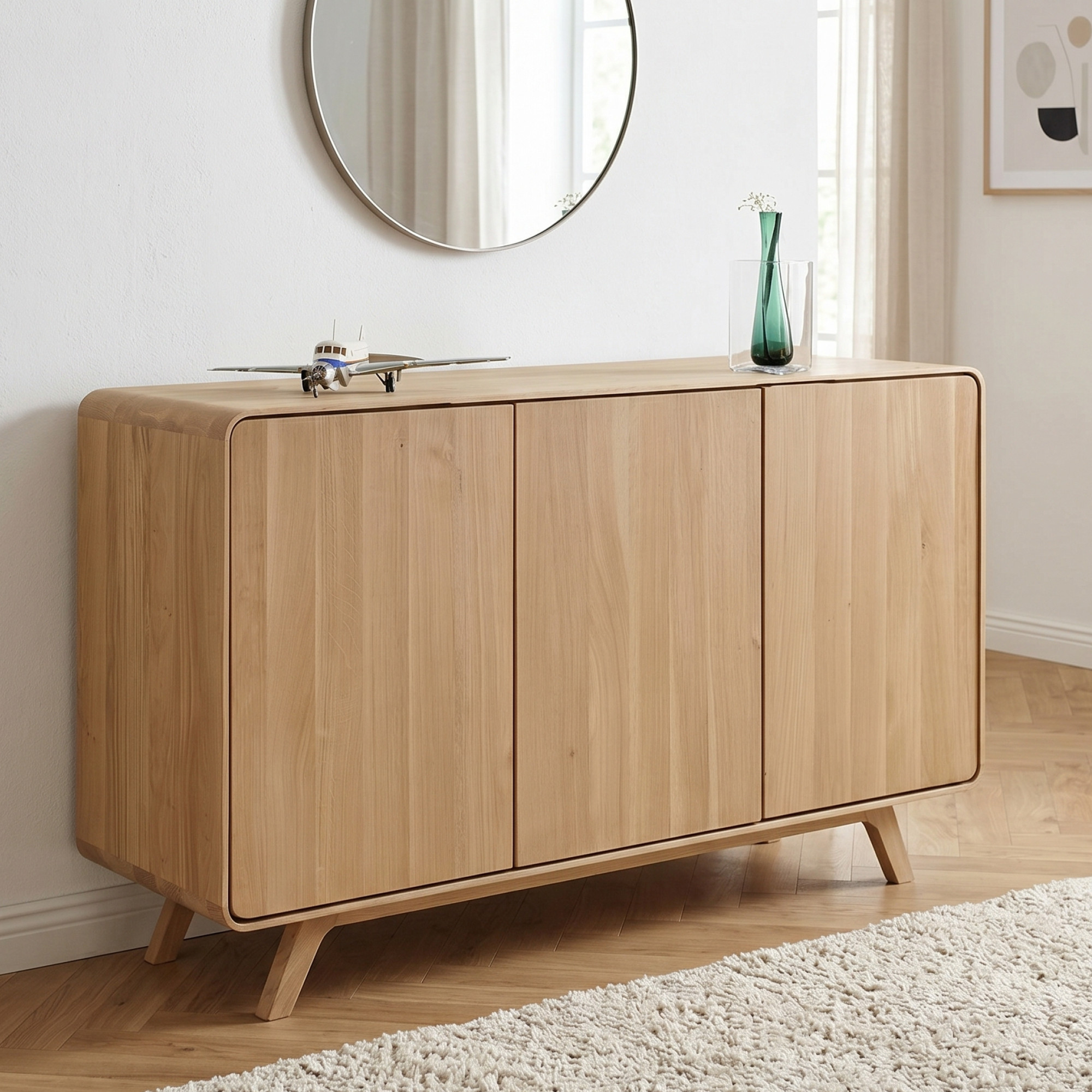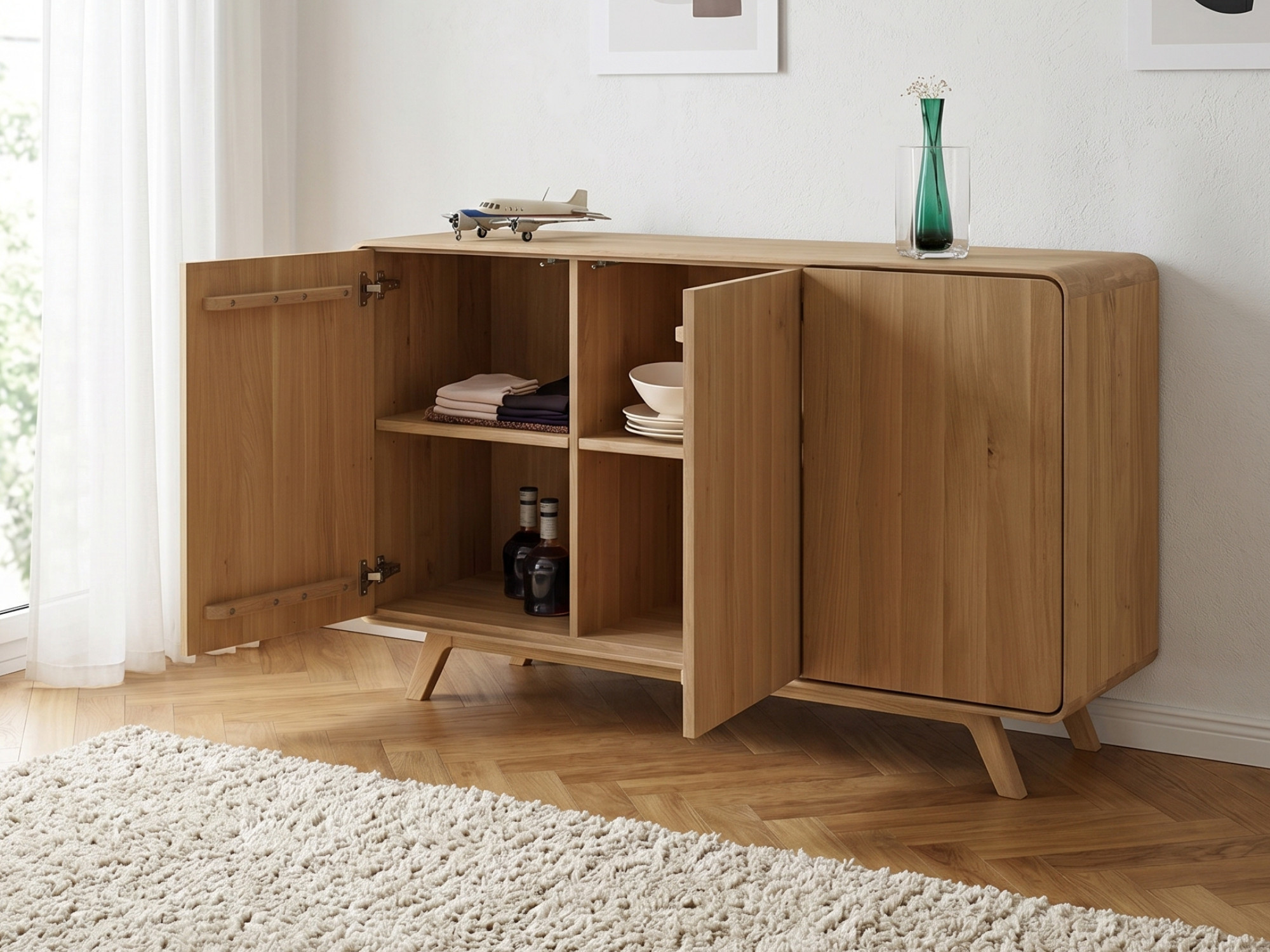 Neue Eichenmöbel-Kollektion 2024: Erleben Sie den Zauber modernen skandinavischen Designs mit unserer exklusiven Reihe, die 2024 auf den Markt gebracht wurde. Diese einzigartige Kollektion verbindet minimalistische Ästhetik mit der Auswahl ausschließlich natürlicher Materialien. Jedes Stück ist sorgfältig aus Eichenholz gefertigt, einschließlich Seitenwände, innere Rahmen, Oberplatten, Türen und Schubladen. Die Verpflichtung zu Detail und Qualität zeigt sich in jedem Schritt, von sanft abgerundeten Ecken bis hin zur überdurchschnittlichen Stärke der Außenflächen von bis zu 2,5 cm, was zu außergewöhnlicher Robustheit und Langlebigkeit unserer Möbel beiträgt. Besonderes Augenmerk gilt den abgerundeten Ecken, die dem Möbelstück einen Hauch von Luxus verleihen.