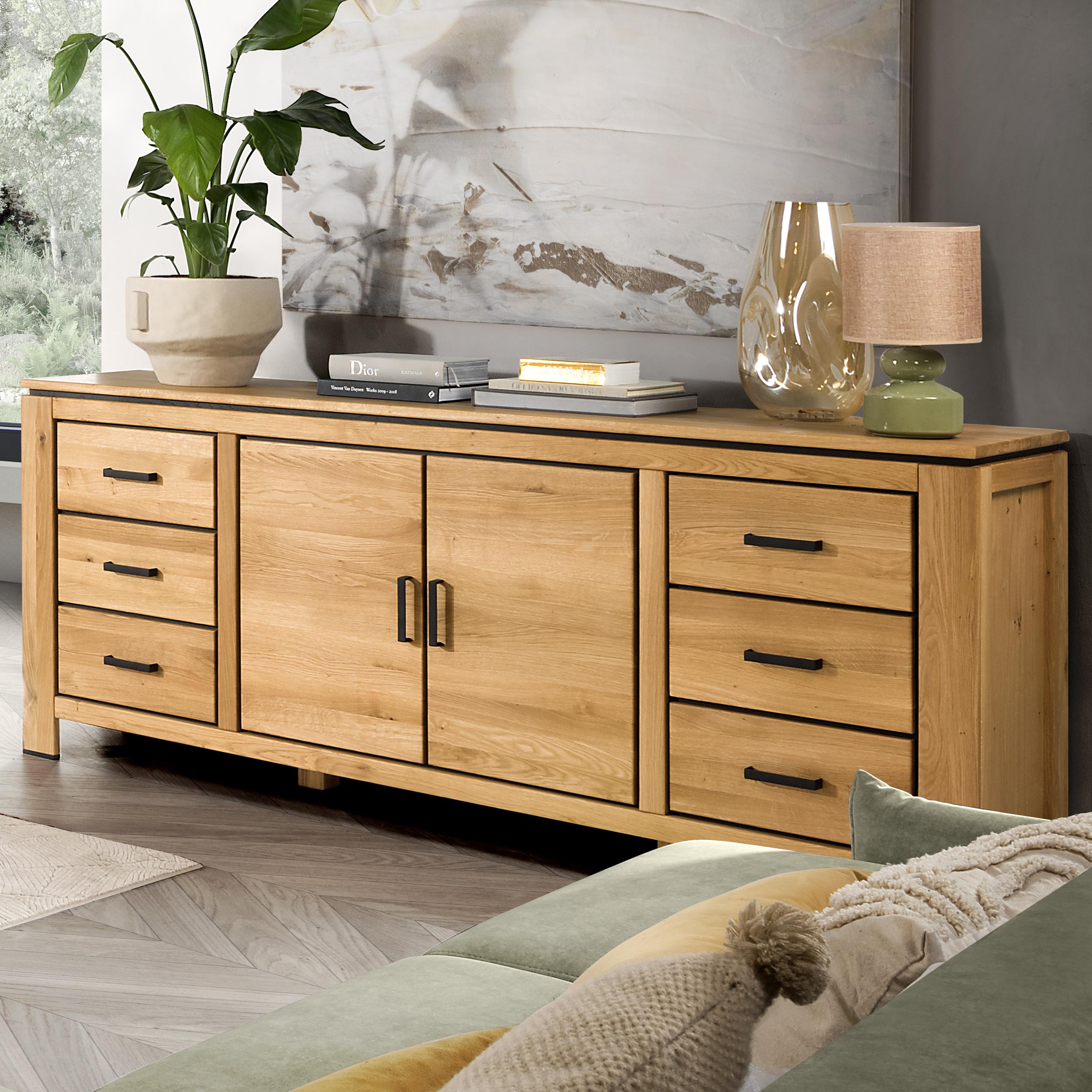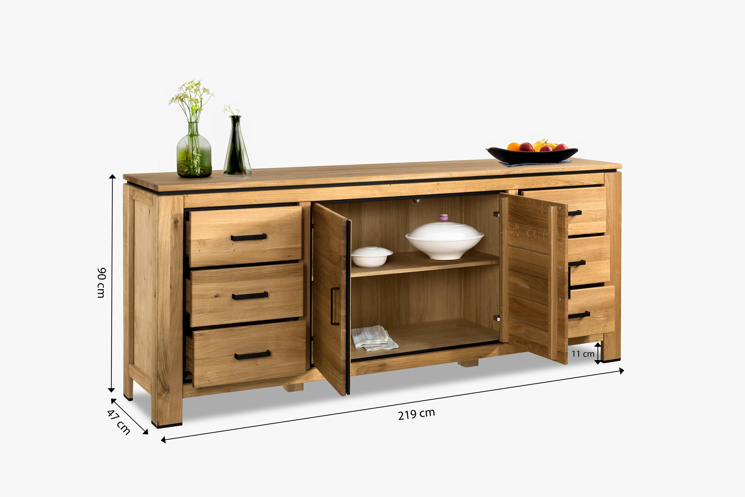 Lange Eichenkommode mit schwarzen Griffen Typ NEW LINE II 49