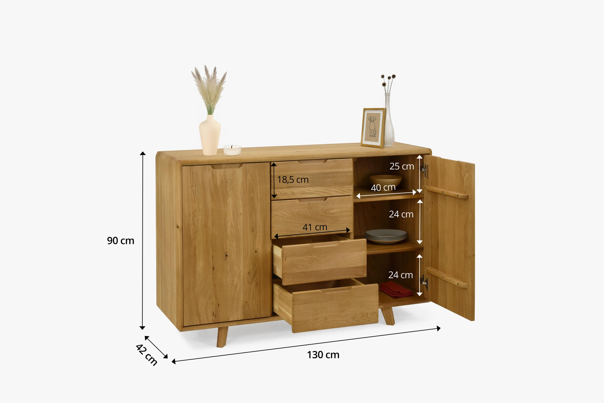 - Massives Eichenholz – sorgt für Langlebigkeit und Stabilität der Kommode.