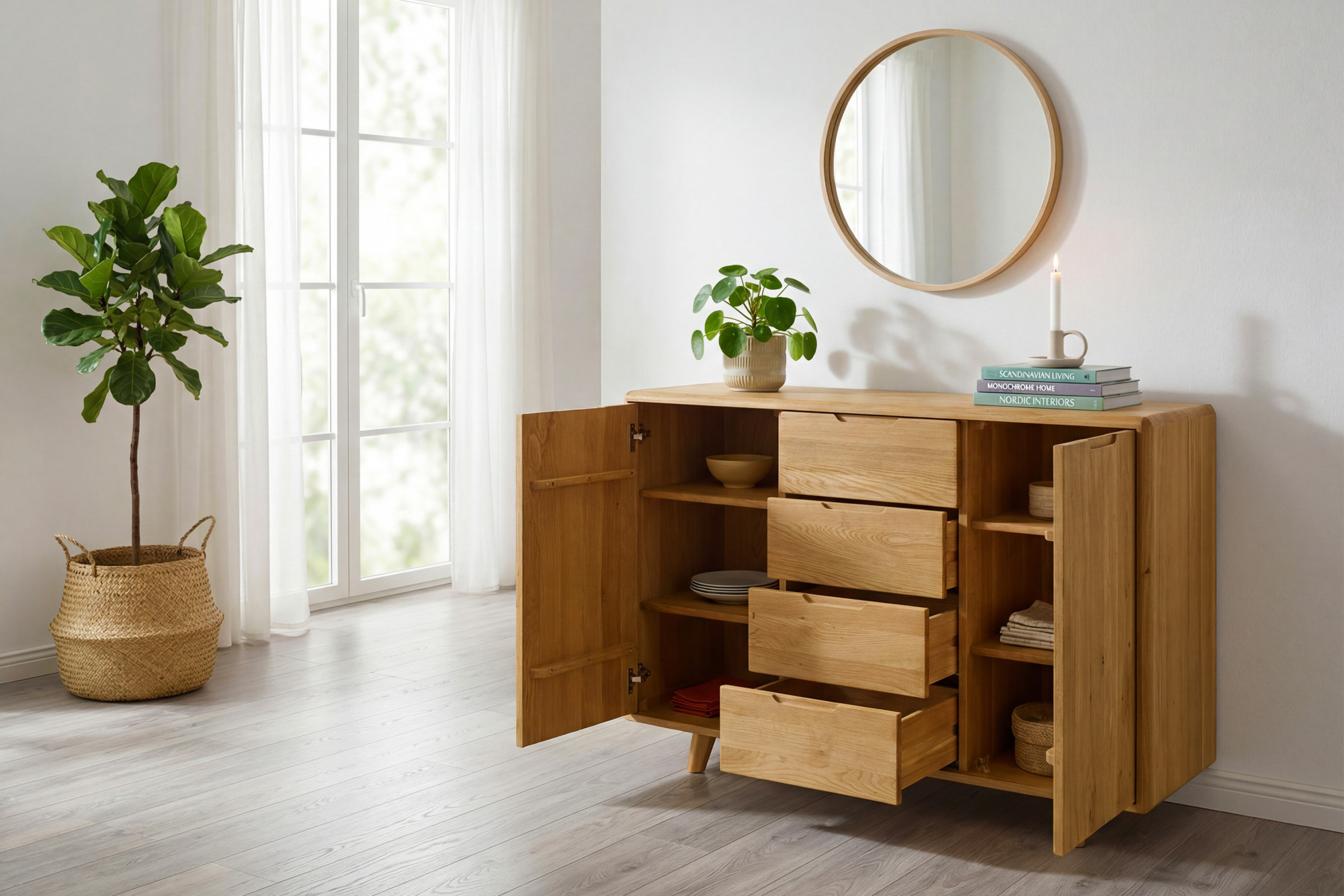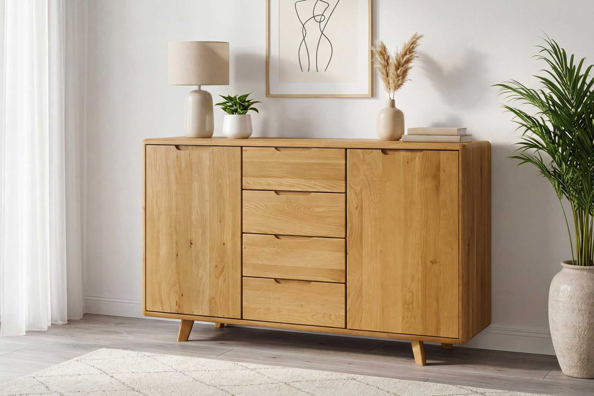 Holzkommode Eiche natur mit Schubladen & Türen skandinavisch