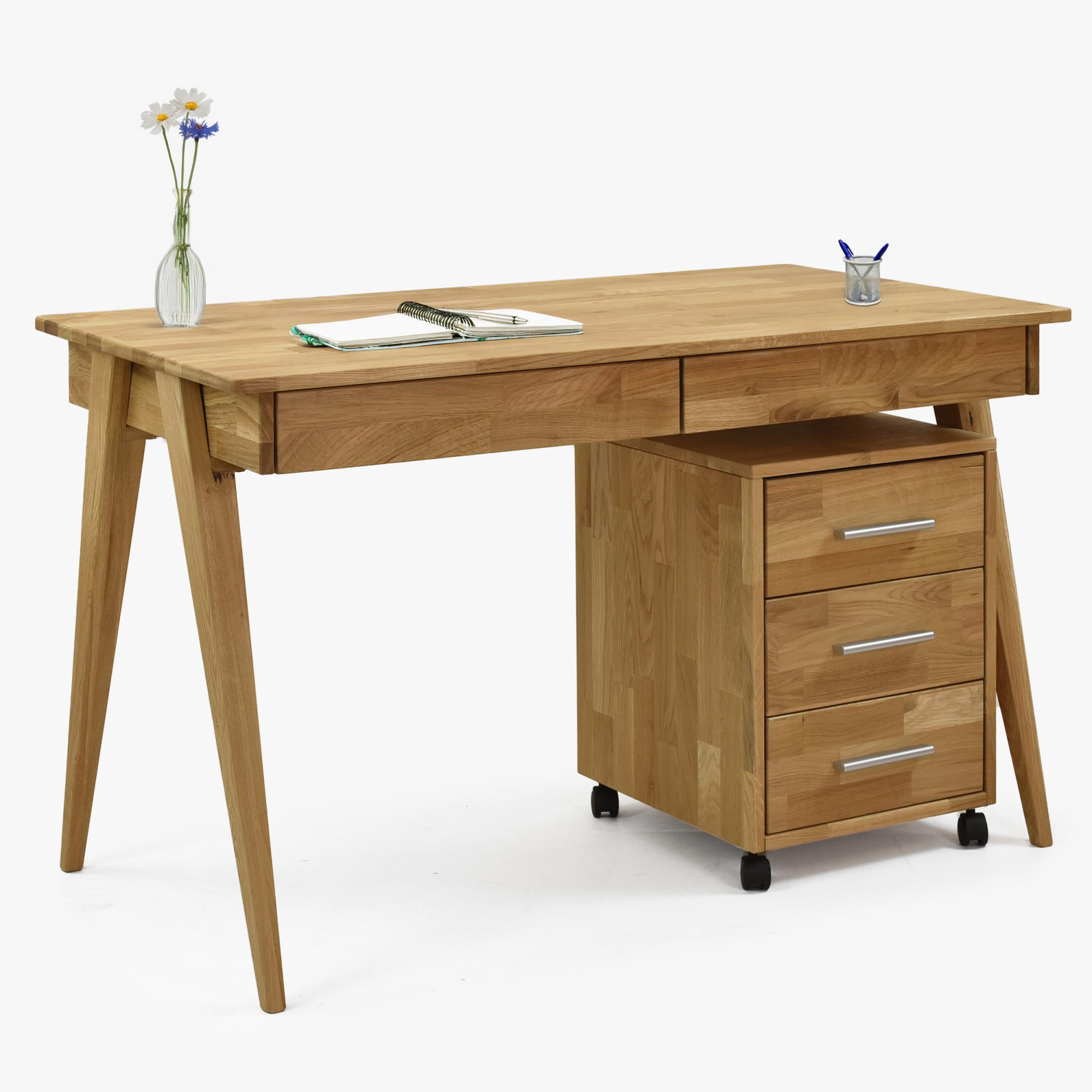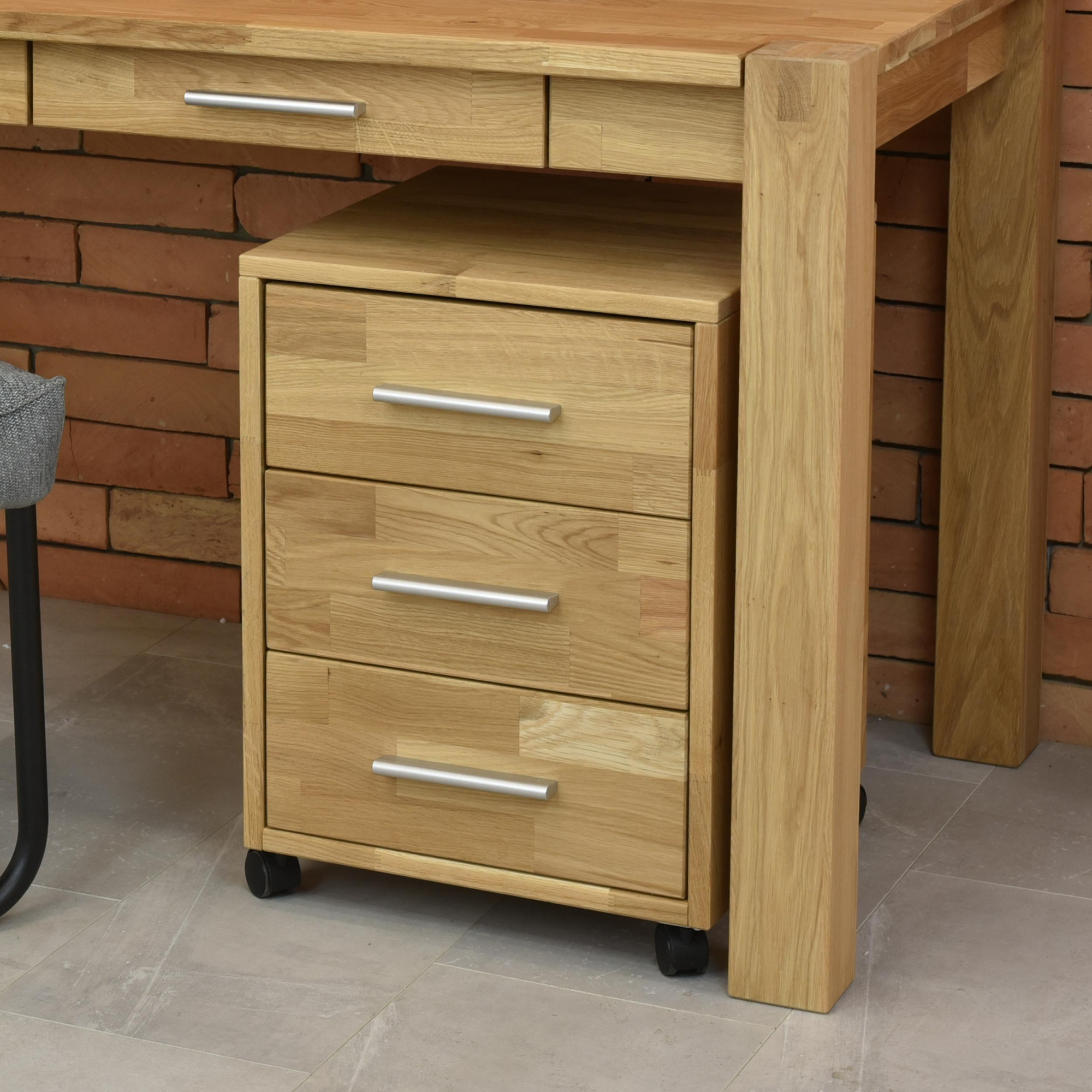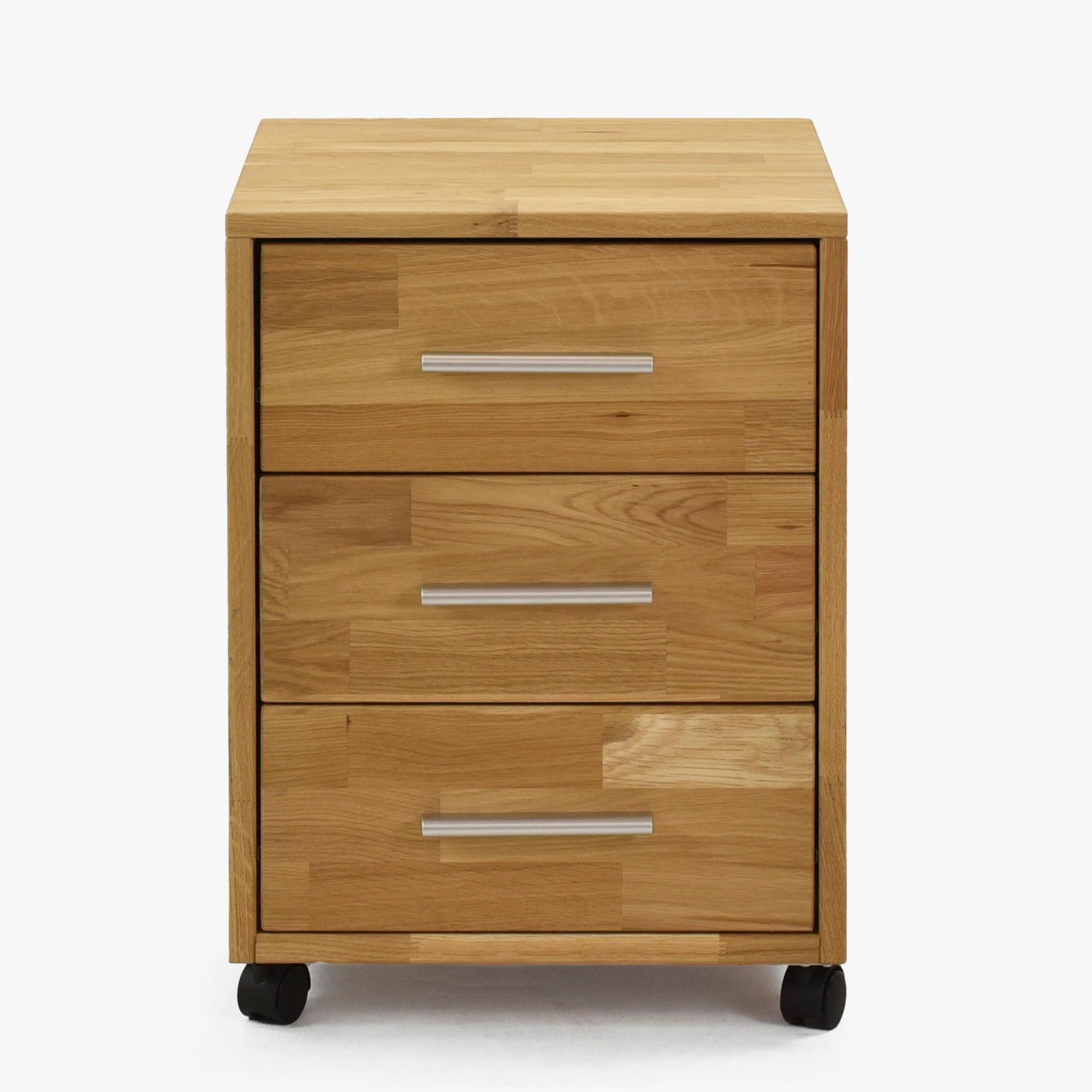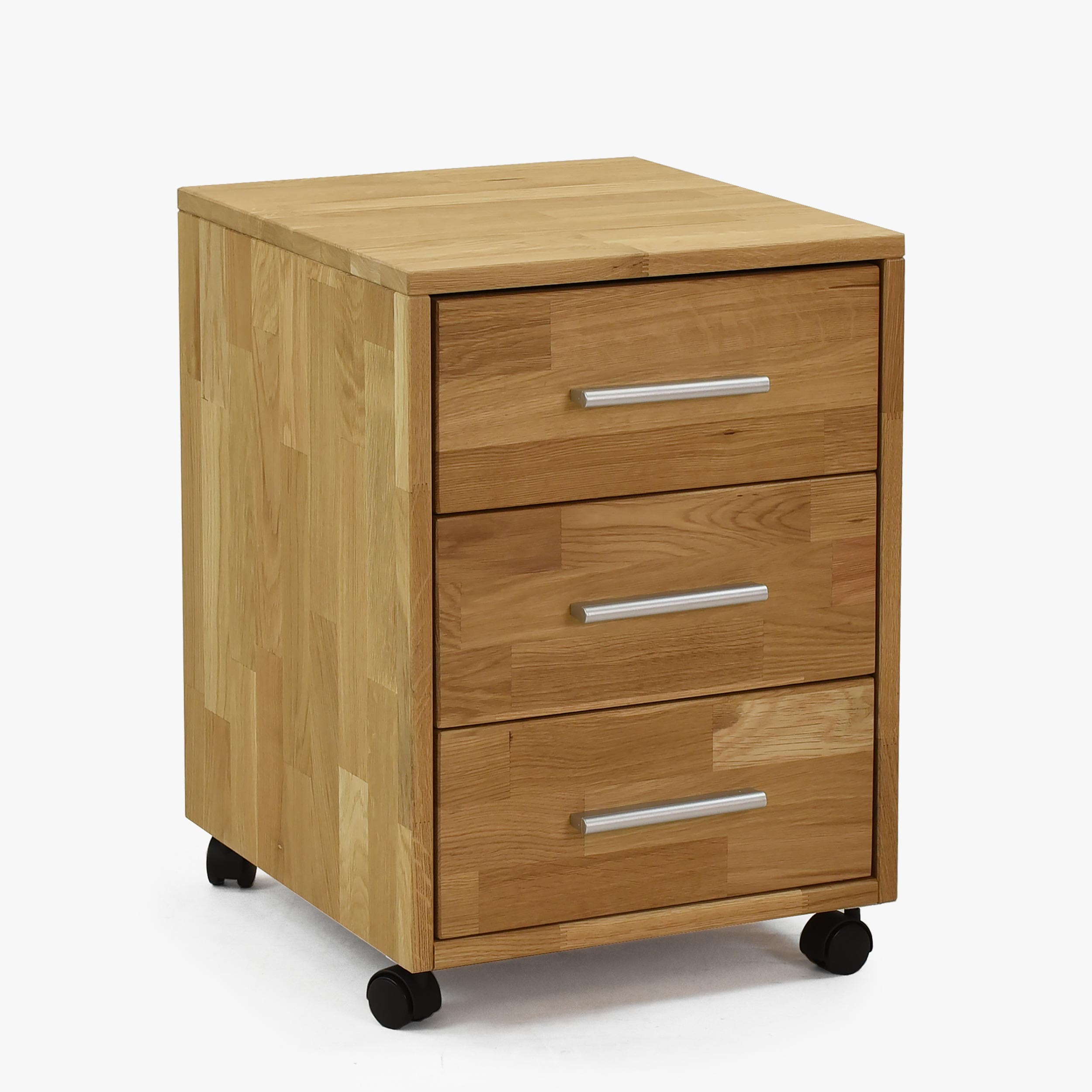 Holzkommode aus Eichenholz mit 3 Schubladen auf Rollen
