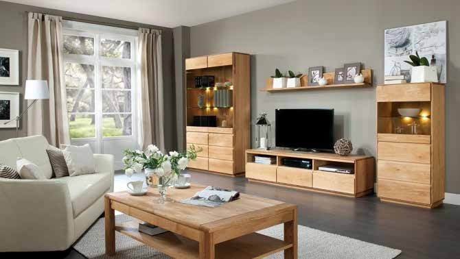 Die Oberflächenbehandlung, welche die Möbel gegen mechanische Beschädigungen widerstandsfähig macht und somit auch die Lebensdauer verlängert, erfolgt ausschließlich mit einem renommierten Öl und Wachs der deutschen Marke Livos. Durch das Beizen können wir die Vitrine in elegantem Farbton geflammte Eiche anbieten. Wenn Sie jedoch helles, natürliches Möbel mit ökologischem Aussehen bevorzugen, wählen Sie den Farbton Eiche Öl.