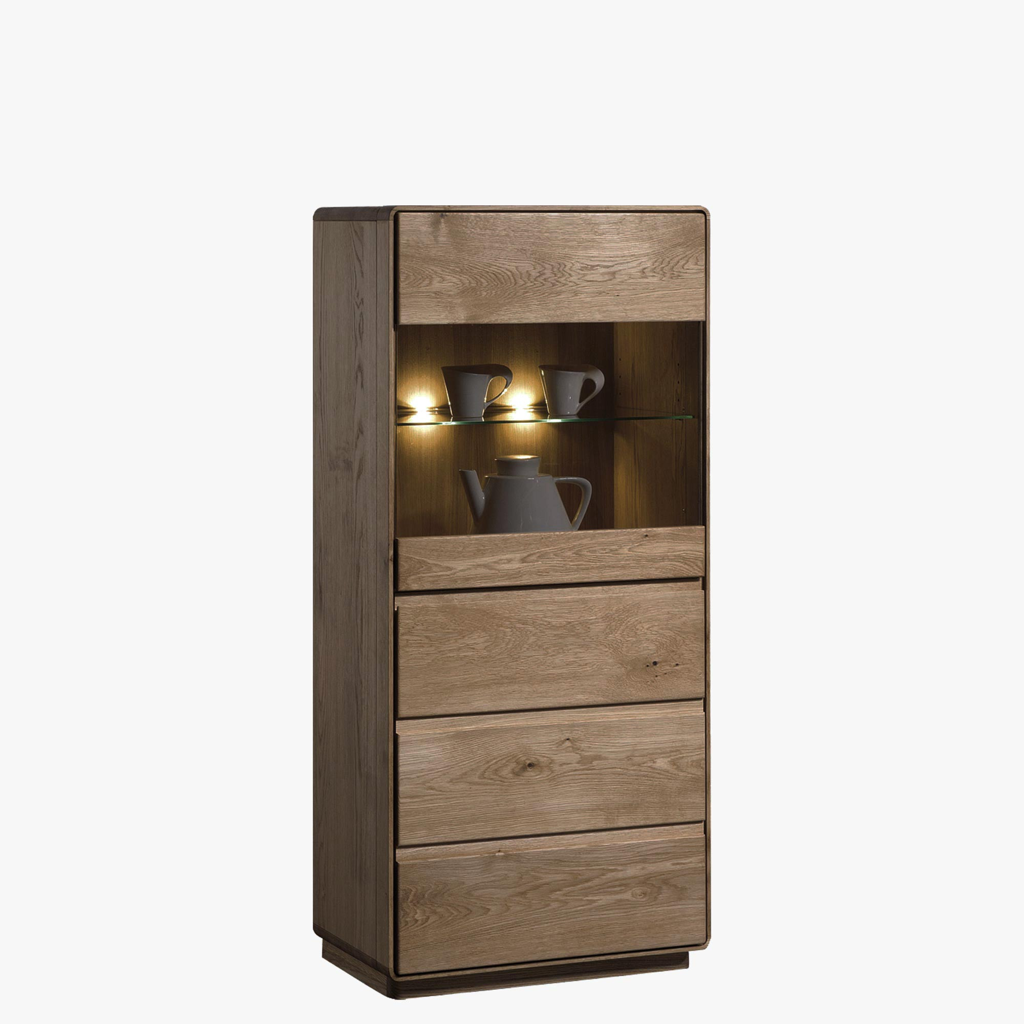 Fehlt Ihnen zuhause stilvolles Möbel, das Platz bietet, um Ihre Antiquitäten auszustellen und gleichzeitig geschlossenen Stauraum bereitstellt? Ein ideales Möbelstück ist die Eiche Vitrine Typ 50 aus der Serie Helsinki. Dank ihrer Abmessungen nimmt sie im Innenraum nicht zu viel Platz ein, wird aber zugleich zu einem praktischen Helfer, der im Raum wie ein wahrer Schatz wirkt.