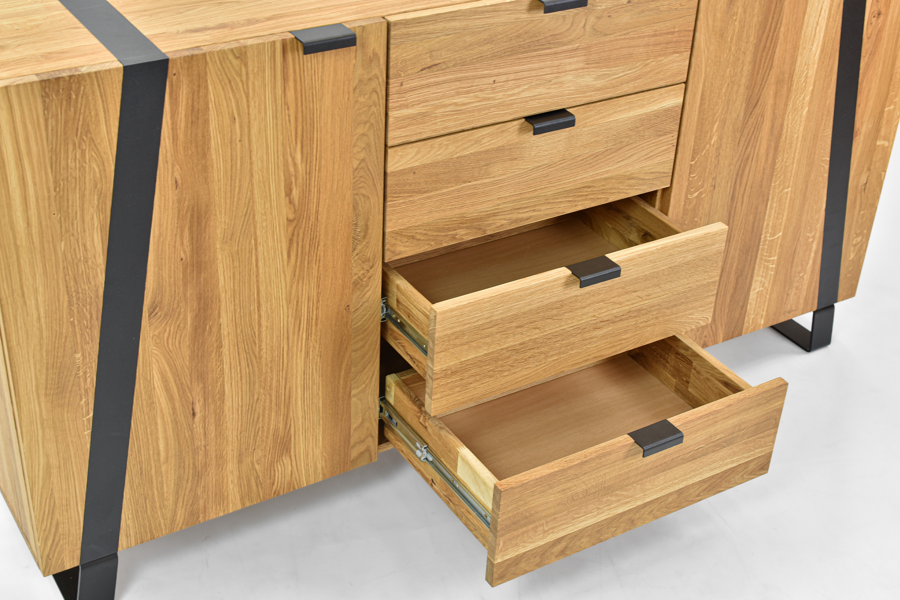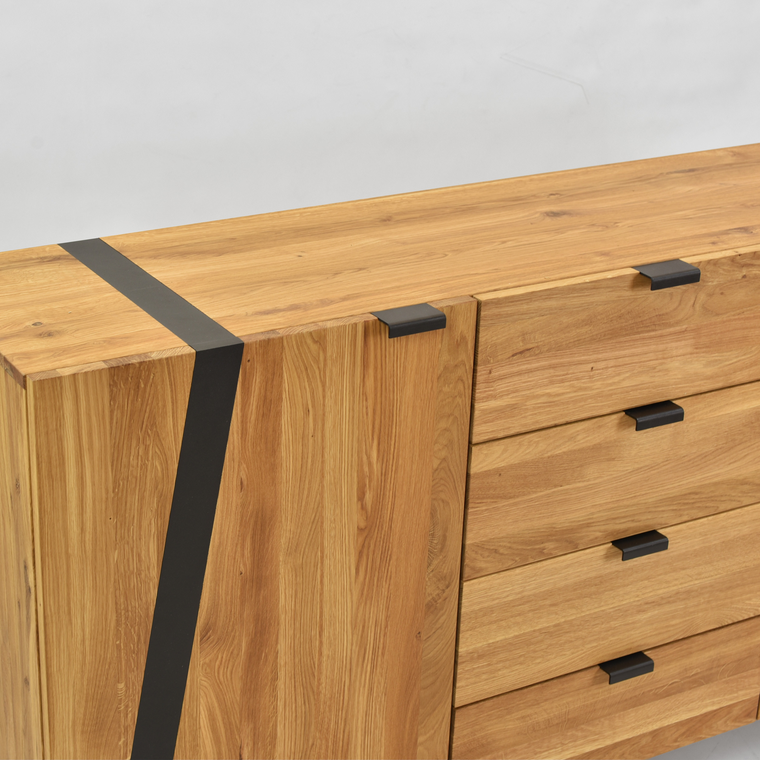 Massive Eichenkommode mit Türen und Schubladen,