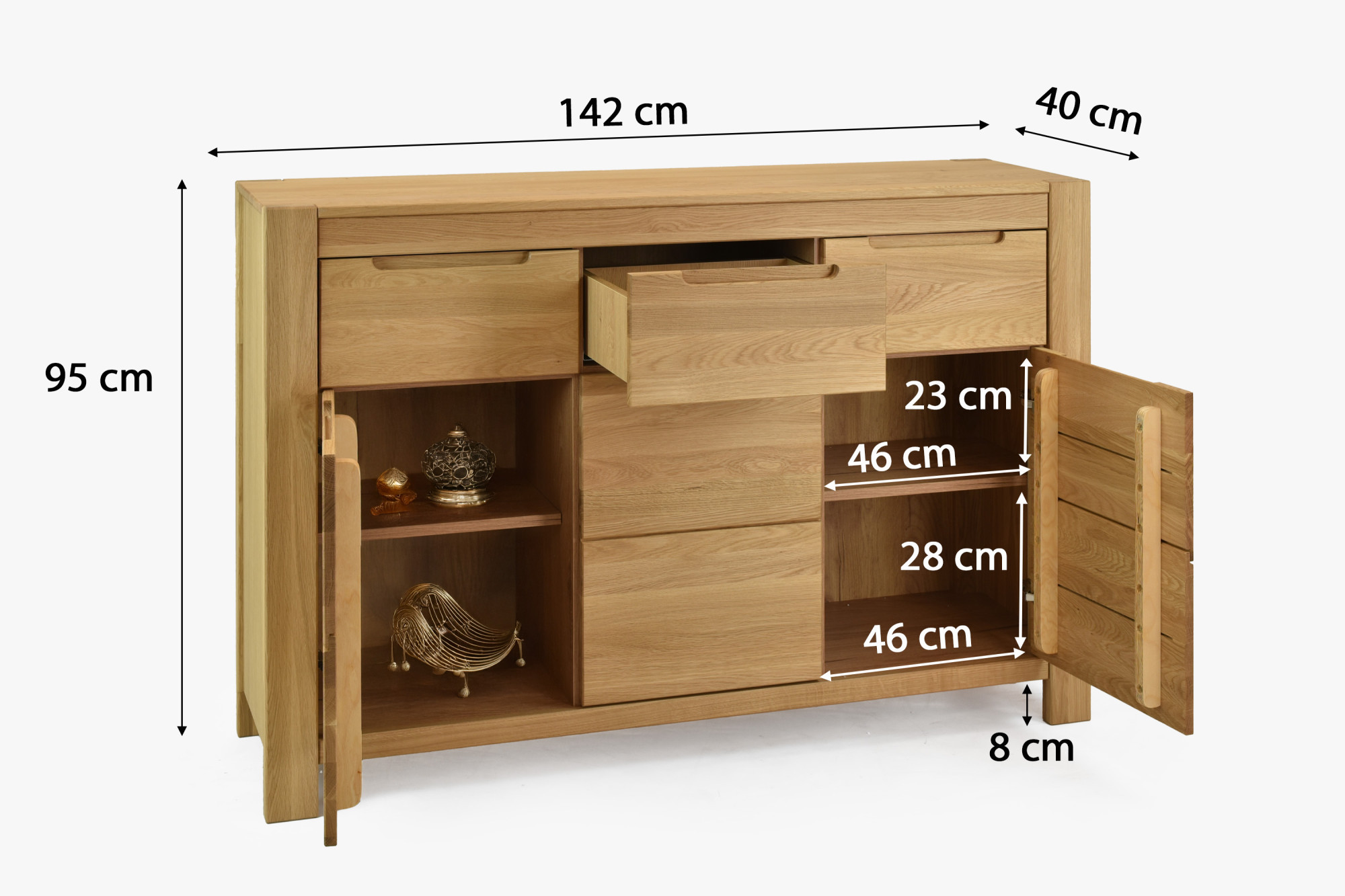Eichenkommode mit Türen und Schubladen naturbelassen 142 cm