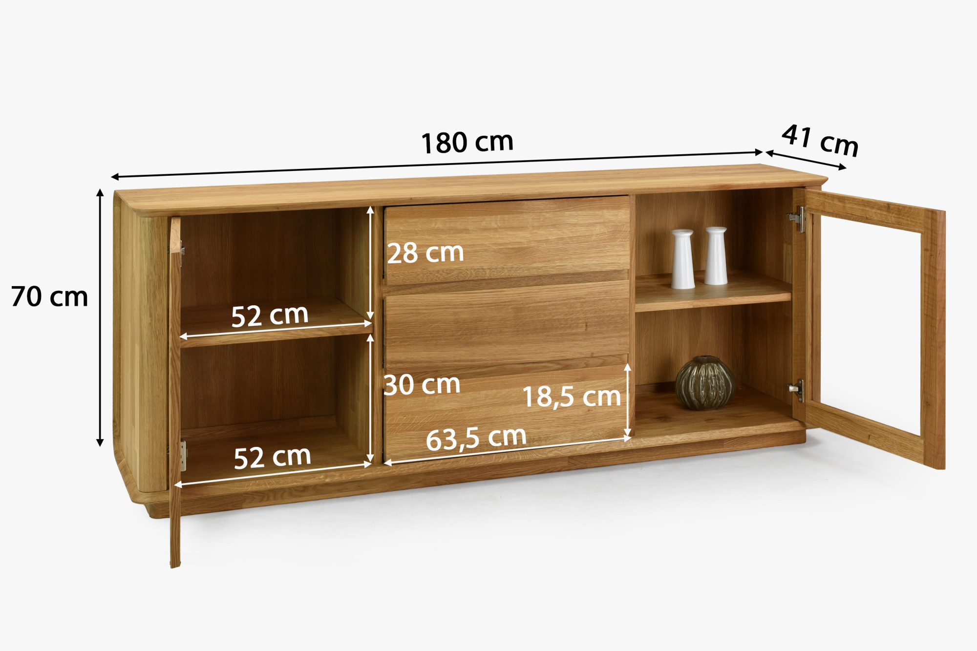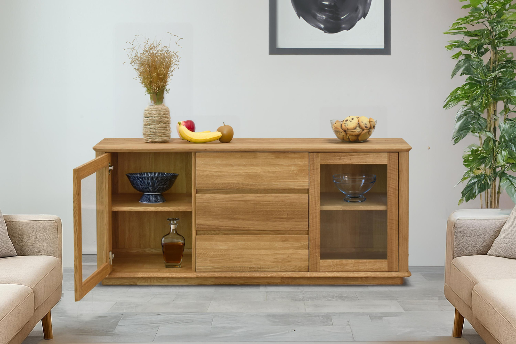 Premium-Eichenkommode mit Türen und Schubladen, Monaco Typ 49