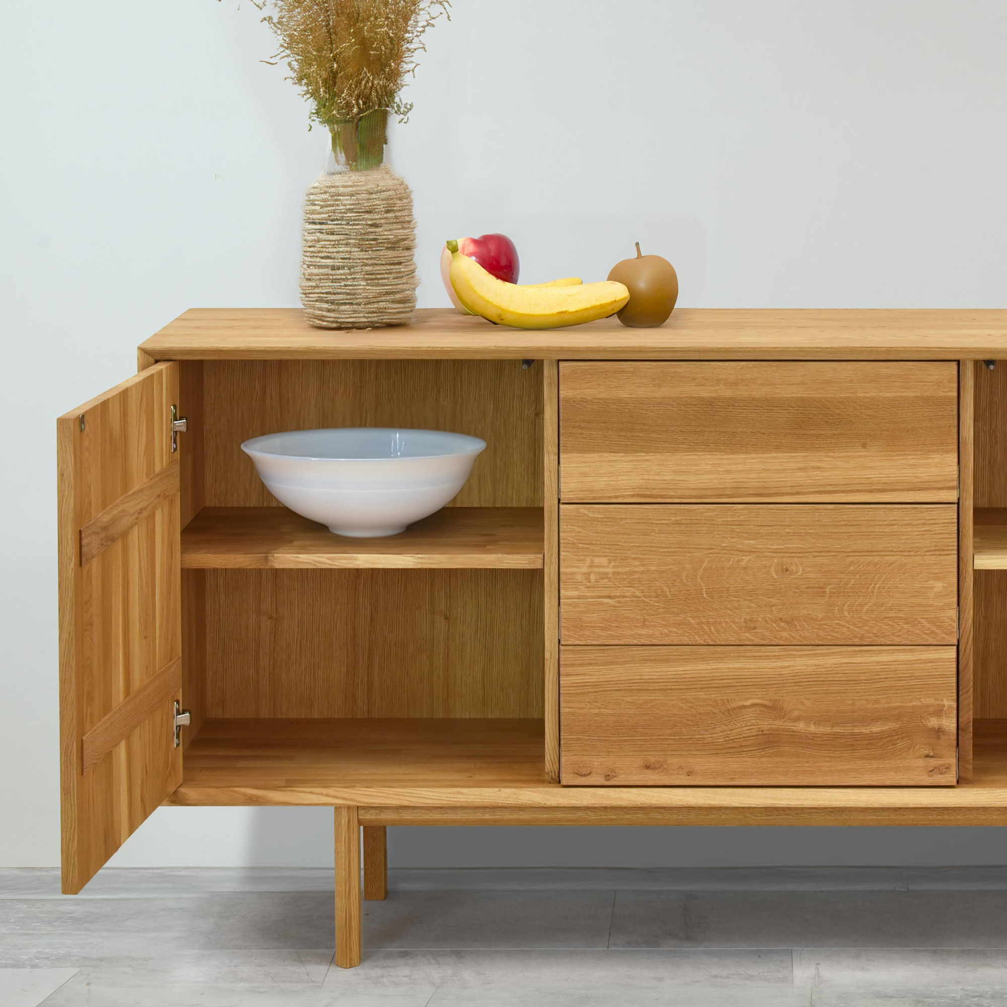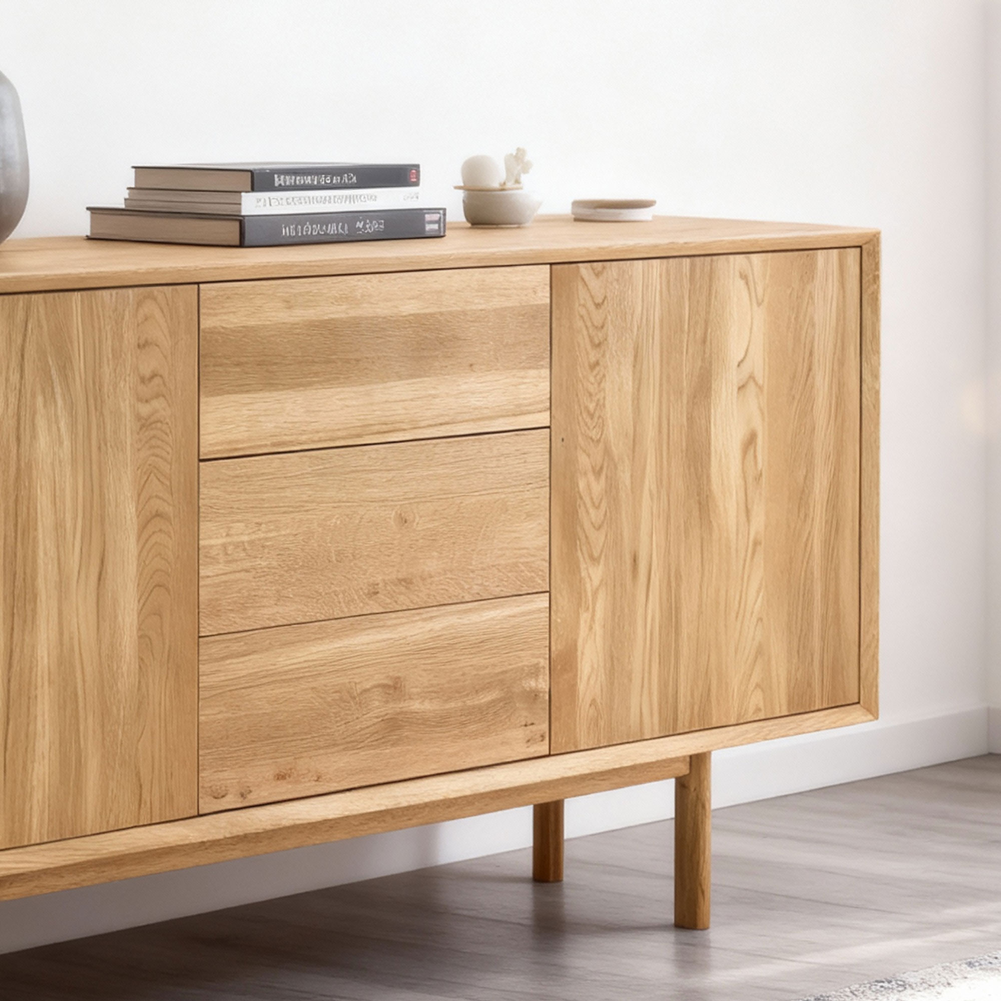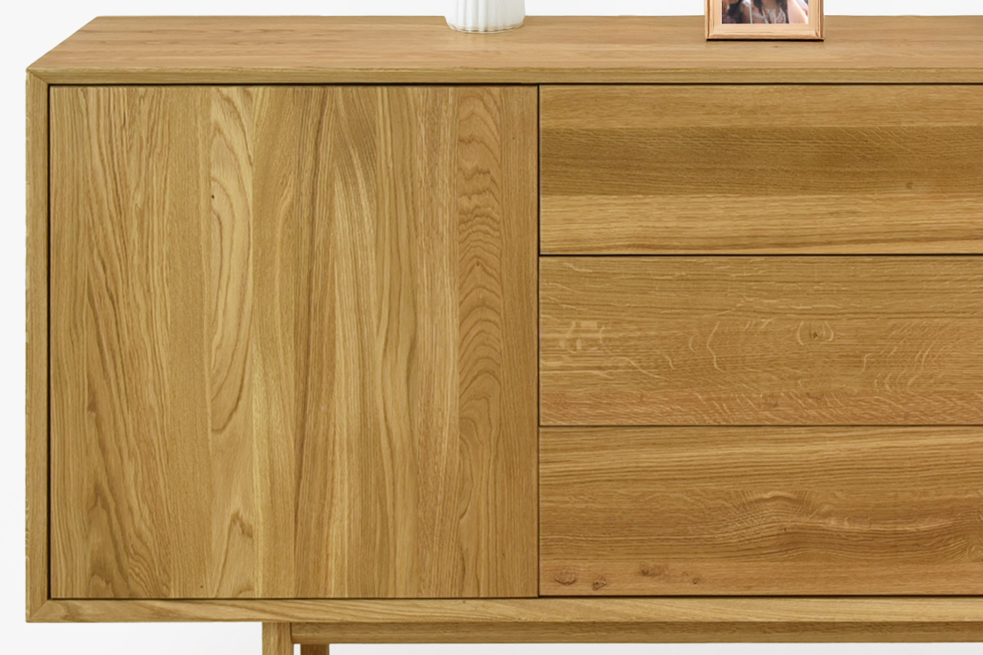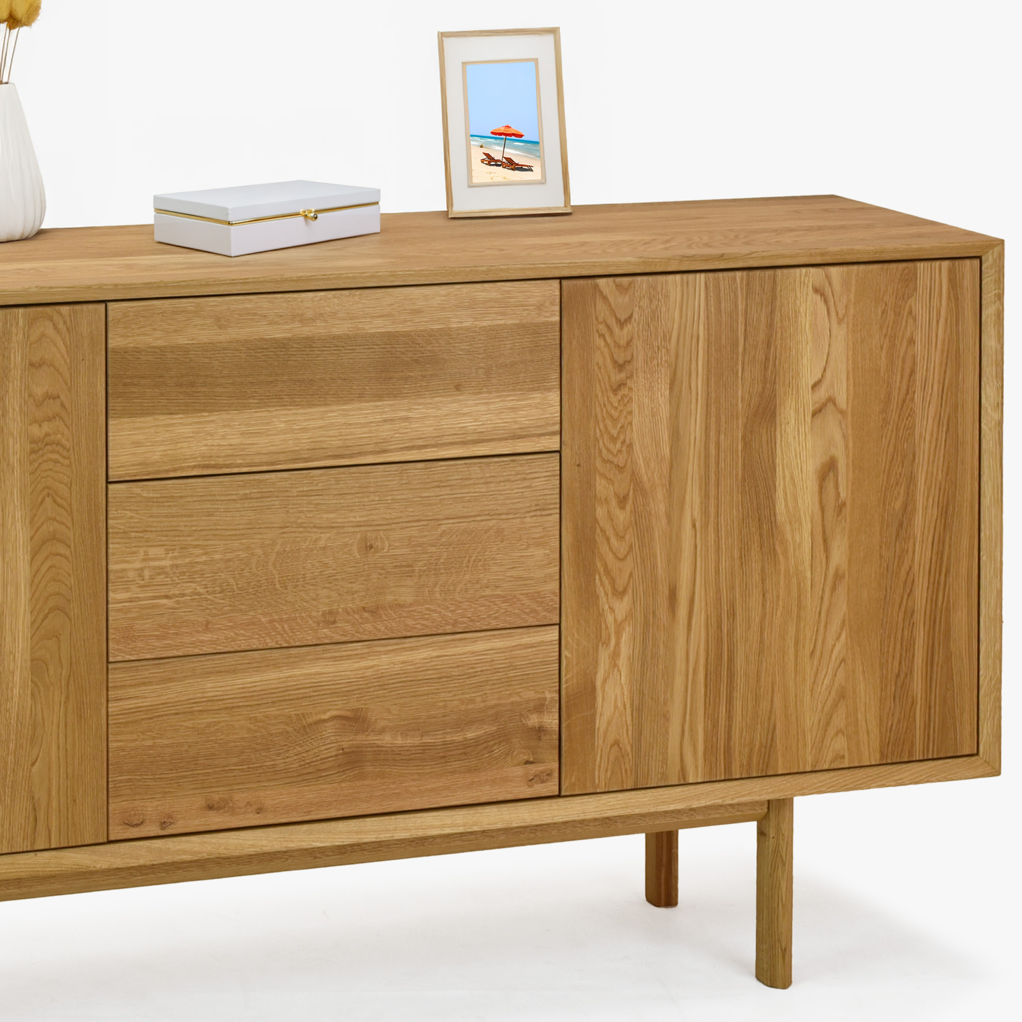 Massive Eichenkommode mit Schubladen und Türen, natur