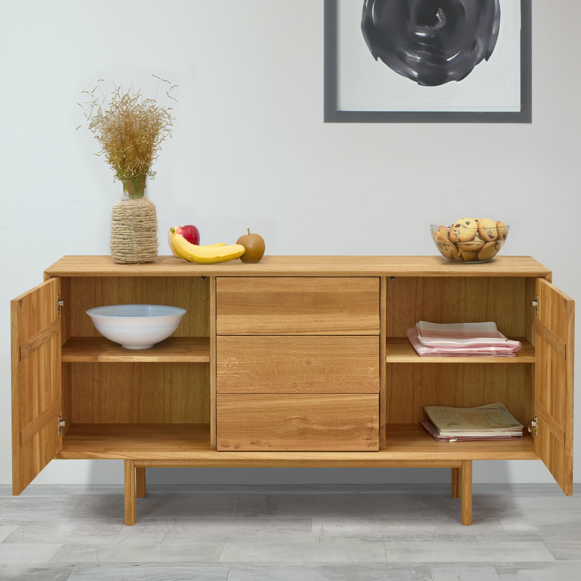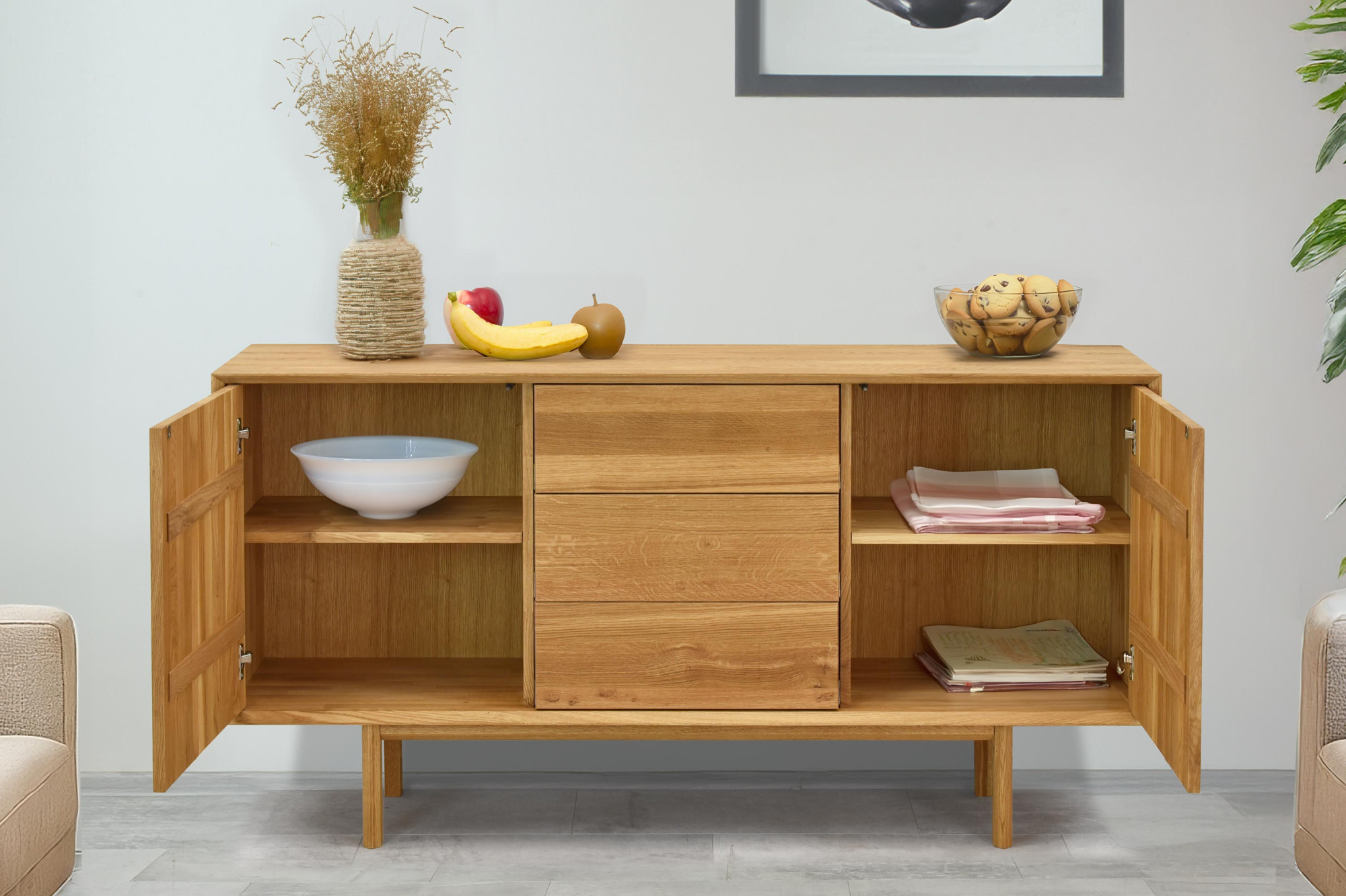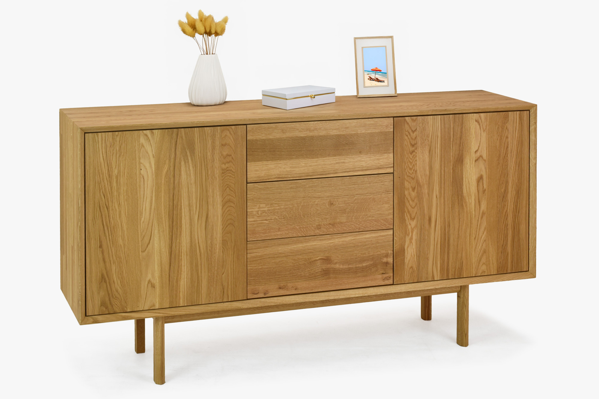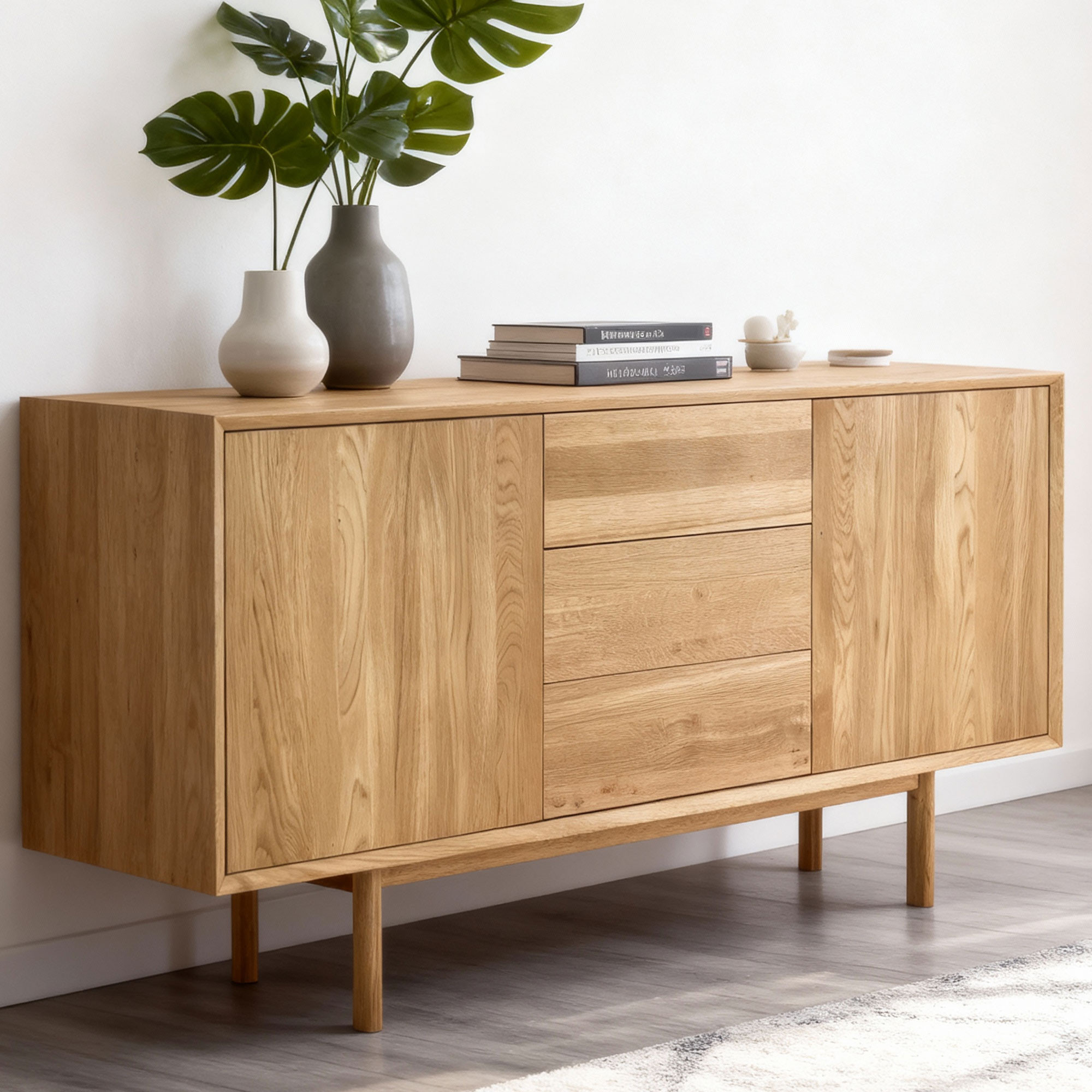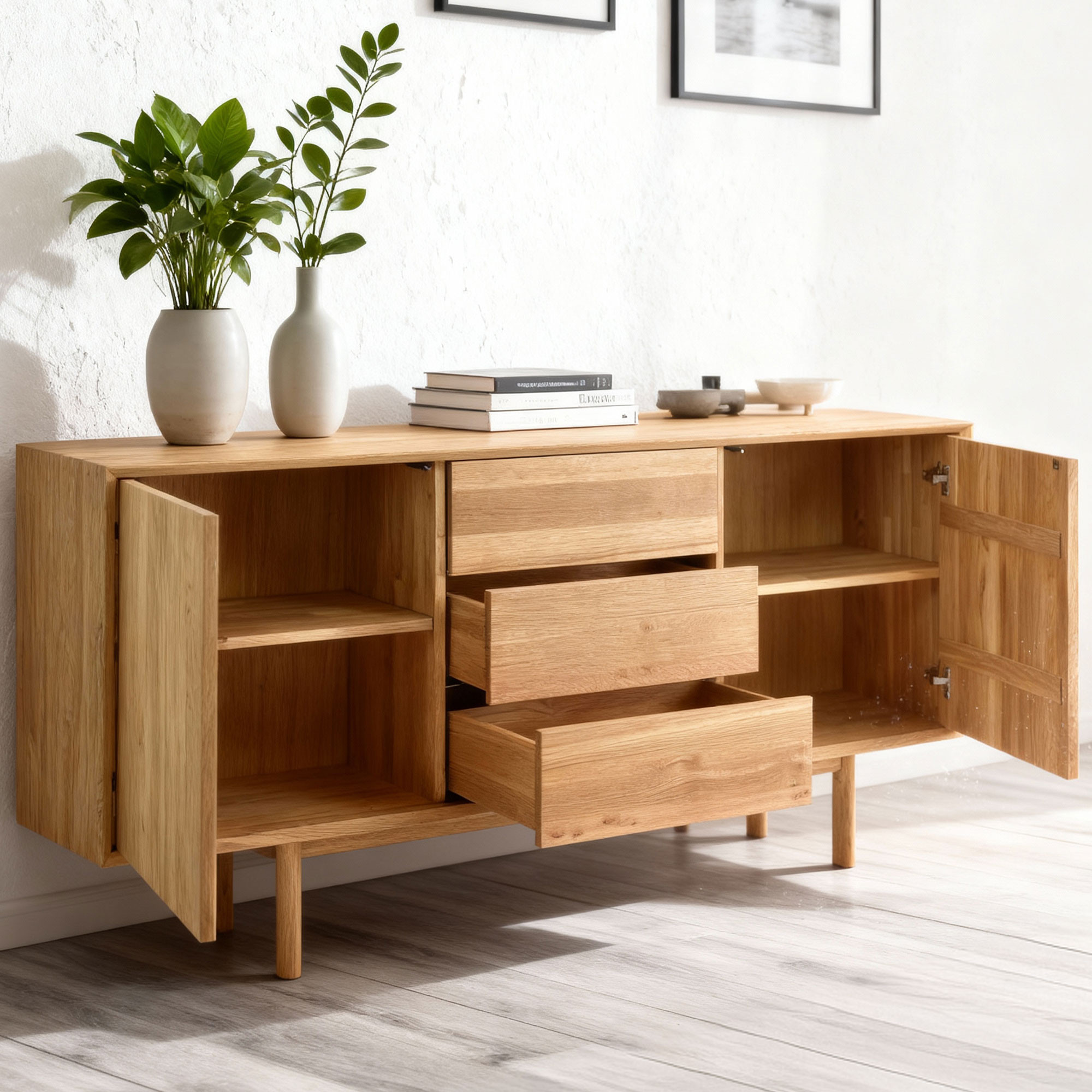 Massive Eichenkommode mit Schubladen und Türen, natur