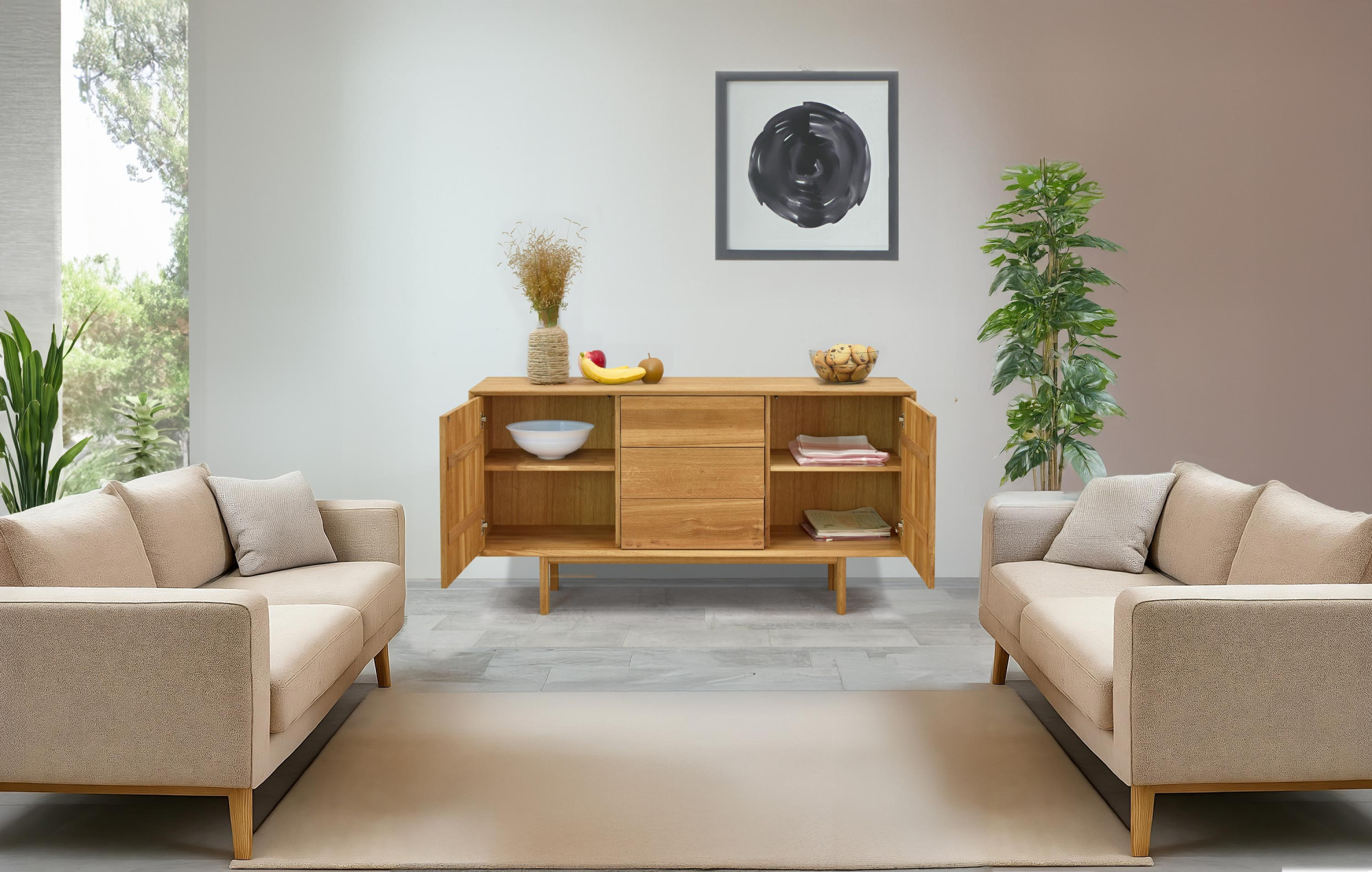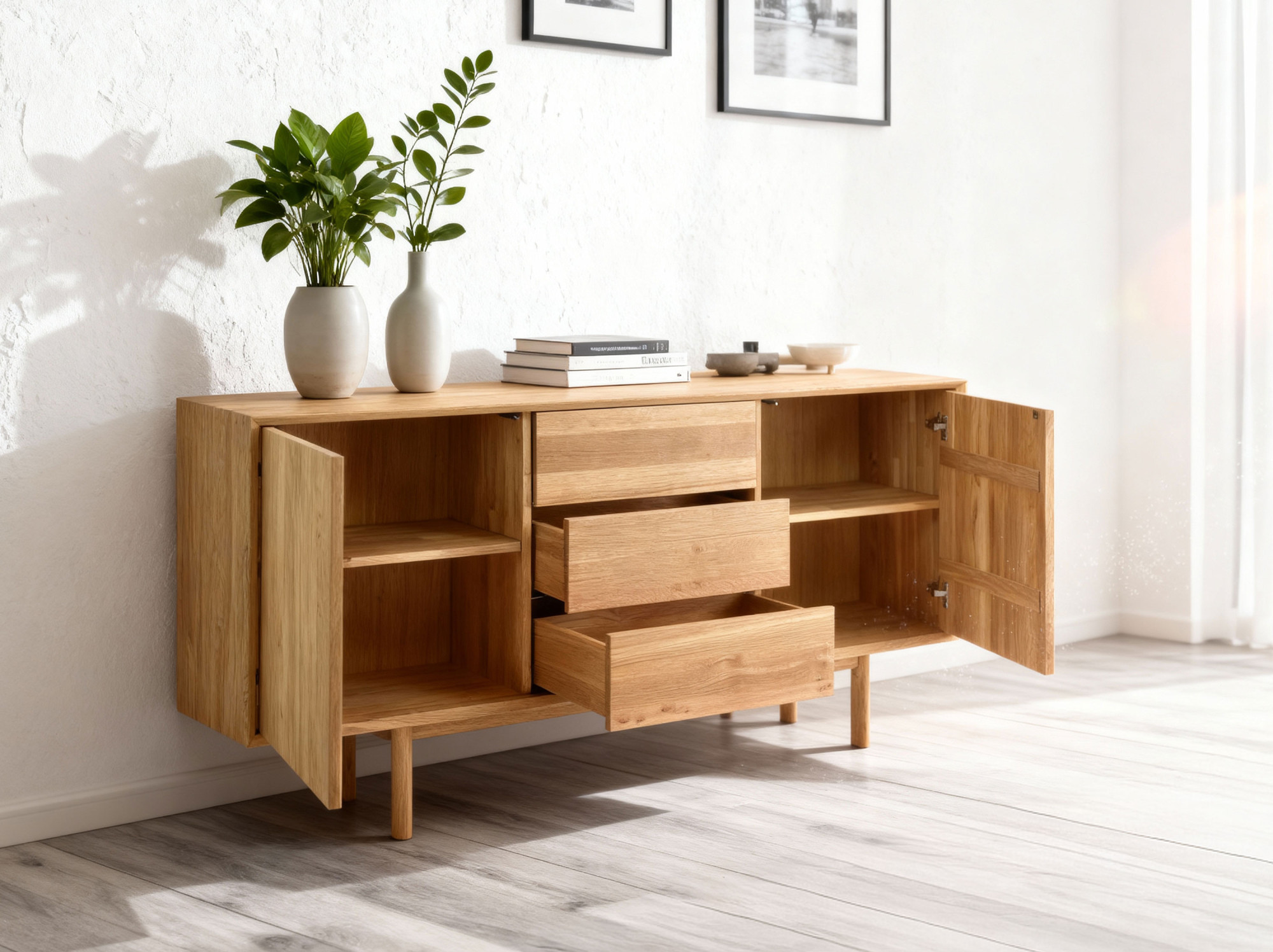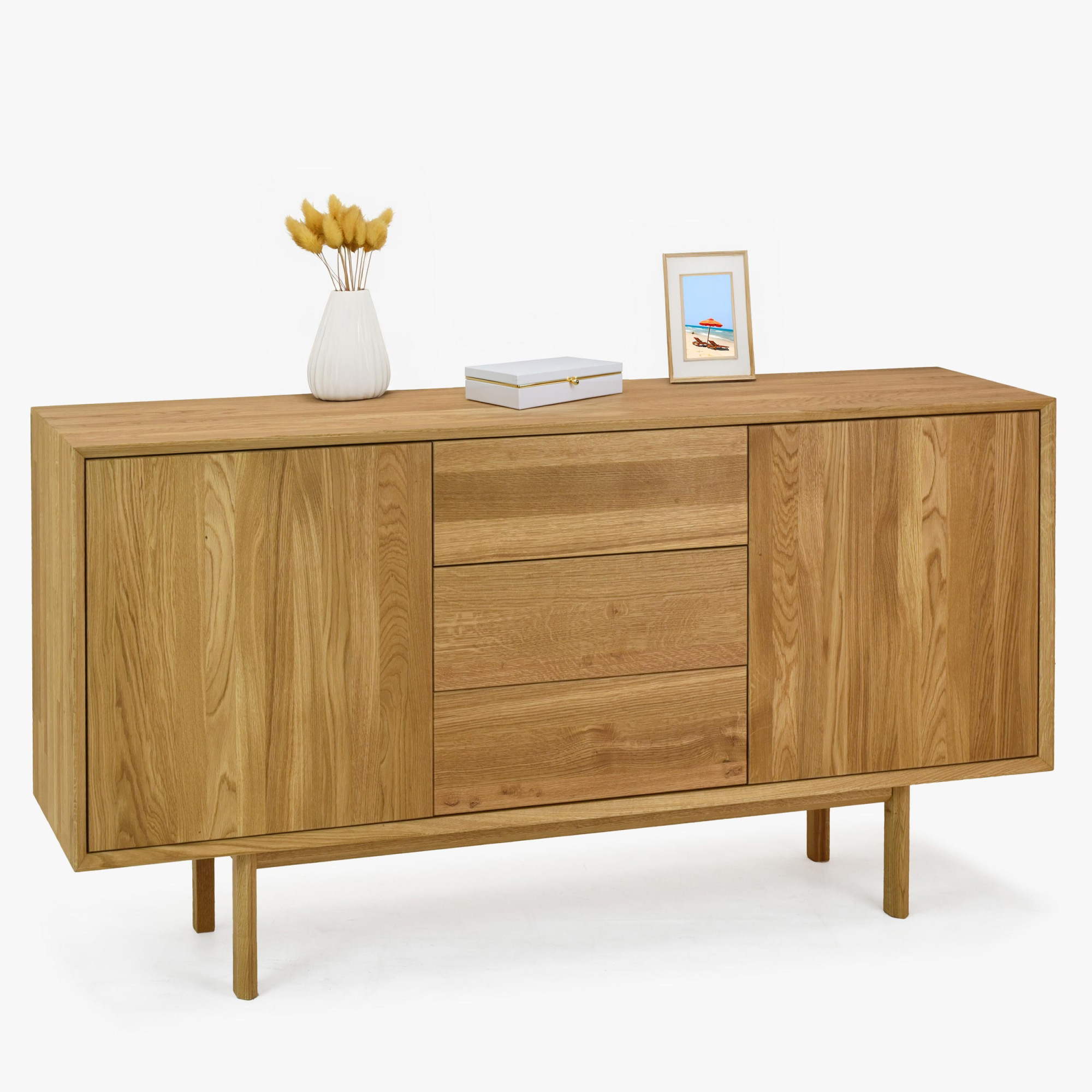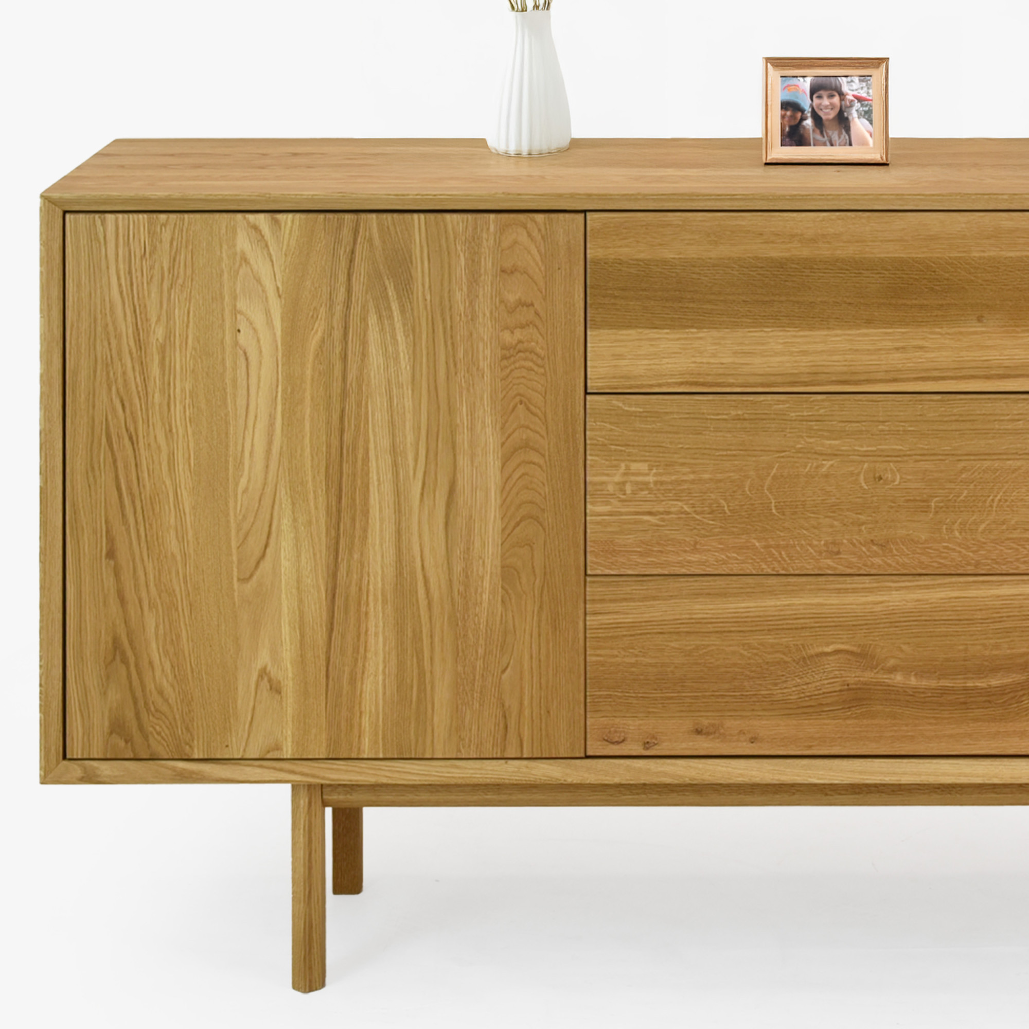 Massive Eichenkommode mit Schubladen und Türen, natur