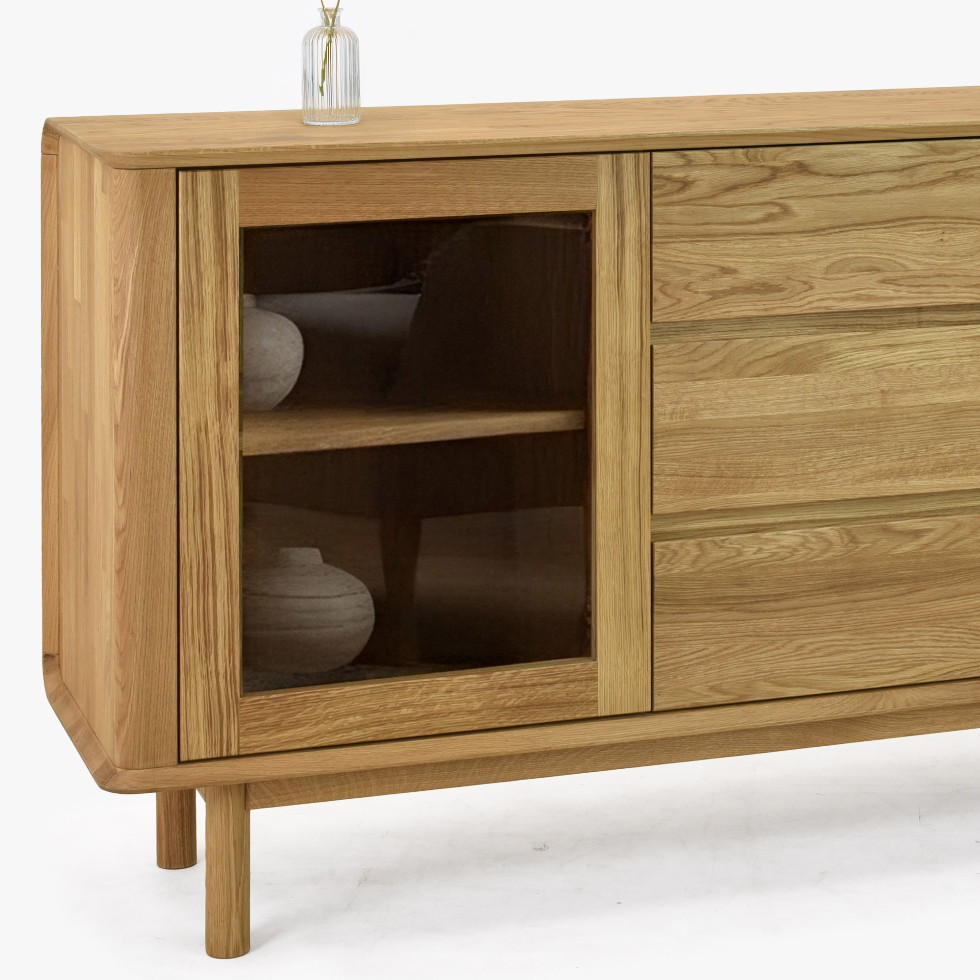 Premium Eichenkommode mit Türen und Schubladen auf Beinen, Monaco Typ 49