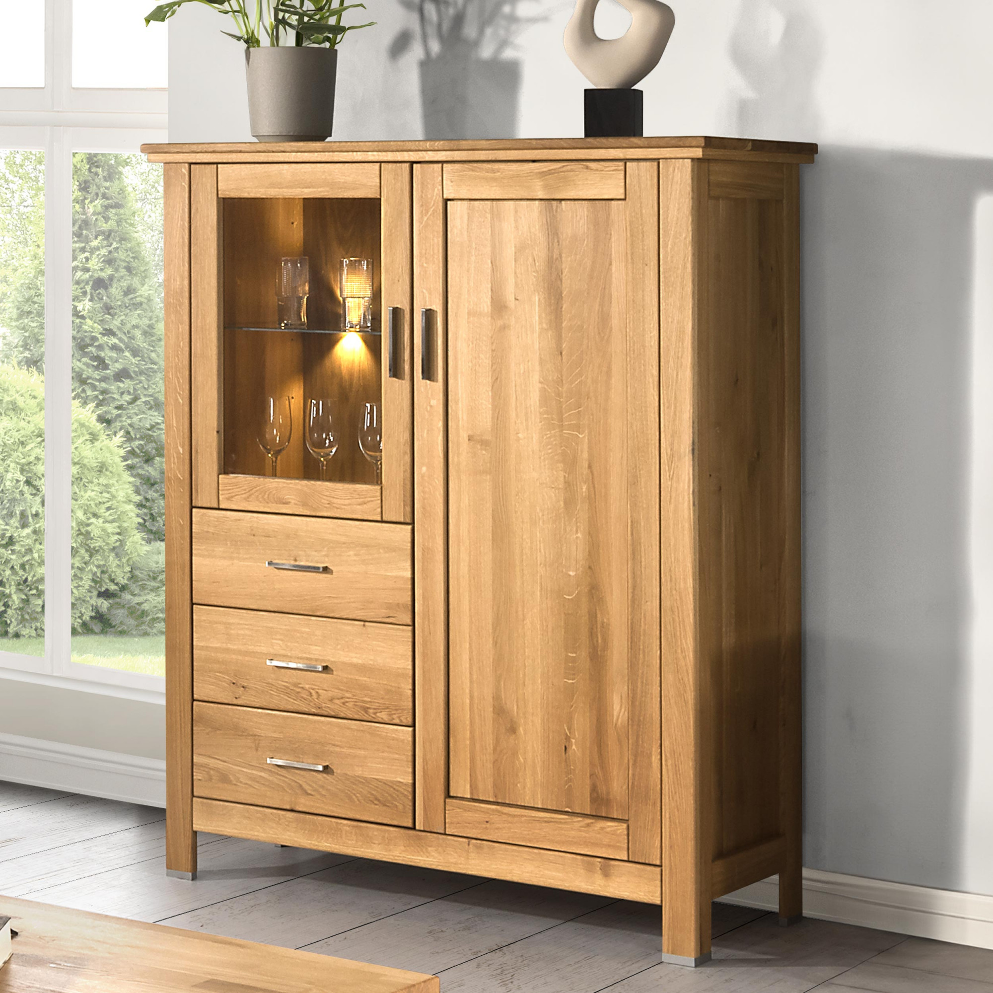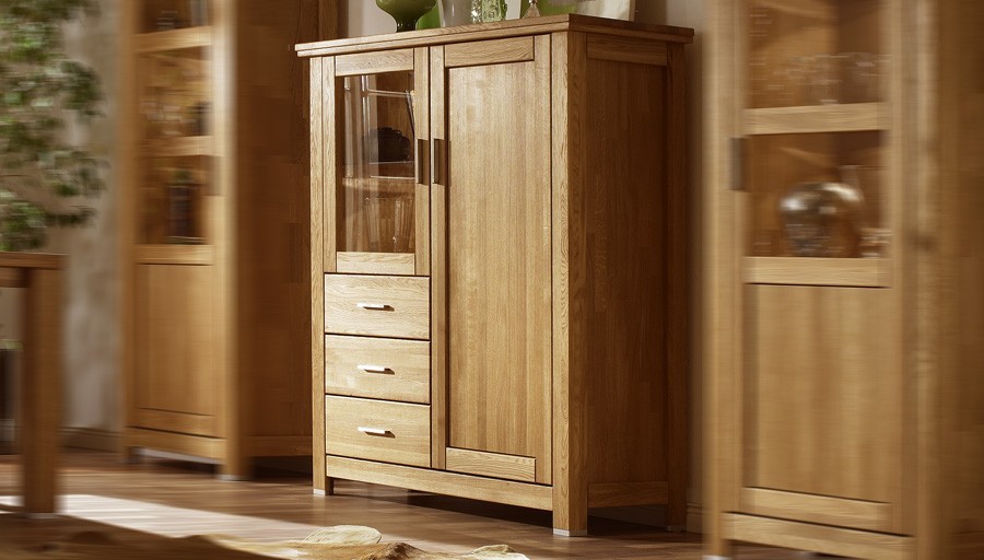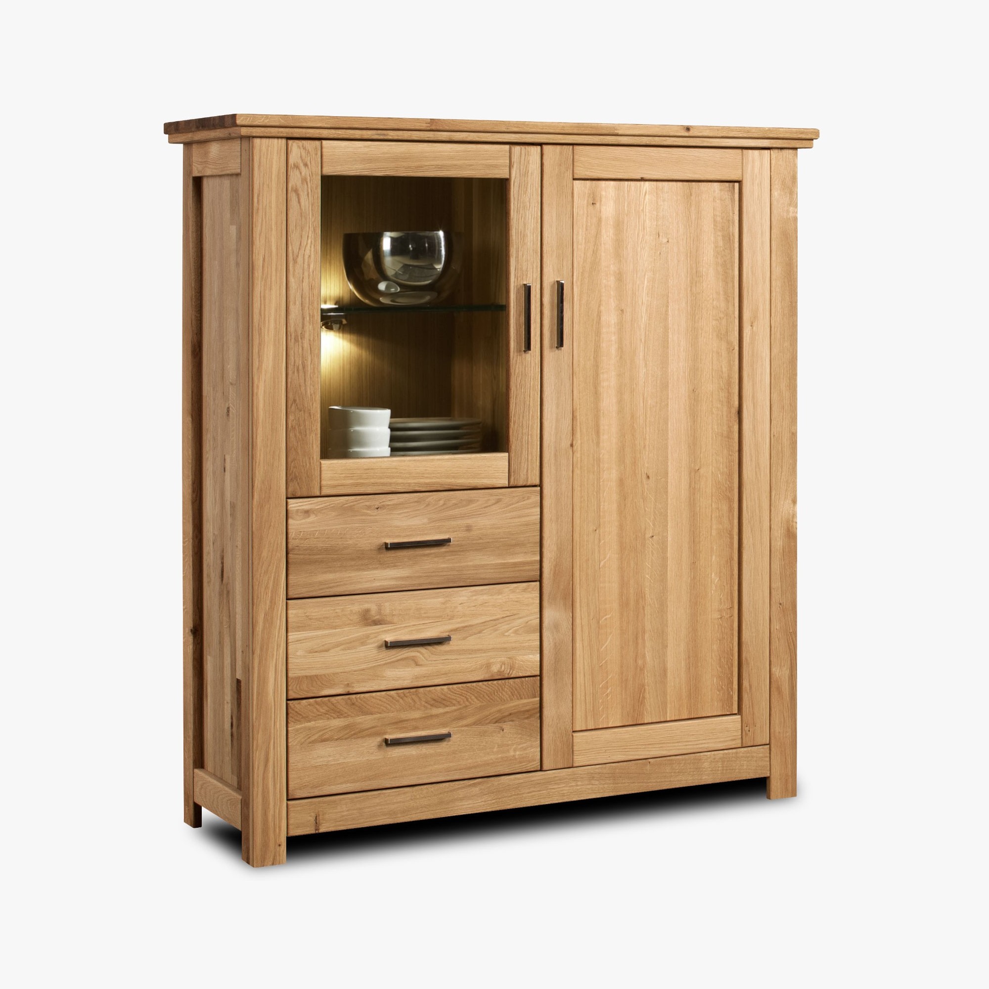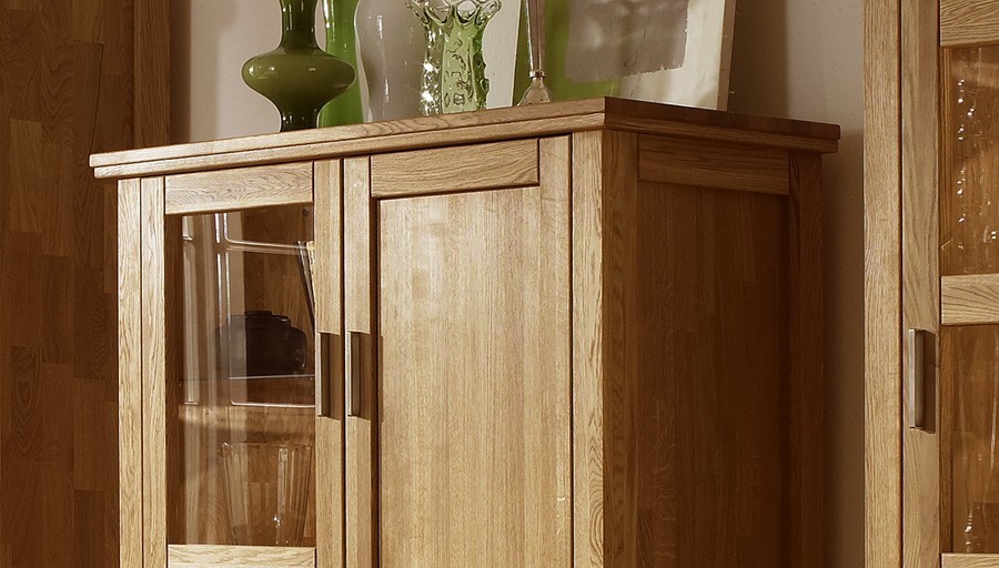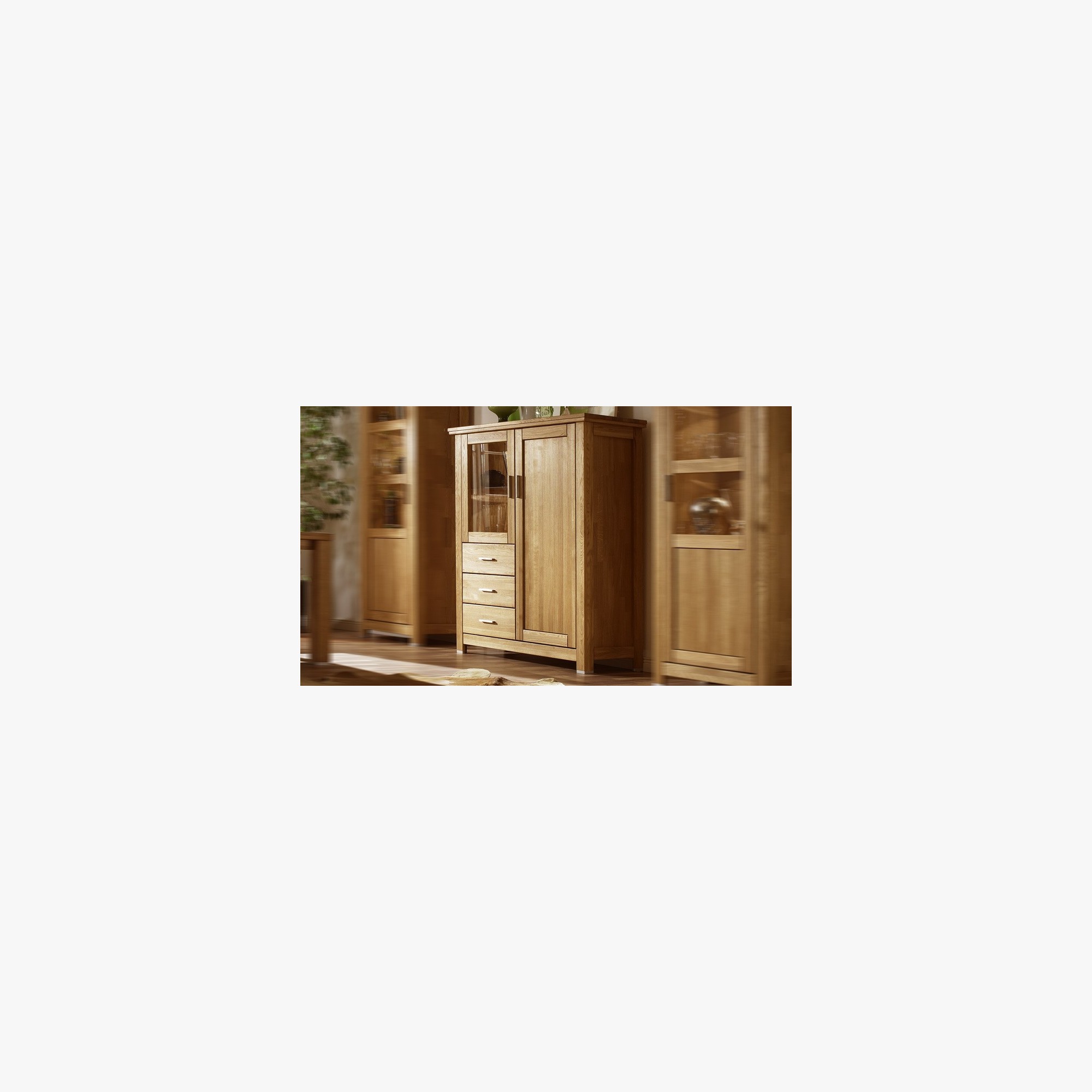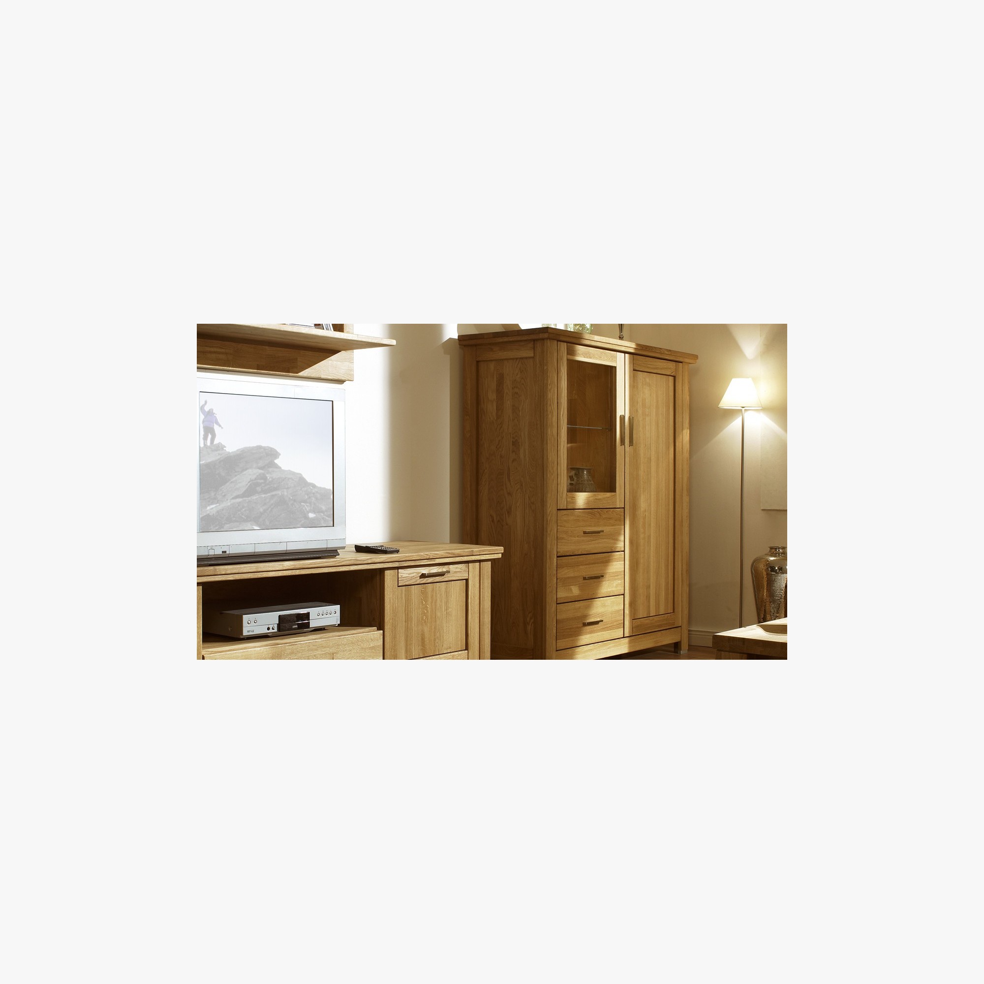 Massivholz Eiche Kommode mit Glas für das Wohnzimmer