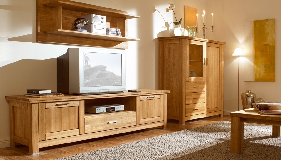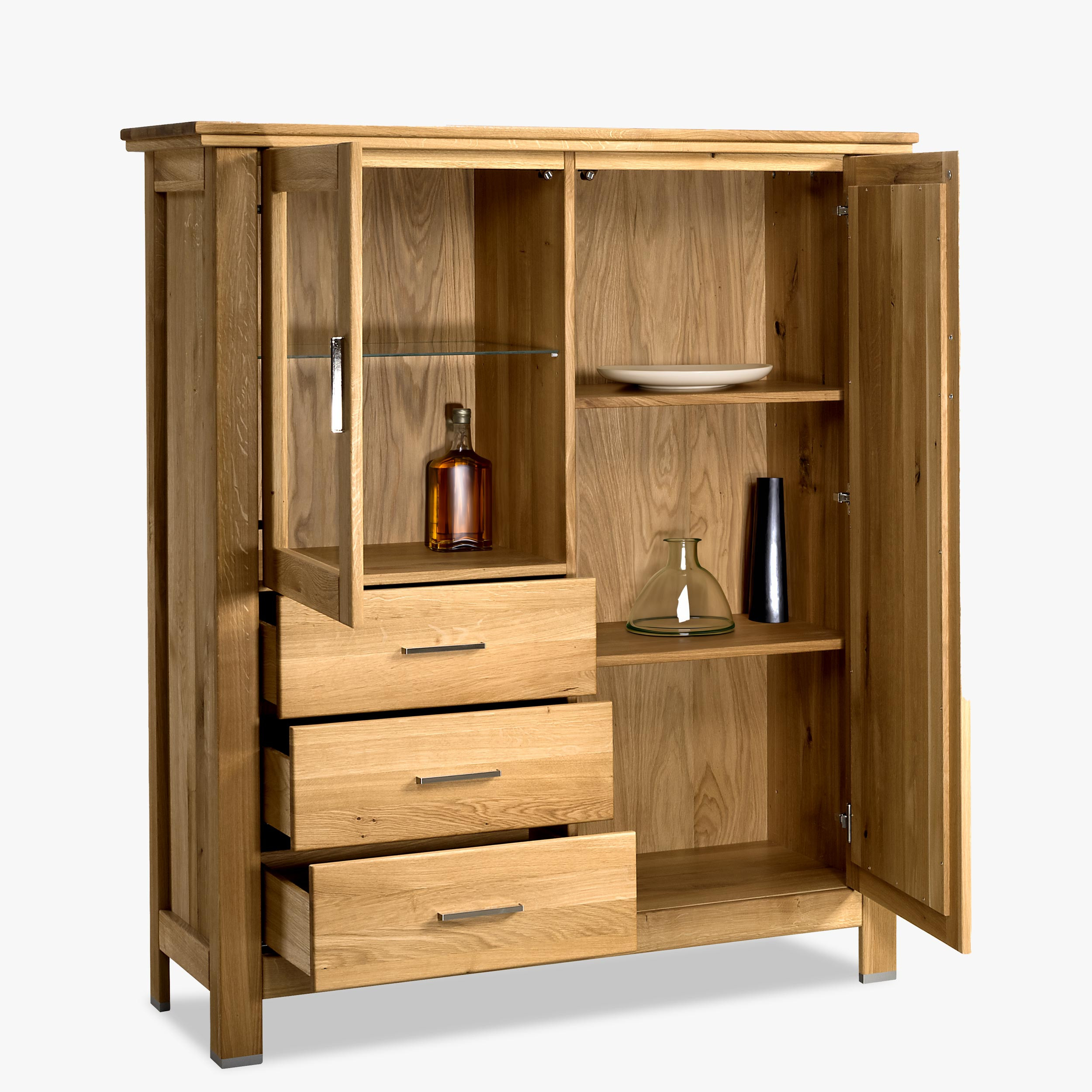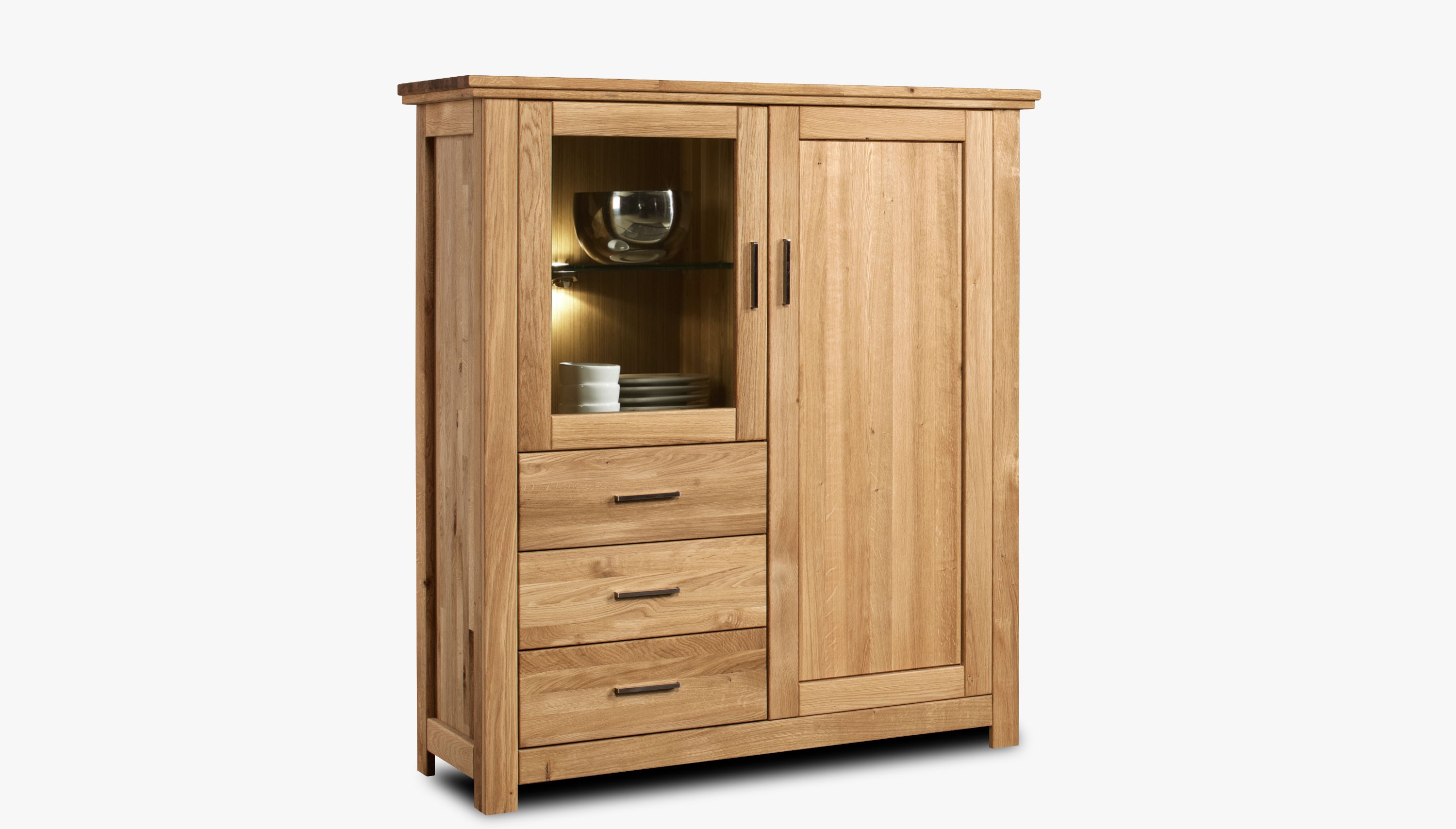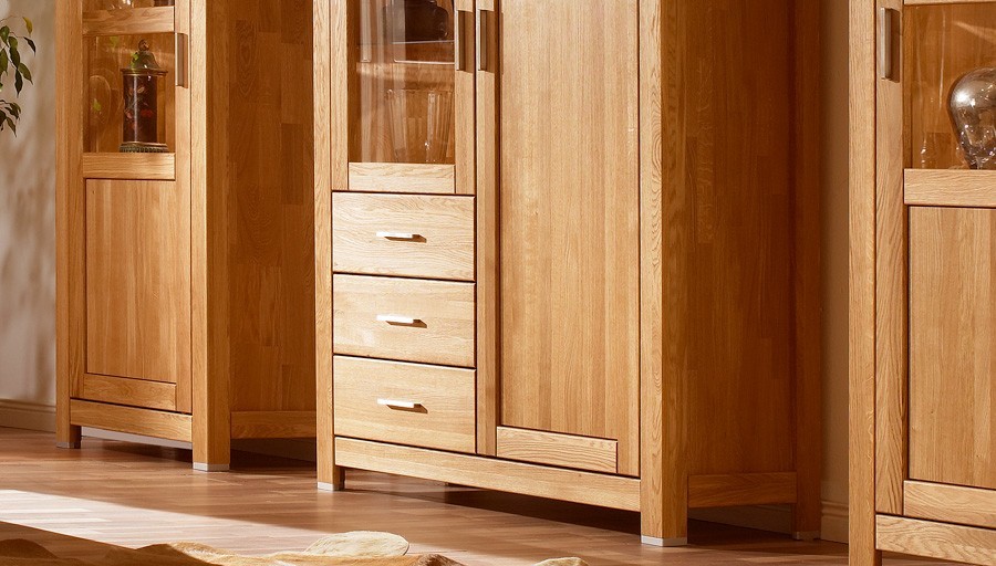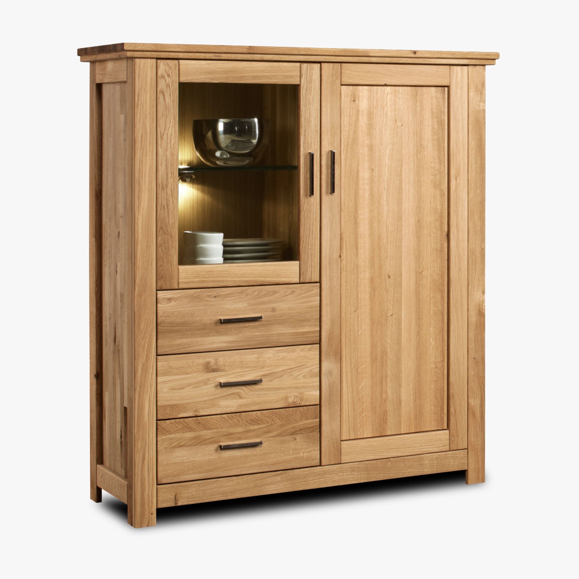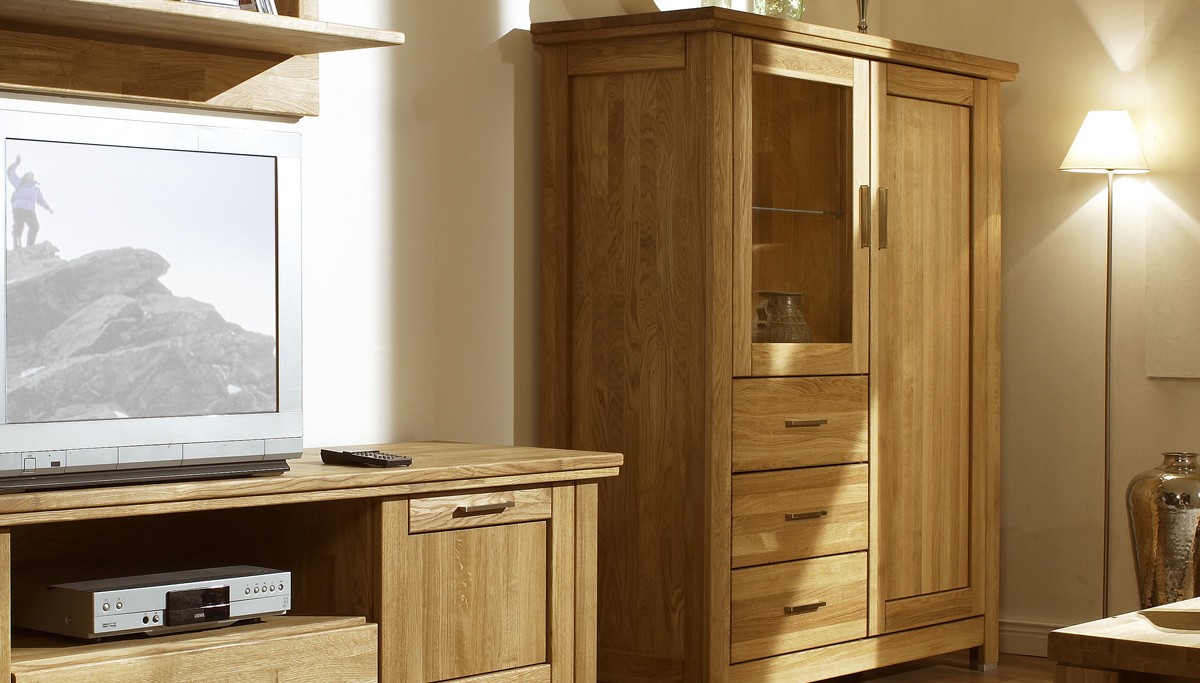 Massivholz Eiche Kommode mit Glas für das Wohnzimmer