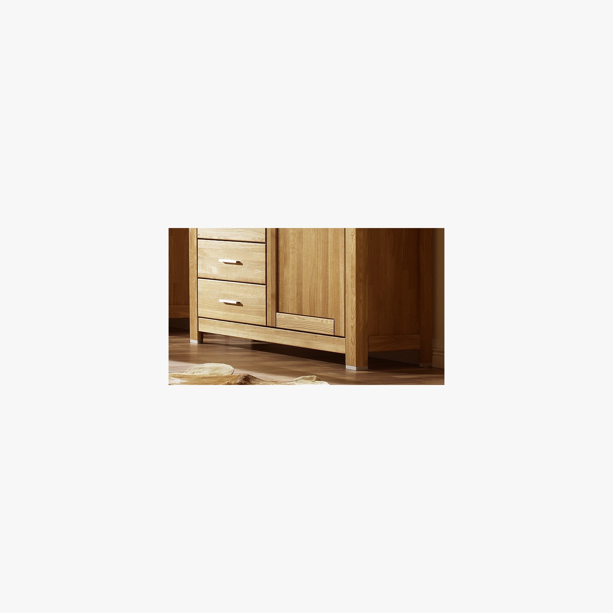 - Vollmassive Eichenkonstruktion: Die Kommode ist aus 100% Eichenmassivholz gefertigt, einschließlich Korpus, Regale und Türen, was hohe Stabilität und lange Haltbarkeit garantiert.