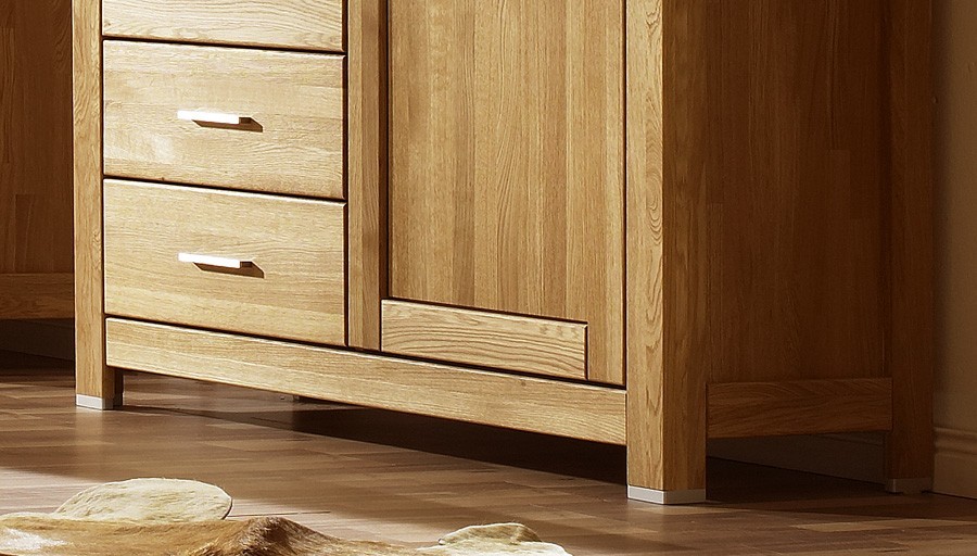 - Ökologisches Erscheinungsbild: Die Kommode ist mit dem Farbton „Eiche Öl“ behandelt, der den ökologischen Charakter unterstreicht und den natürlichen Holzlook erhält.