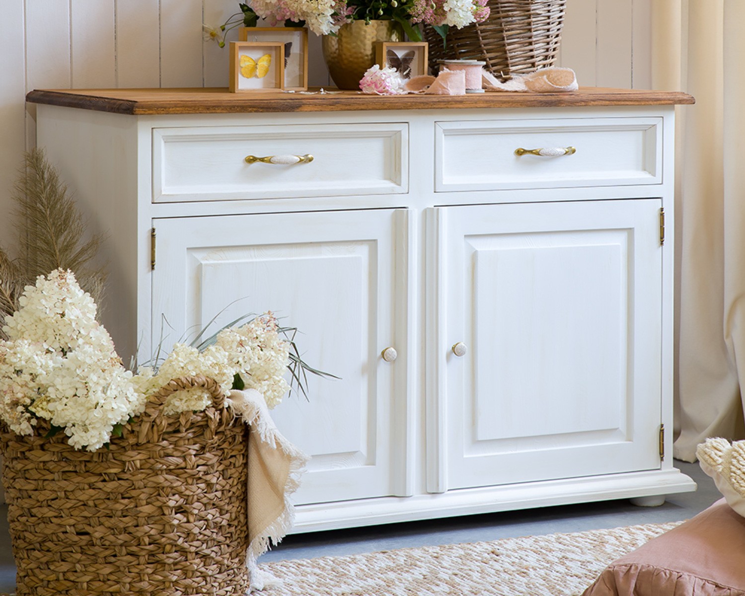 Gehören Sie auch zu denen, die sich vom Charme des Wohnens im Stil der französischen Provinz begeistern lassen? Dann wird unsere Provence Kollektion, zu der auch dieser Sideboard gehört, sicher eine Inspiration für Sie sein. Es handelt sich um eine Serie aus massivem Holz, gefertigt aus 100% Kiefernholz, und das in einem absolut einzigartigen Design. Das verbindende Element aller Teile dieser Serie ist Stil, hohe Qualität der verwendeten Materialien und meisterhafte Handwerkskunst. Wenn es Ihr Ziel ist, sich mit Möbeln zu umgeben, die ihre Schönheit und Funktionalität über viele Jahre bewahren, ist das Möbelstück Provence die perfekte Wahl!