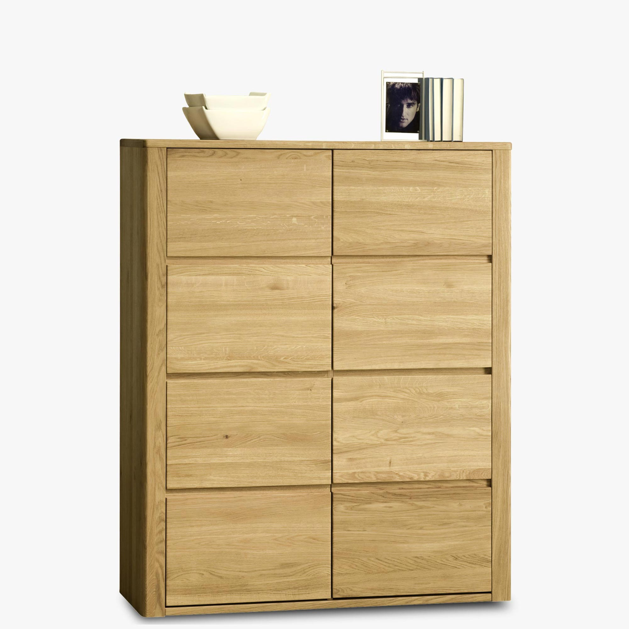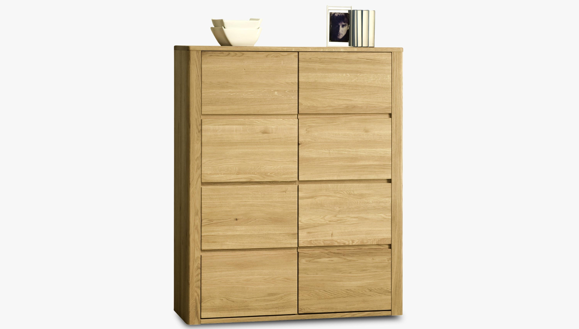 Moderne Kommode aus massivem Eichenholz mit minimalistischem Design, naturfarben