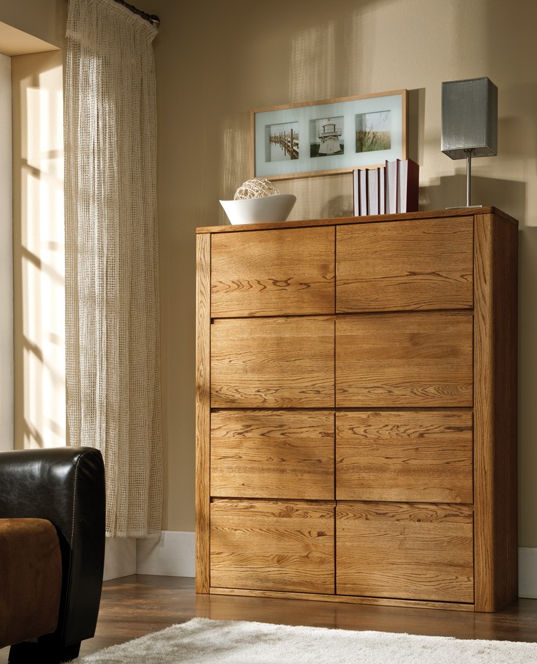 Möchten Sie Ihrem Interieur Schwung verleihen und gleichzeitig etwas Stauraum schaffen? Egal, ob Sie Möbel für das Esszimmer, Wohnzimmer oder Schlafzimmer suchen, kann Sie die moderne Eichenkommode nicht enttäuschen. Dank präziser Verarbeitung der hochwertigsten Materialien zählt die Kommode zu den hochluxuriösen Eichenmöbeln.