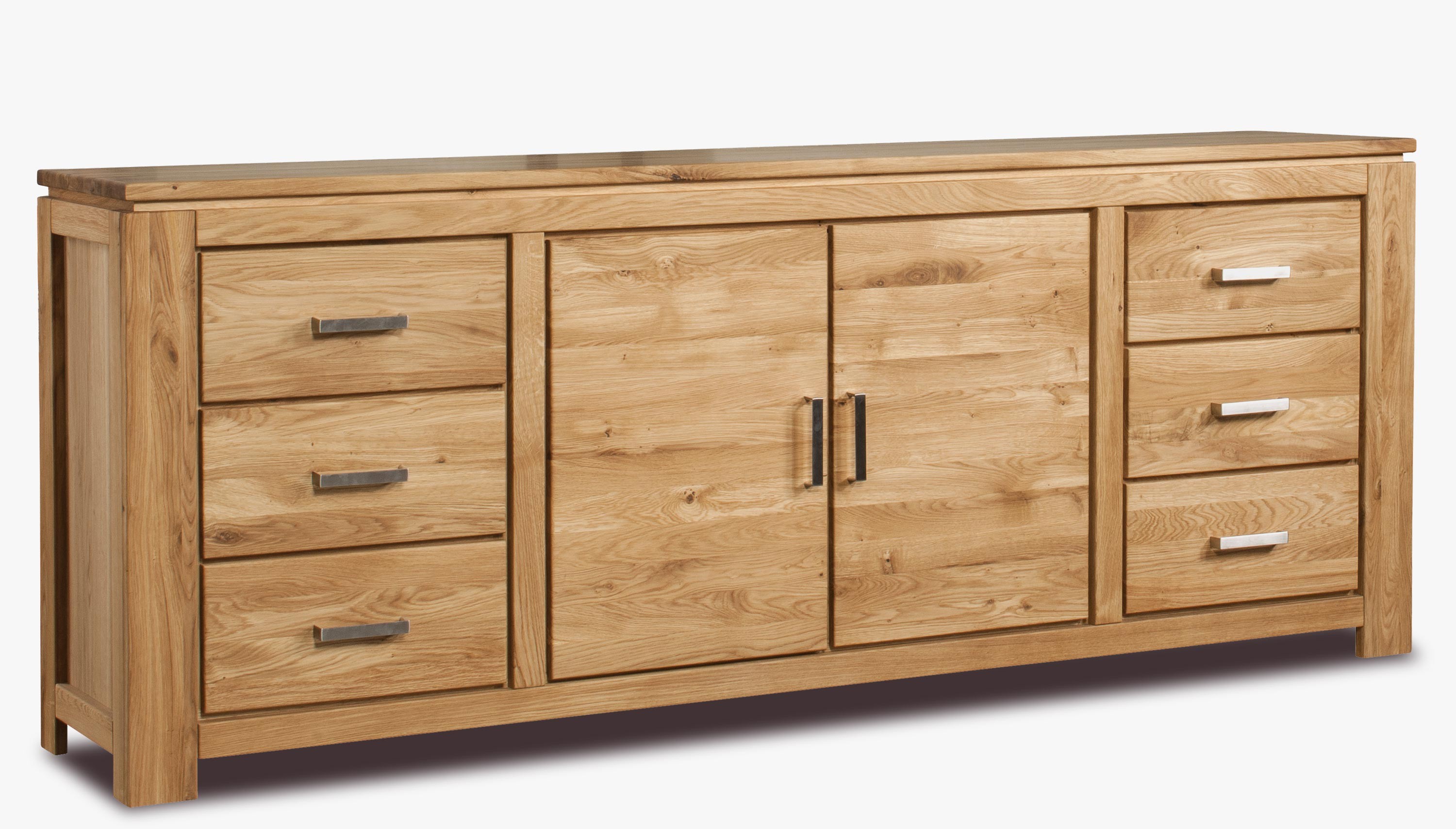 Luxuriöse Eichenkommode mit 6 Schubladen und Türen, massiv, modern, 219 cm breit