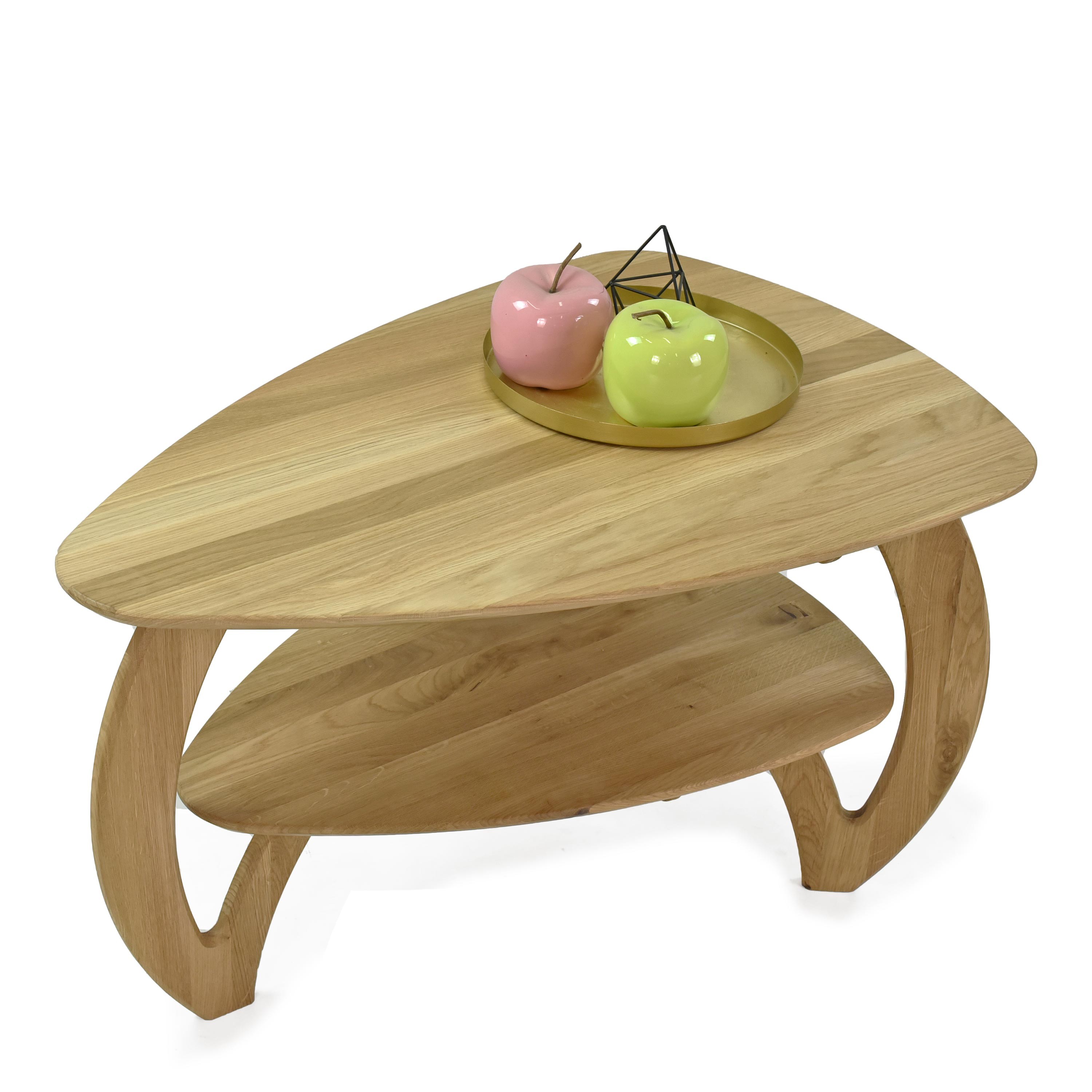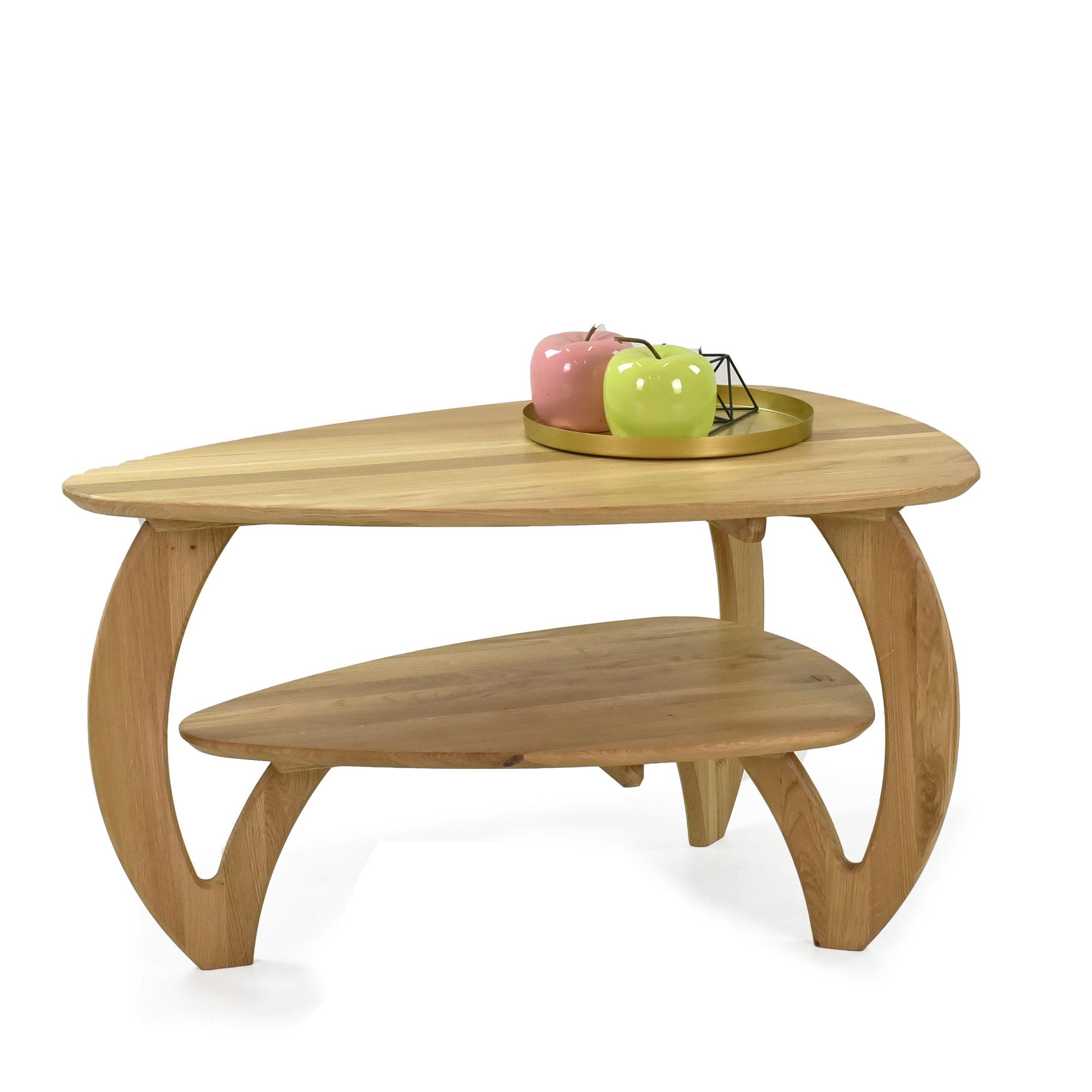 Massiver Couchtisch aus Eichenholz, abgerundet,
