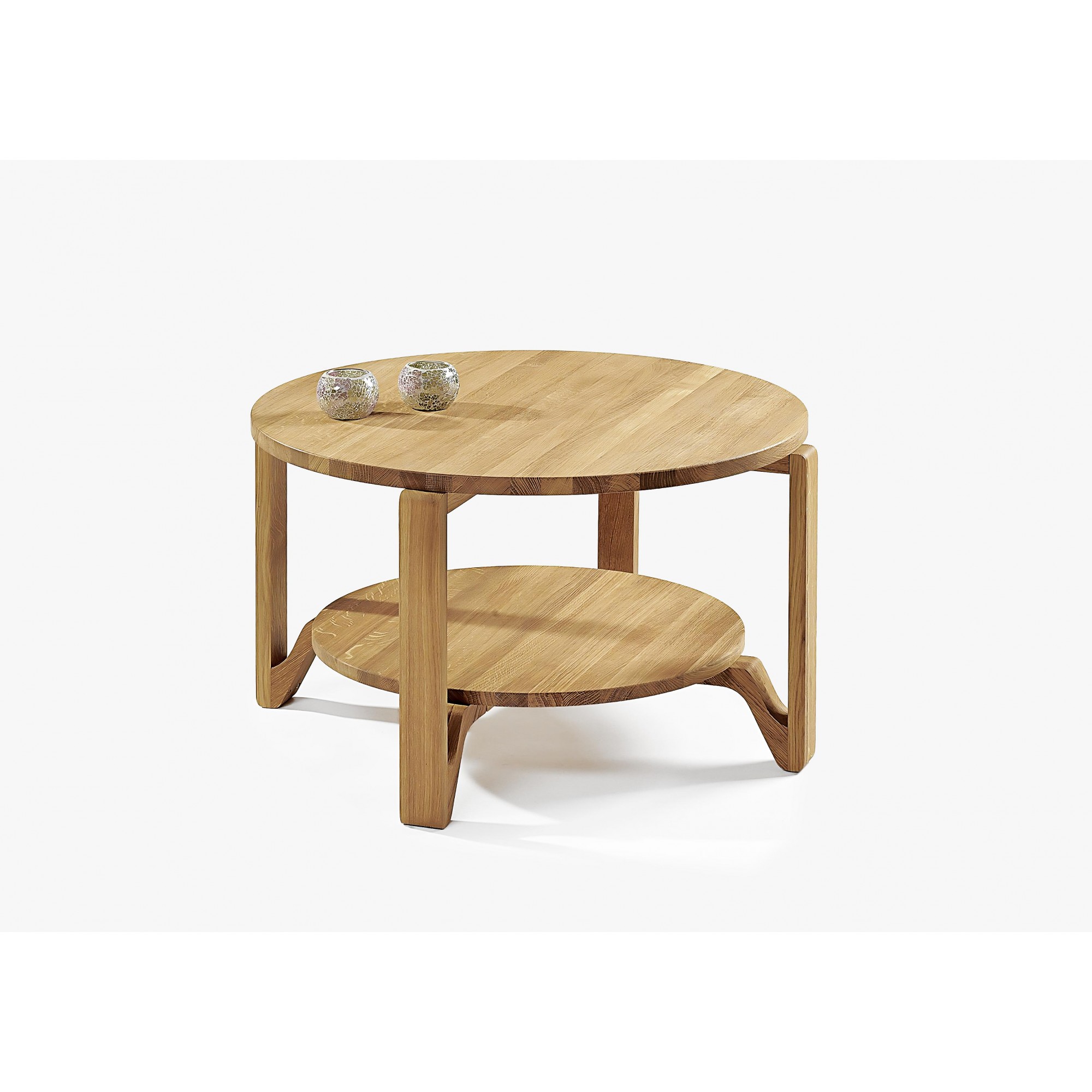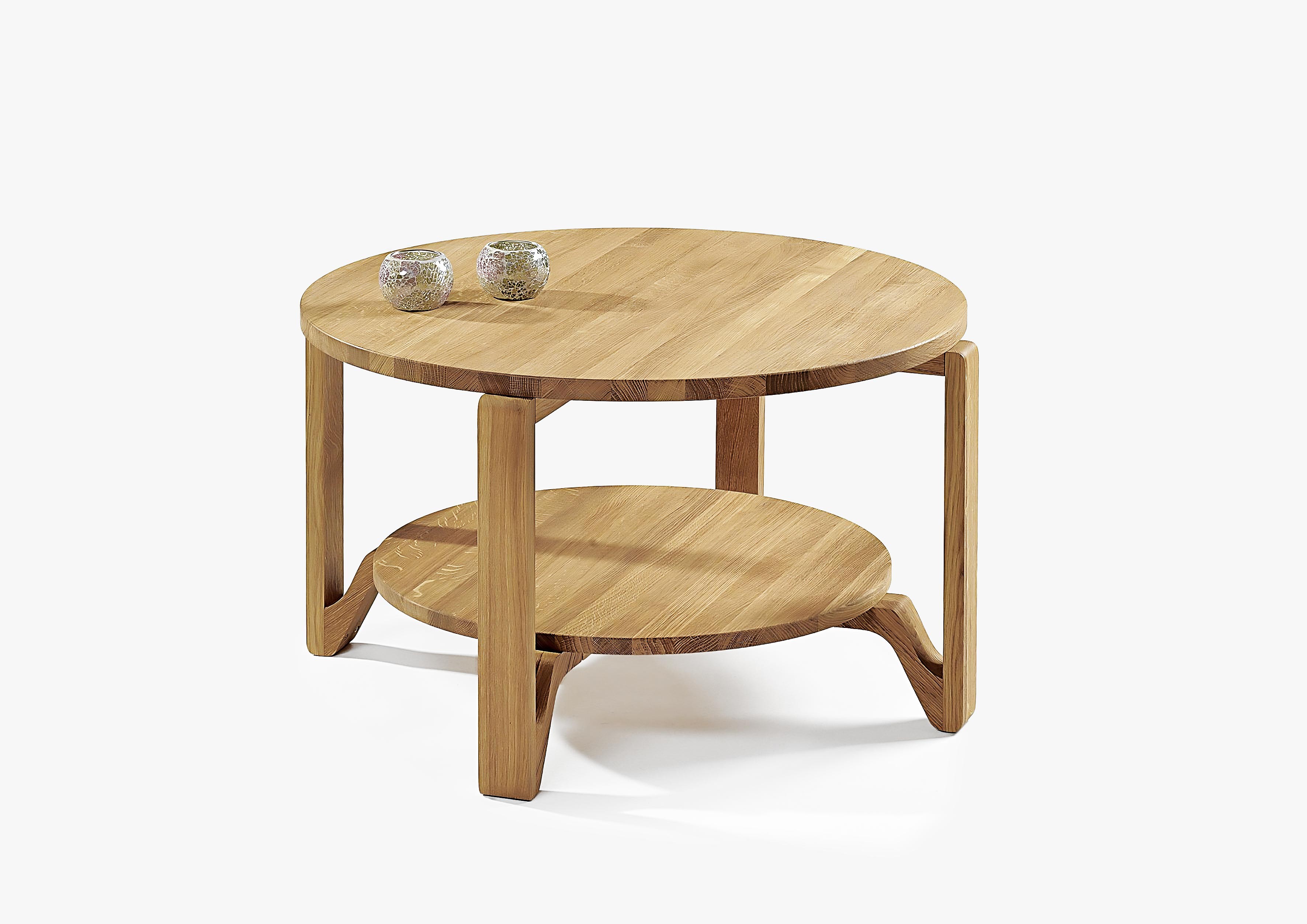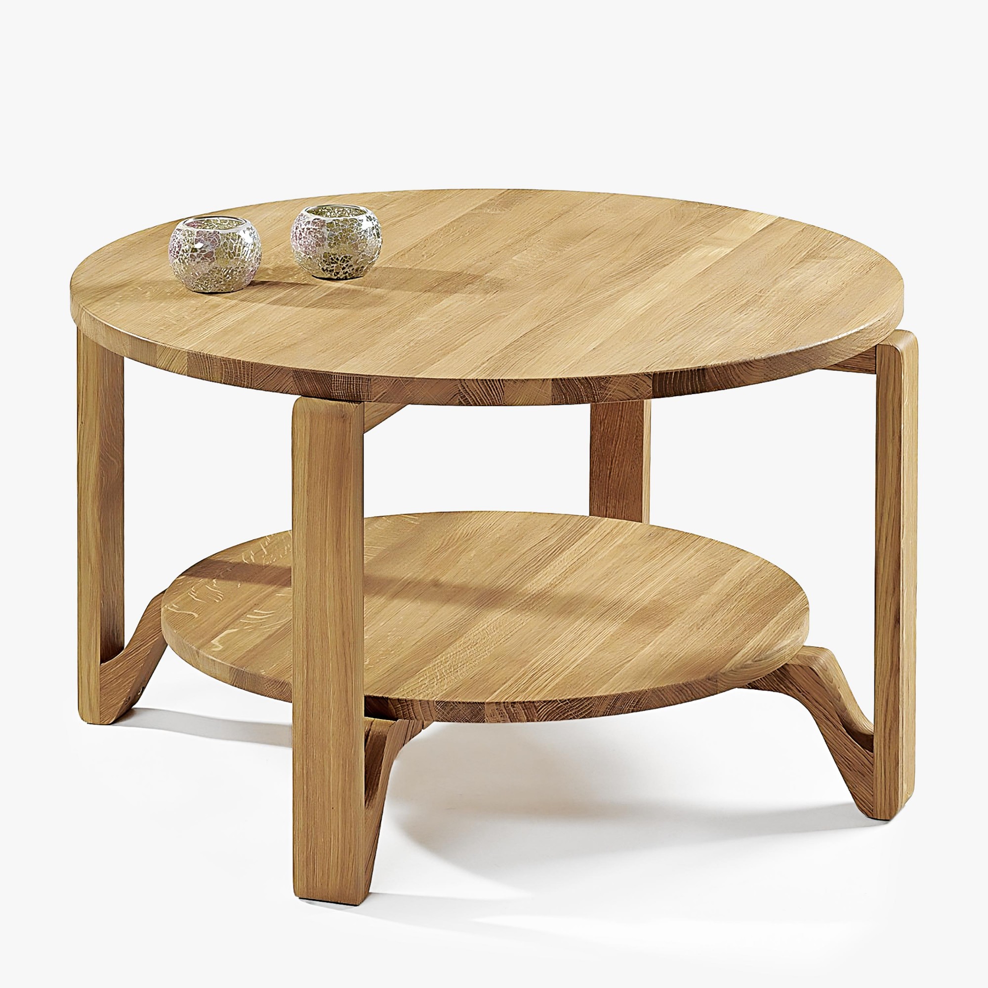 Runder Couchtisch mit Ablage aus massivem Eichenholz
