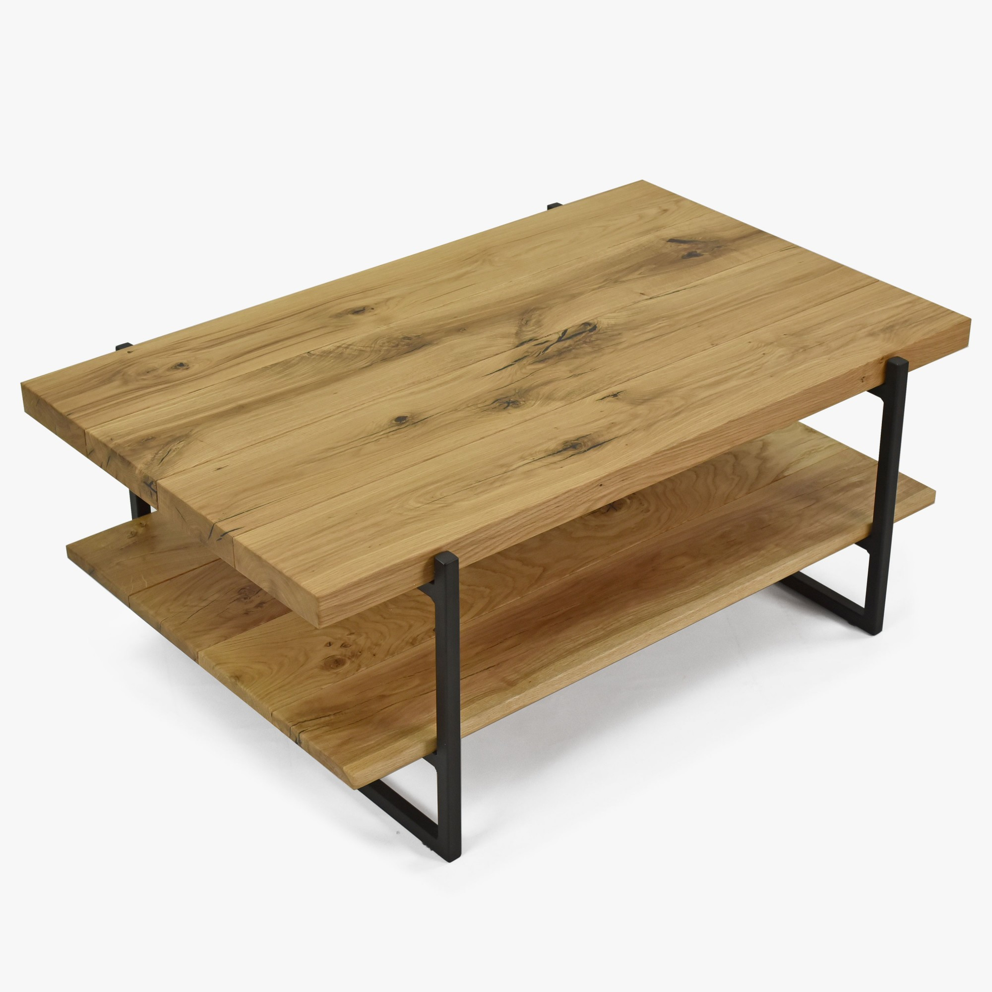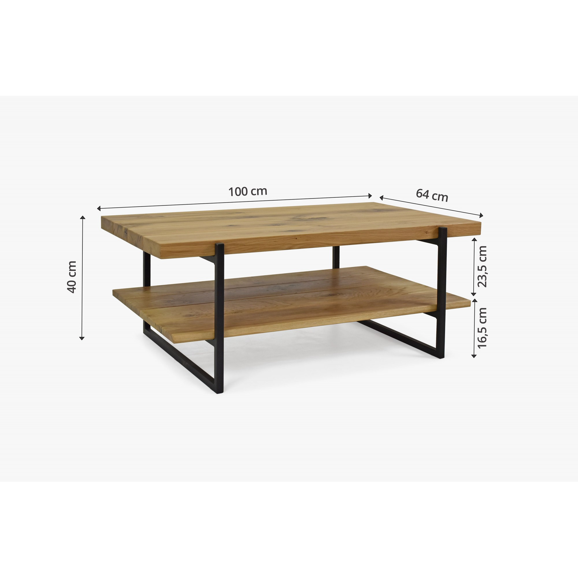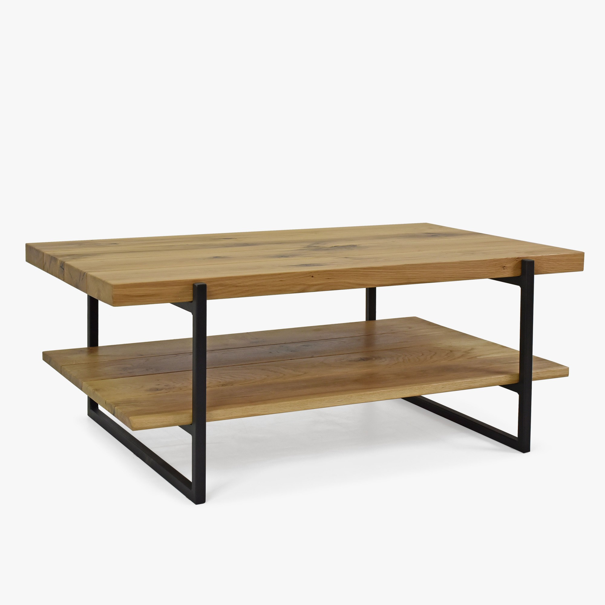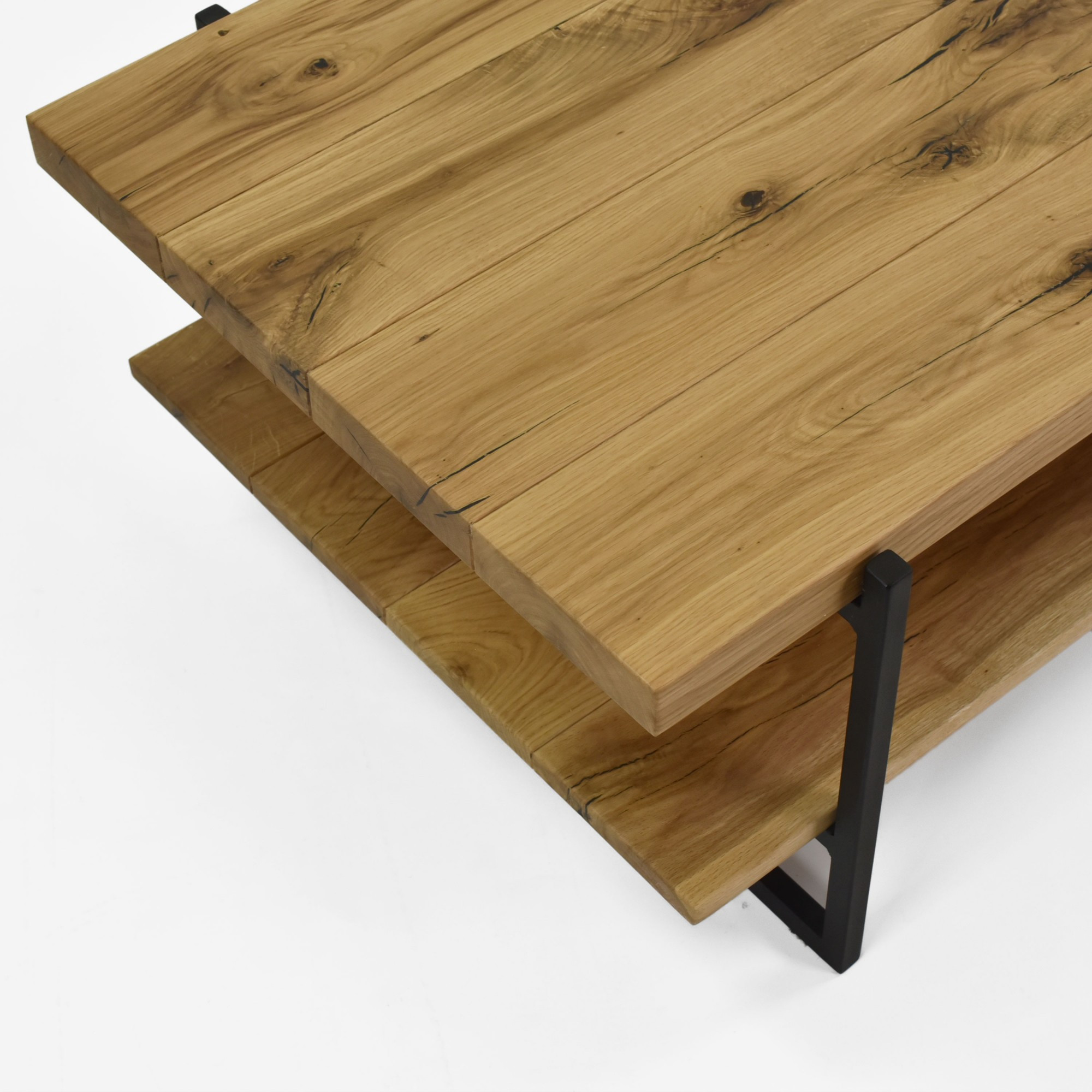 Massiver Couchtisch aus Eiche mit Regal, naturholz