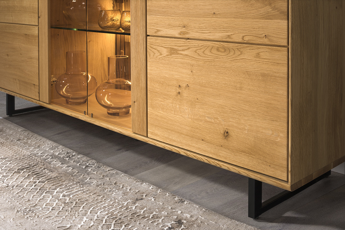 - Ist das Möbelstück aus natürlichem Holz gefertigt? Ja, das Möbelstück ist aus echtem Eichenholz gefertigt und mit natürlichem Eichenfurnier ergänzt.