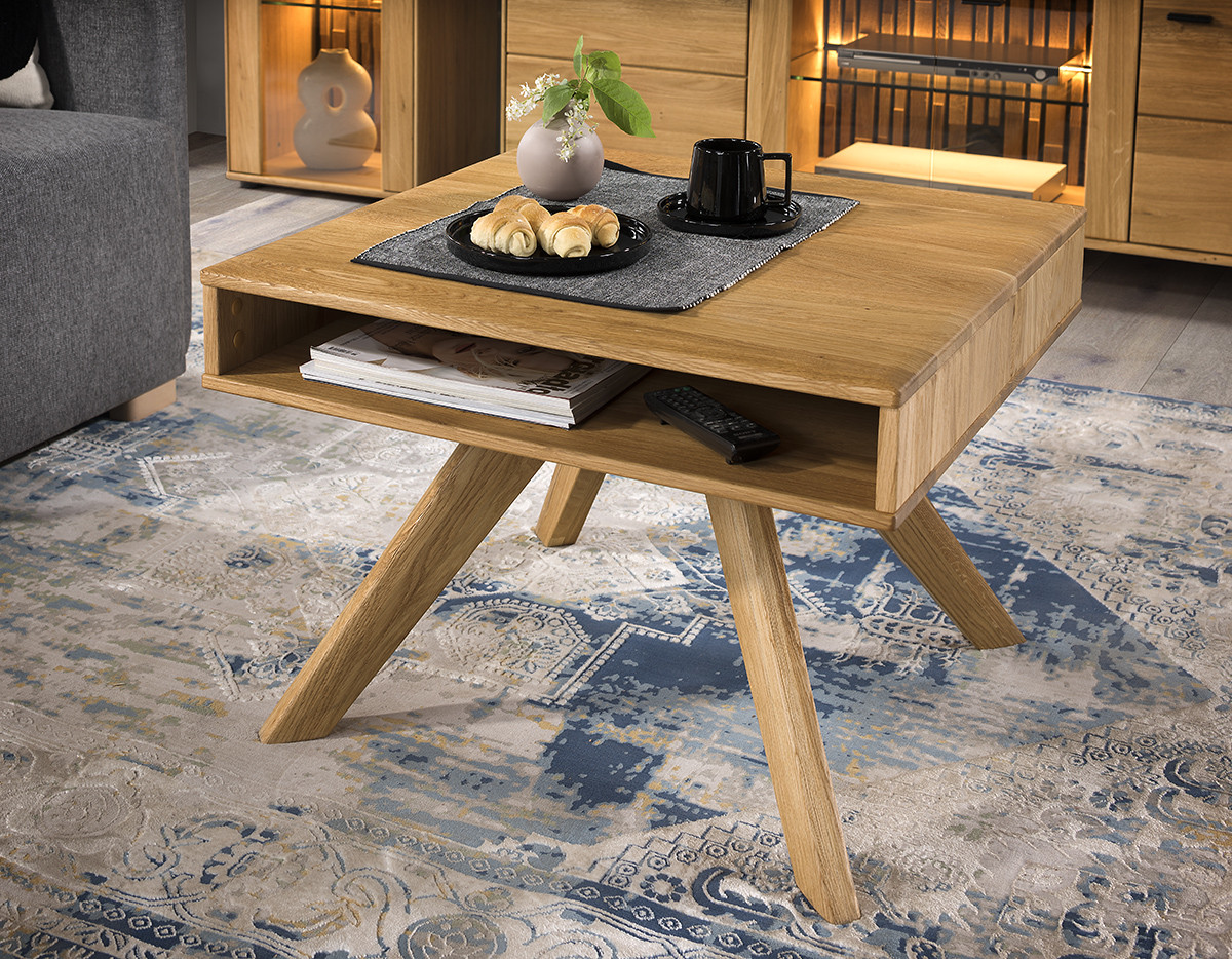 Massiver Eichen-Couchtisch quadratisch mit Stauraum 70x70 cm