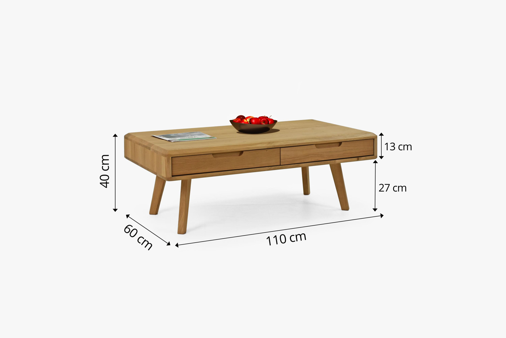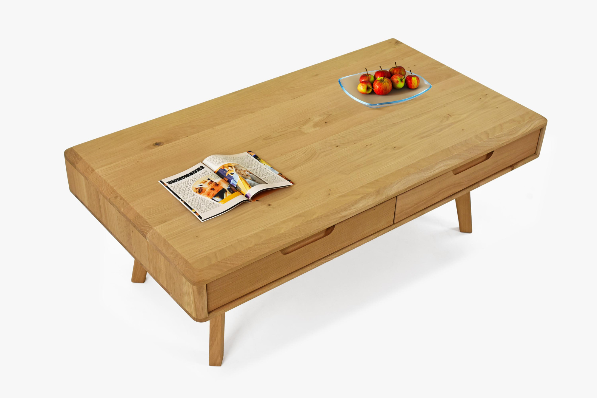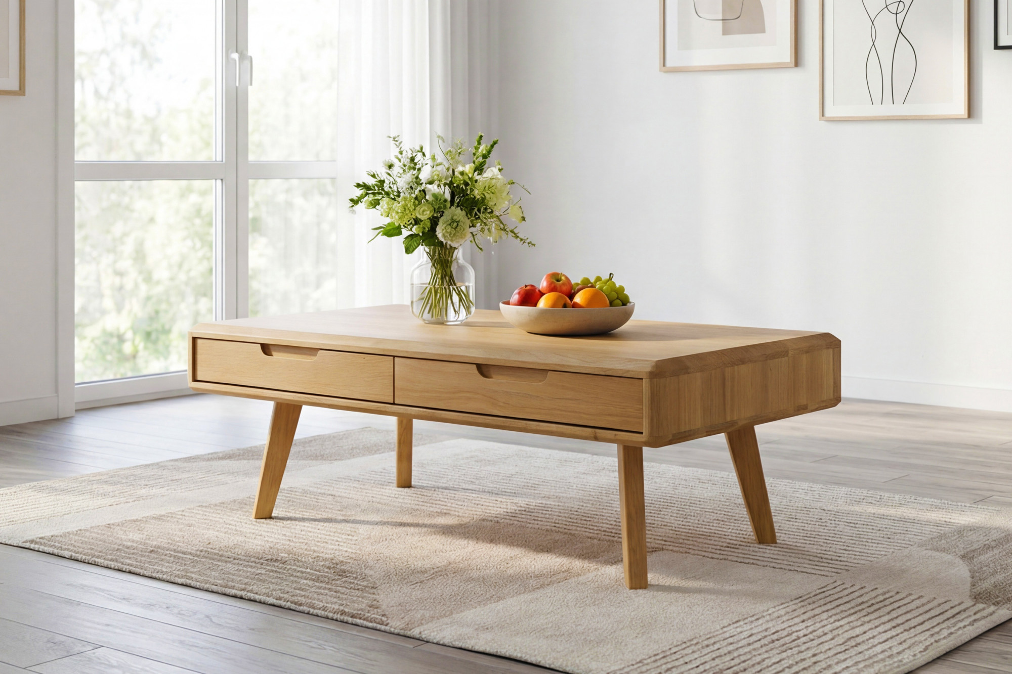 Massiver Couchtisch aus Eiche mit 4 Schubladen naturfarben