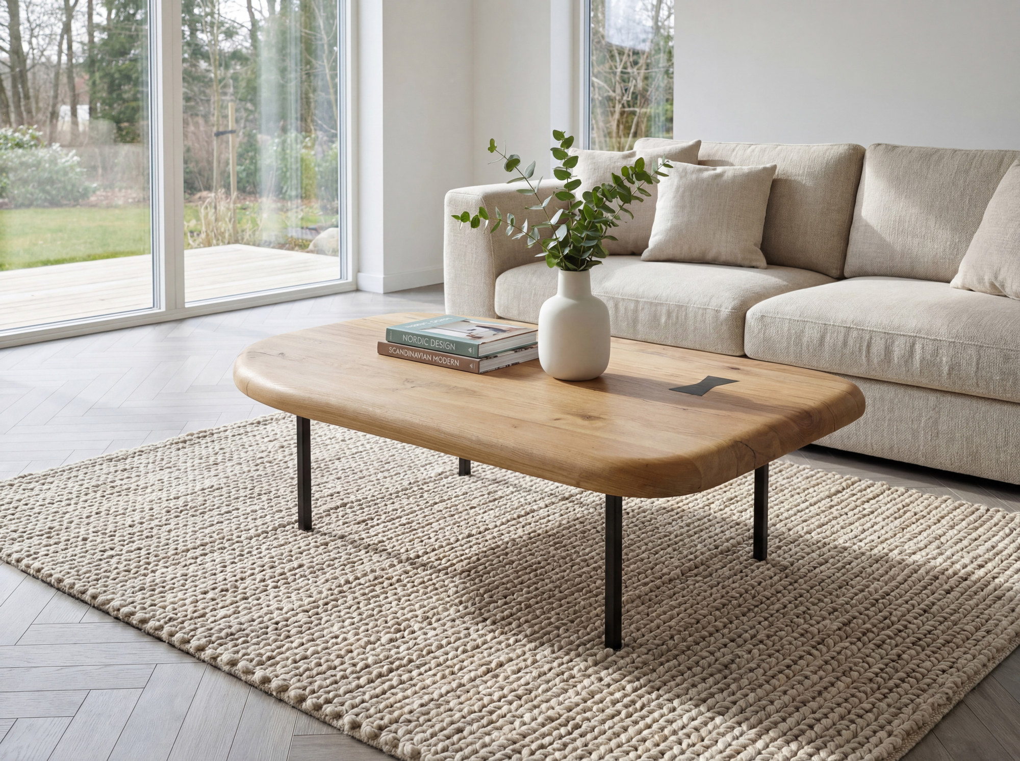 Massivholz Couchtisch Eiche geölt organische Form 5 cm