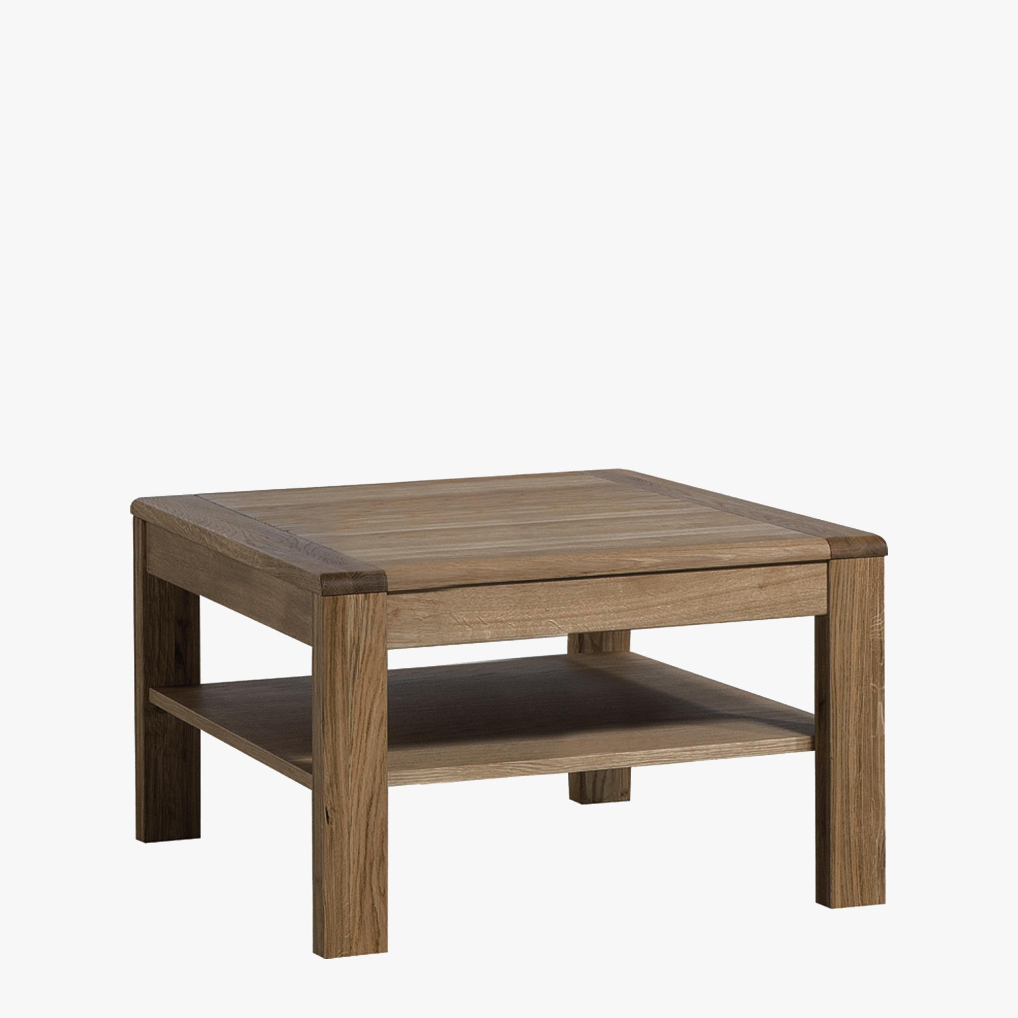 Perfektionieren Sie Ihr Komforterlebnis mit dem eichen Couchtisch! Dank seiner Tischplatte haben Sie immer eine Schale mit Nüssen und eine Tasse guten Kaffees griffbereit. Auf der unteren Platte können Sie die Fernbedienung für den Fernseher oder ein aufgeschlagenes Buch ablegen.