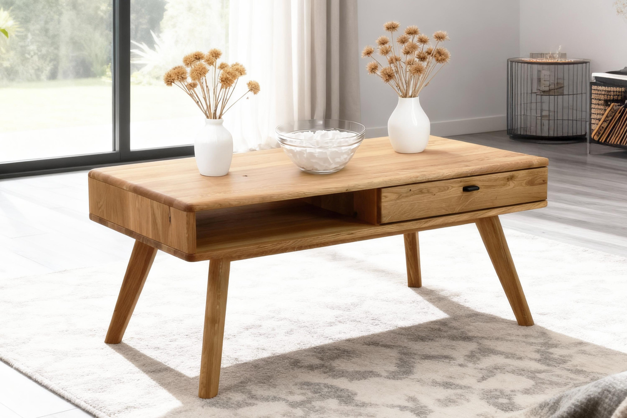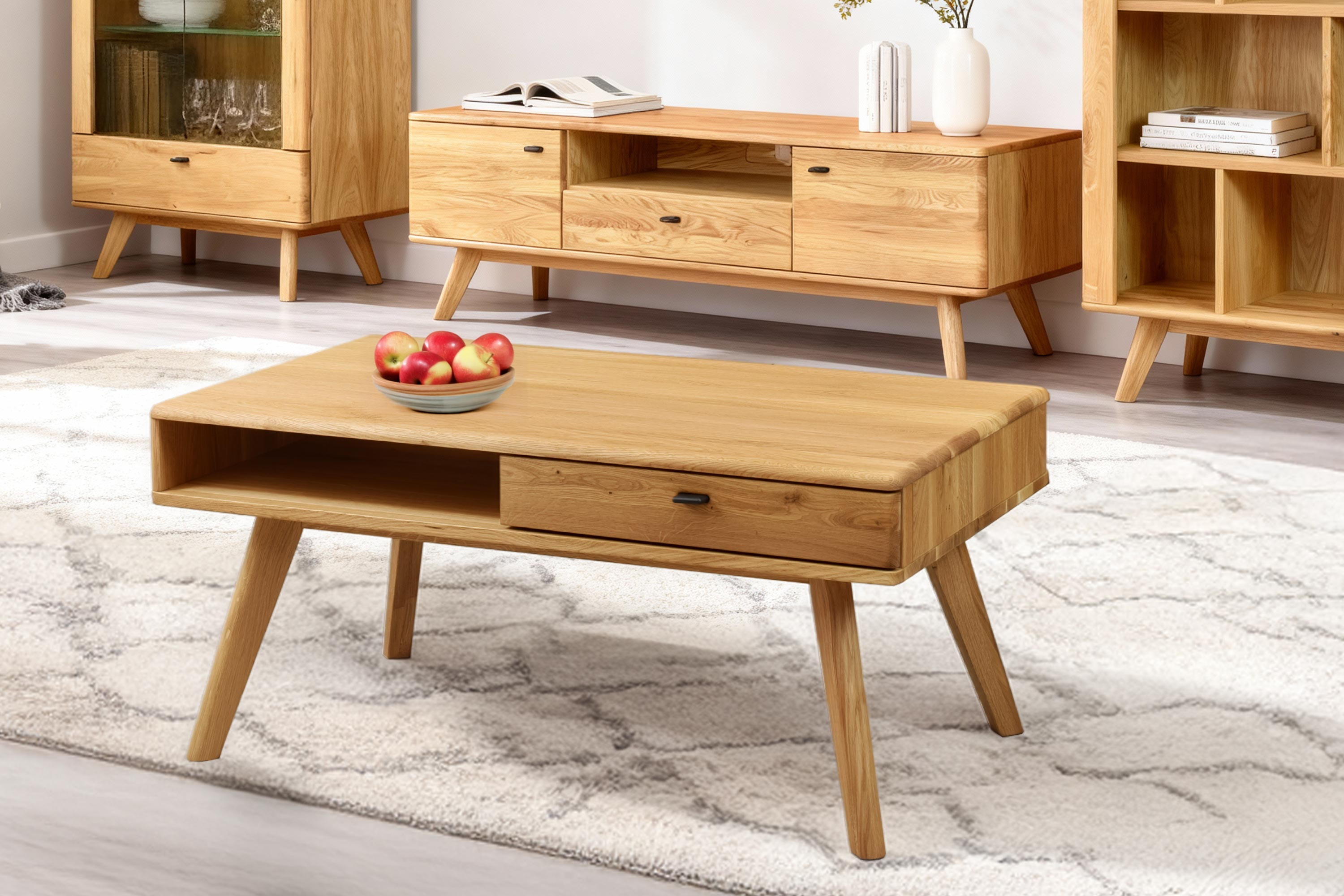 Kaffeetisch Eiche 110x60 cm mit Schublade massiv Holz