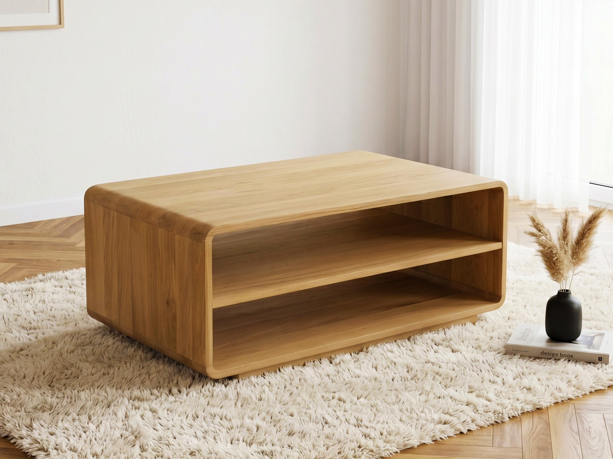 - Zwei offene Ablageflächen für Bücher, Zeitschriften und Kleinigkeiten