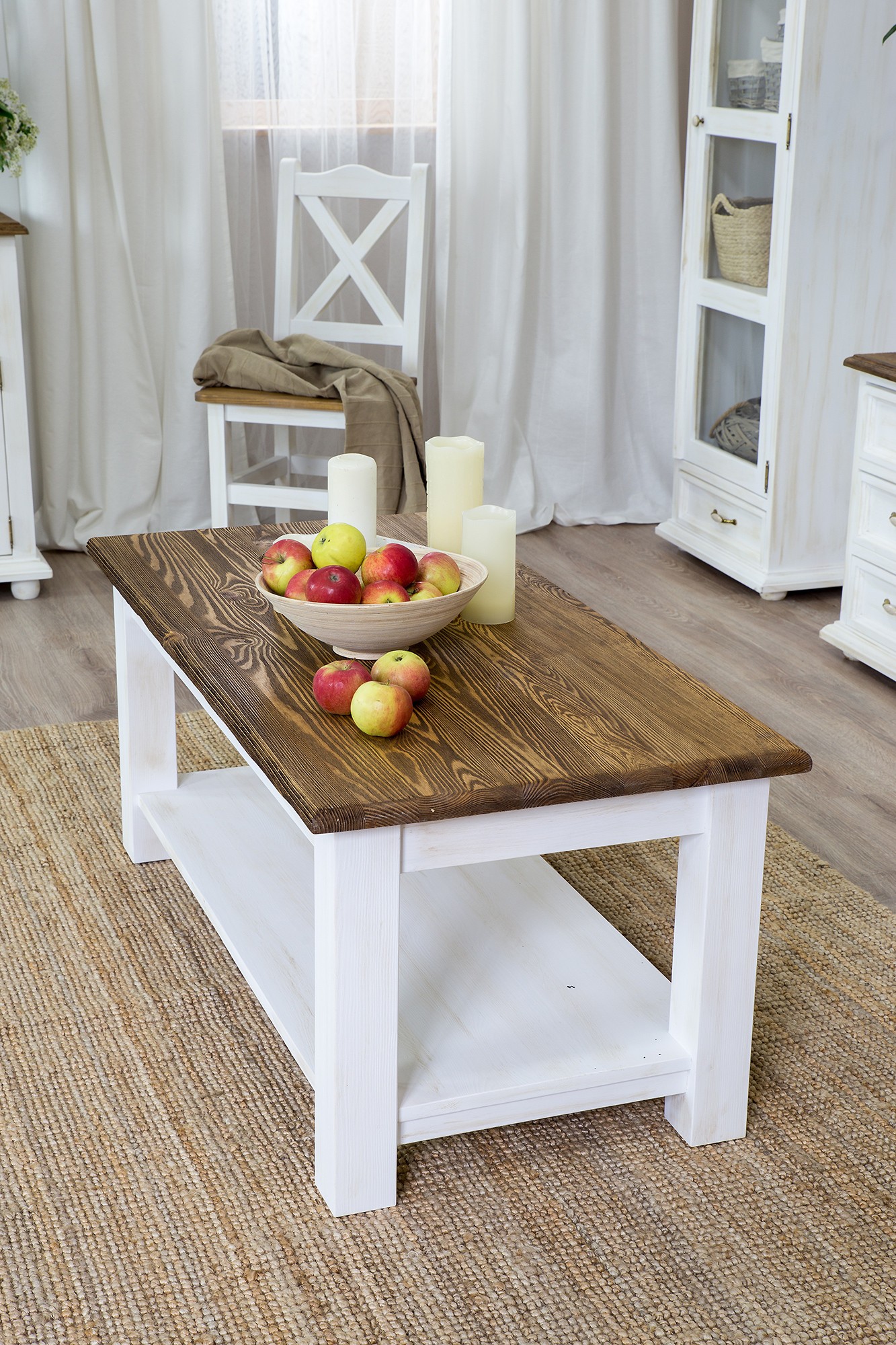 Kaffeetisch Provence Massivkiefer 2 Ablageflächen Wohnzimmer Holz natur