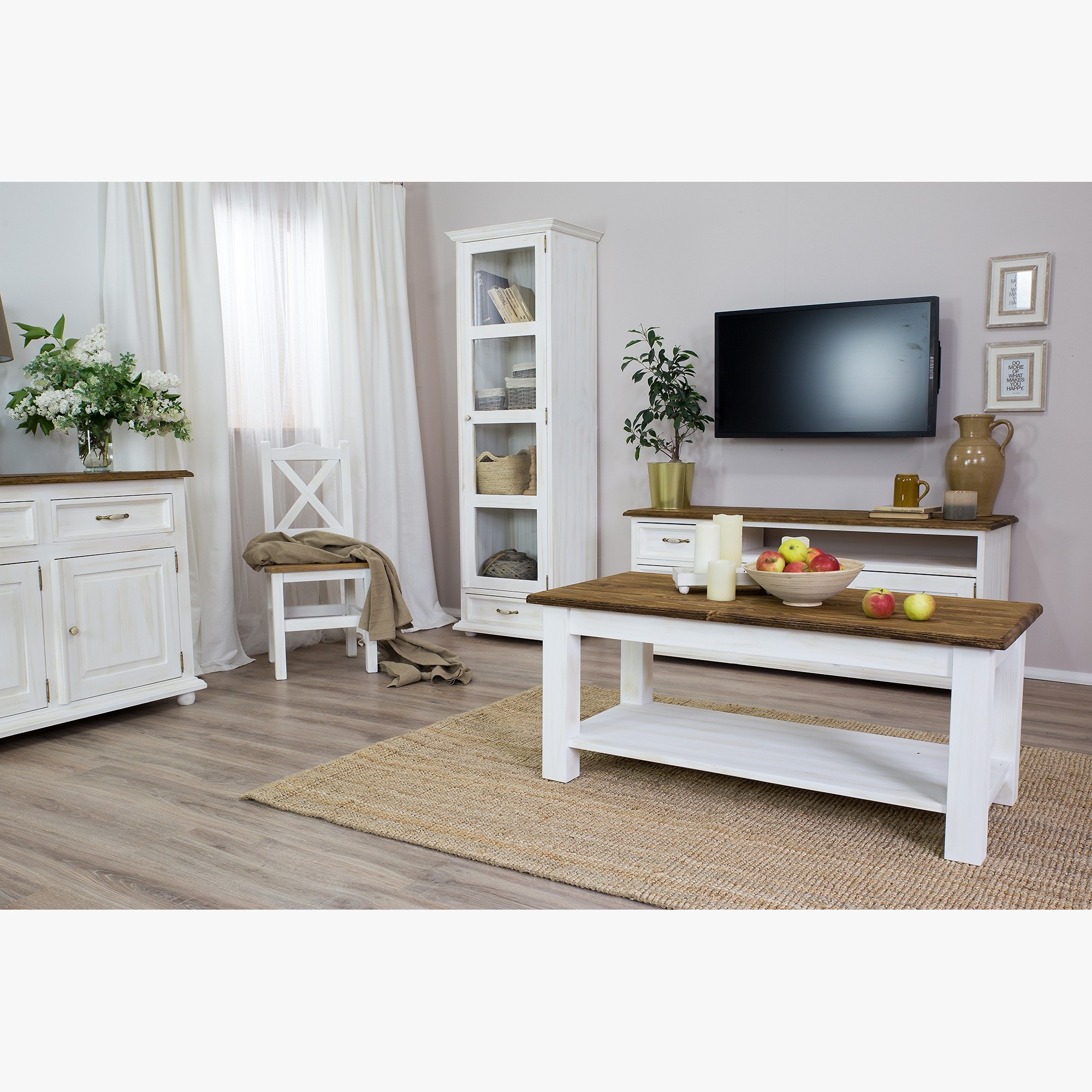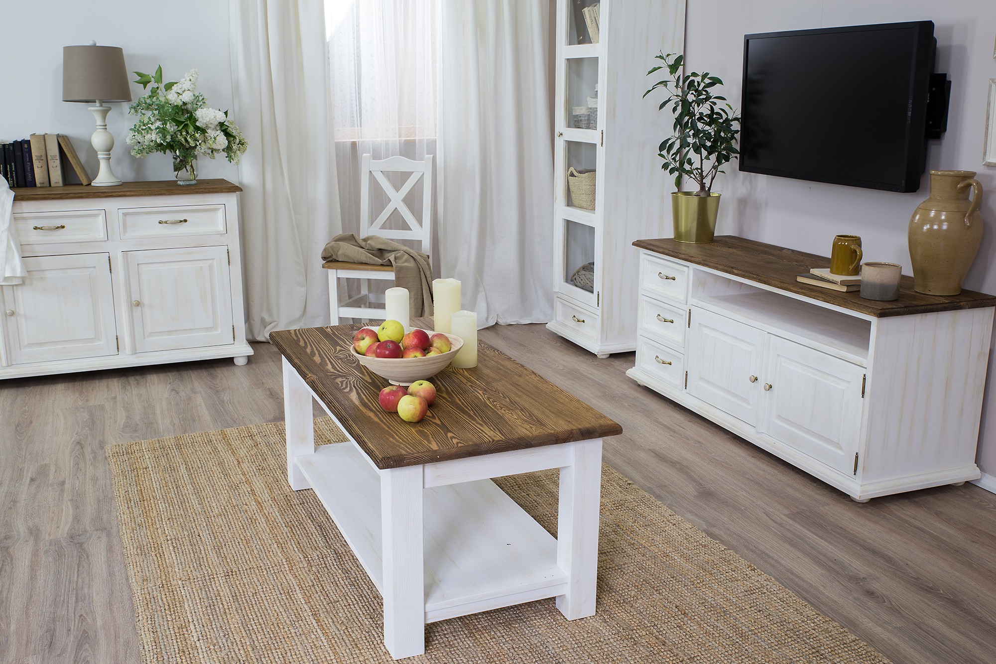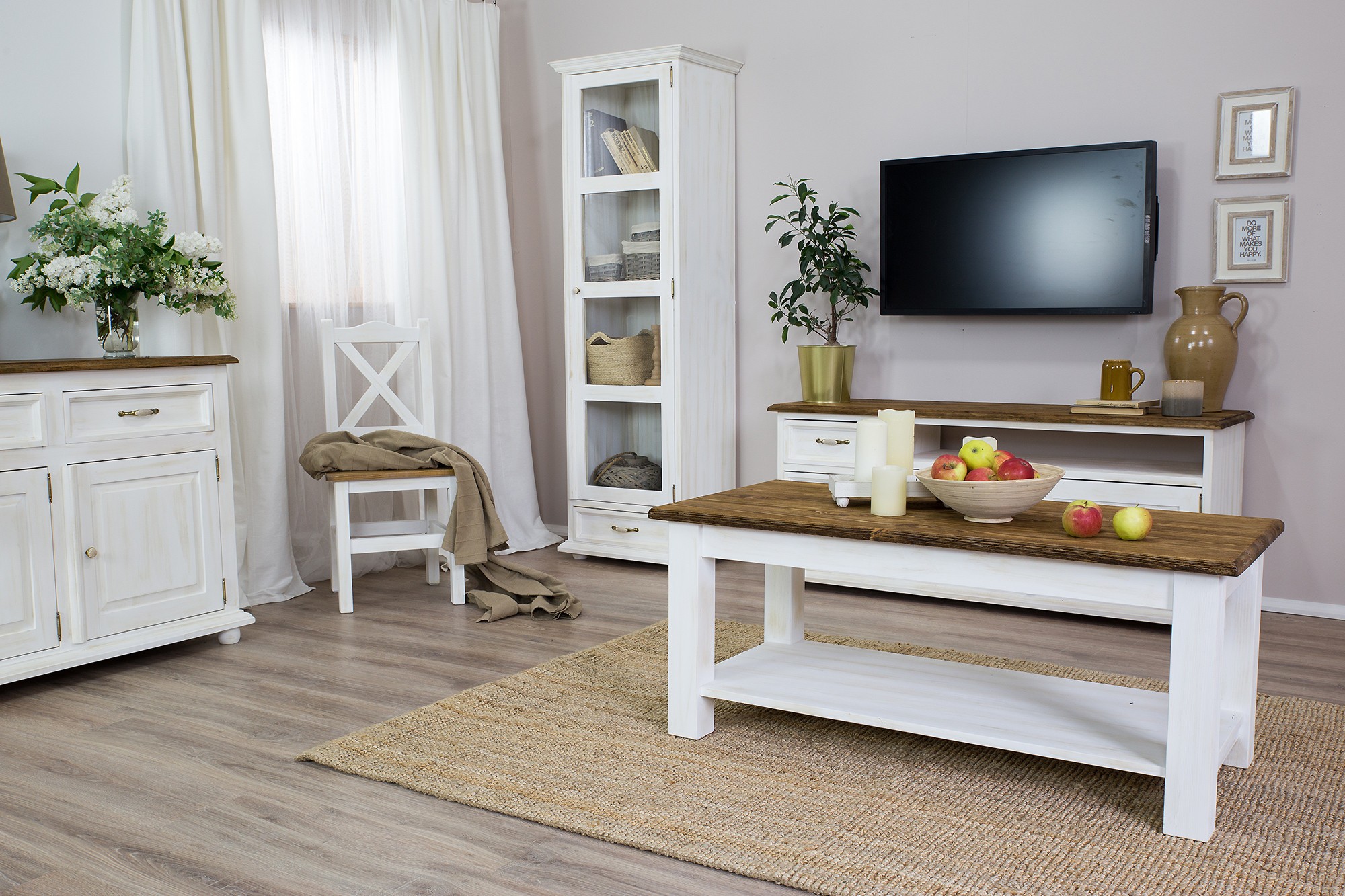 Es handelt sich um ein originelles Möbelstück mit einzigartigem Charakter, das Teil der ganzen Provence Kollektion ist, aus der Sie nach Belieben weitere Elemente nicht nur für das Wohnzimmer auswählen können. Diese außergewöhnliche Möbelserie verwendet als Material 100% massive Kiefer. Die Provence Kollektion imitiert den Lebensstil des französischen Landlebens. Lassen Sie sich von unserem Angebot inspirieren und gestalten Sie Ihr Zuhause im einheitlichen Provence-Stil!