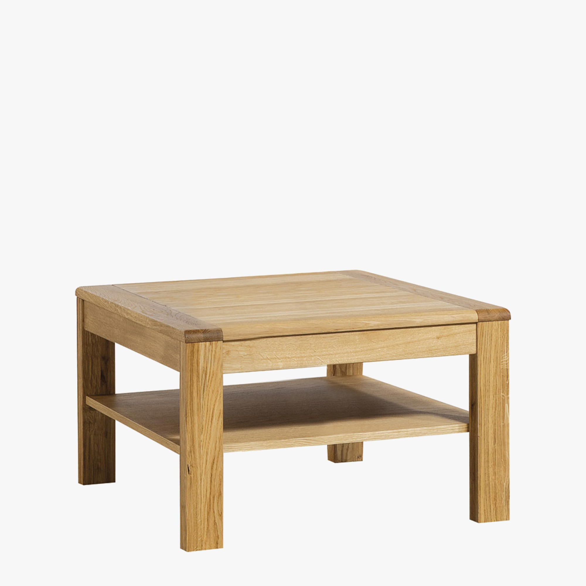 Runden Sie Ihr Komforterlebnis mit dem Eichen-Couchtisch perfekt ab! Dank der Tischplatte haben Sie stets eine Schale mit Nüssen und eine Tasse guten Kaffees zur Hand. Auf der unteren Ablage legen Sie wiederum die Fernbedienung oder ein aufgeschlagenes Buch ab.