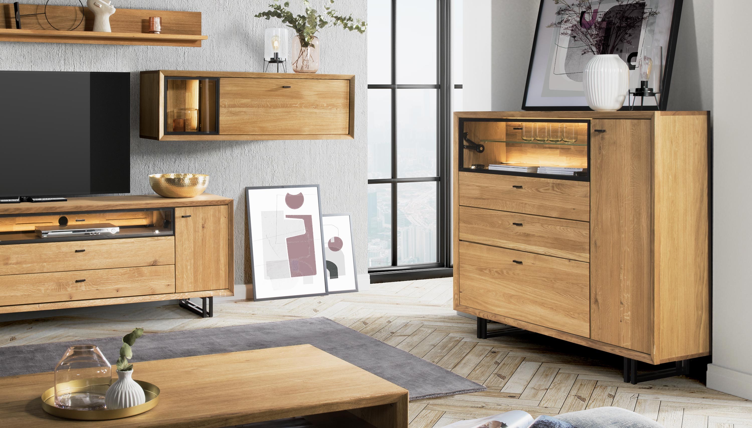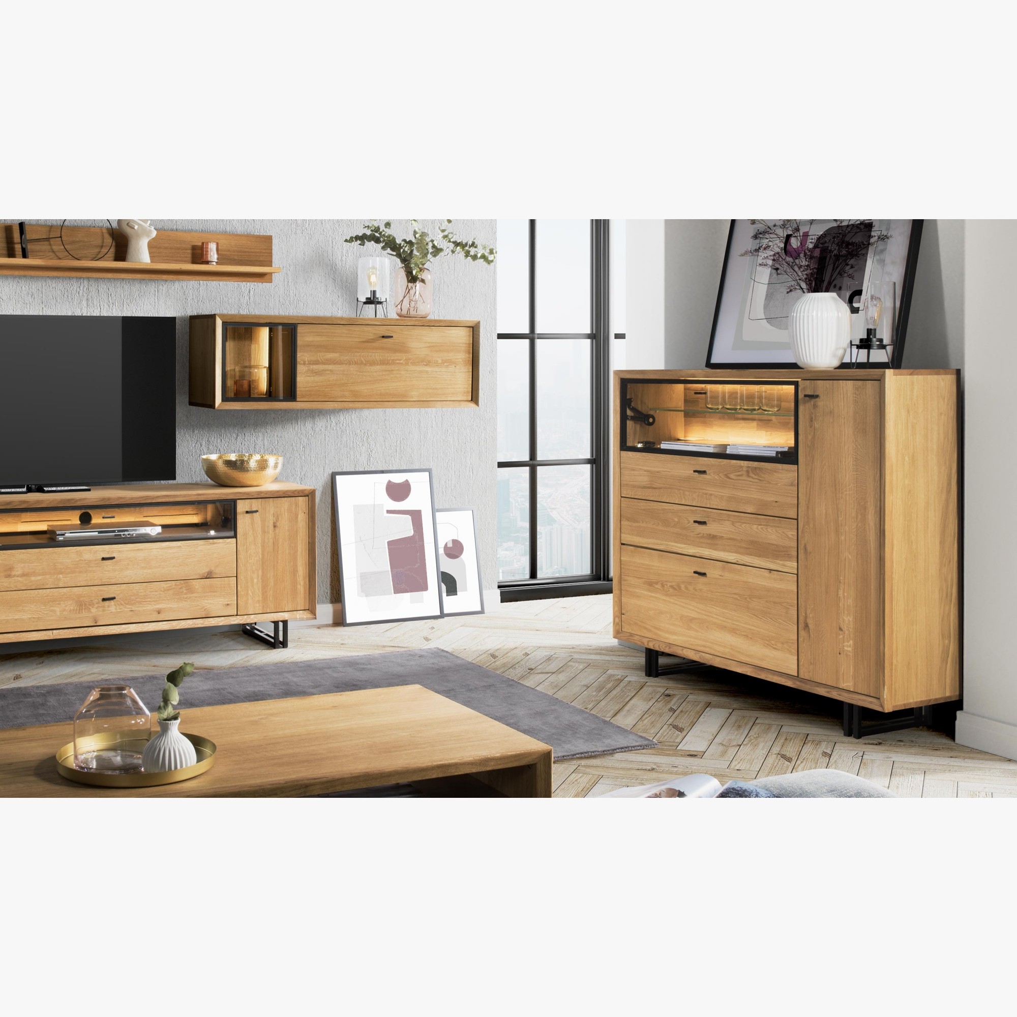 Die VILO-Kollektion aus dem Jahr 2020 steht für exklusiven und designorientierten Möbel. Die Möbel dieser Kollektion umfassen TV-Kommoden, Vitrinen, Regale und stilvolle Couchtische, alle mit leisem Schließmechanismus der Türen und Schubladen für eine komfortable Nutzung.