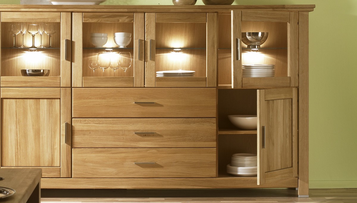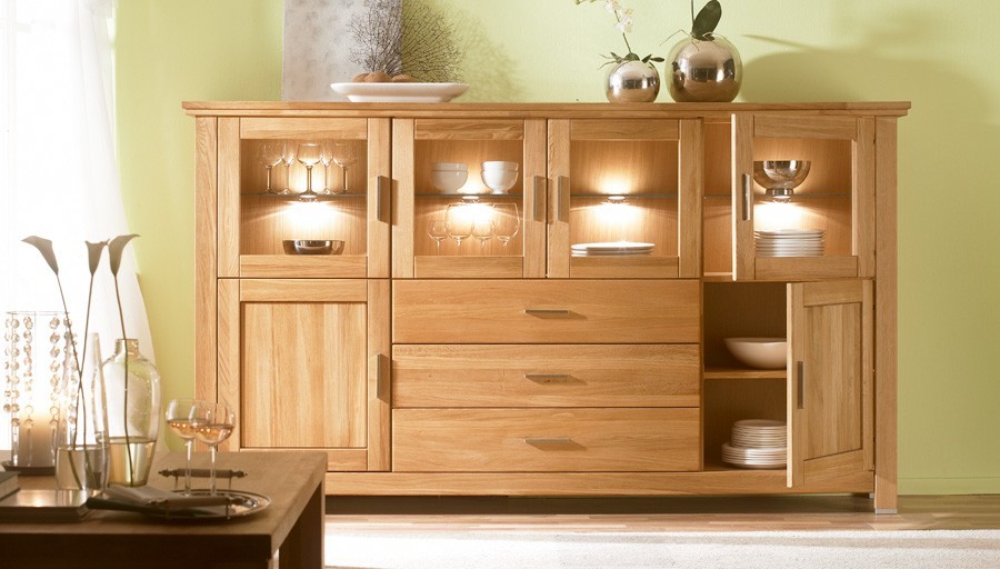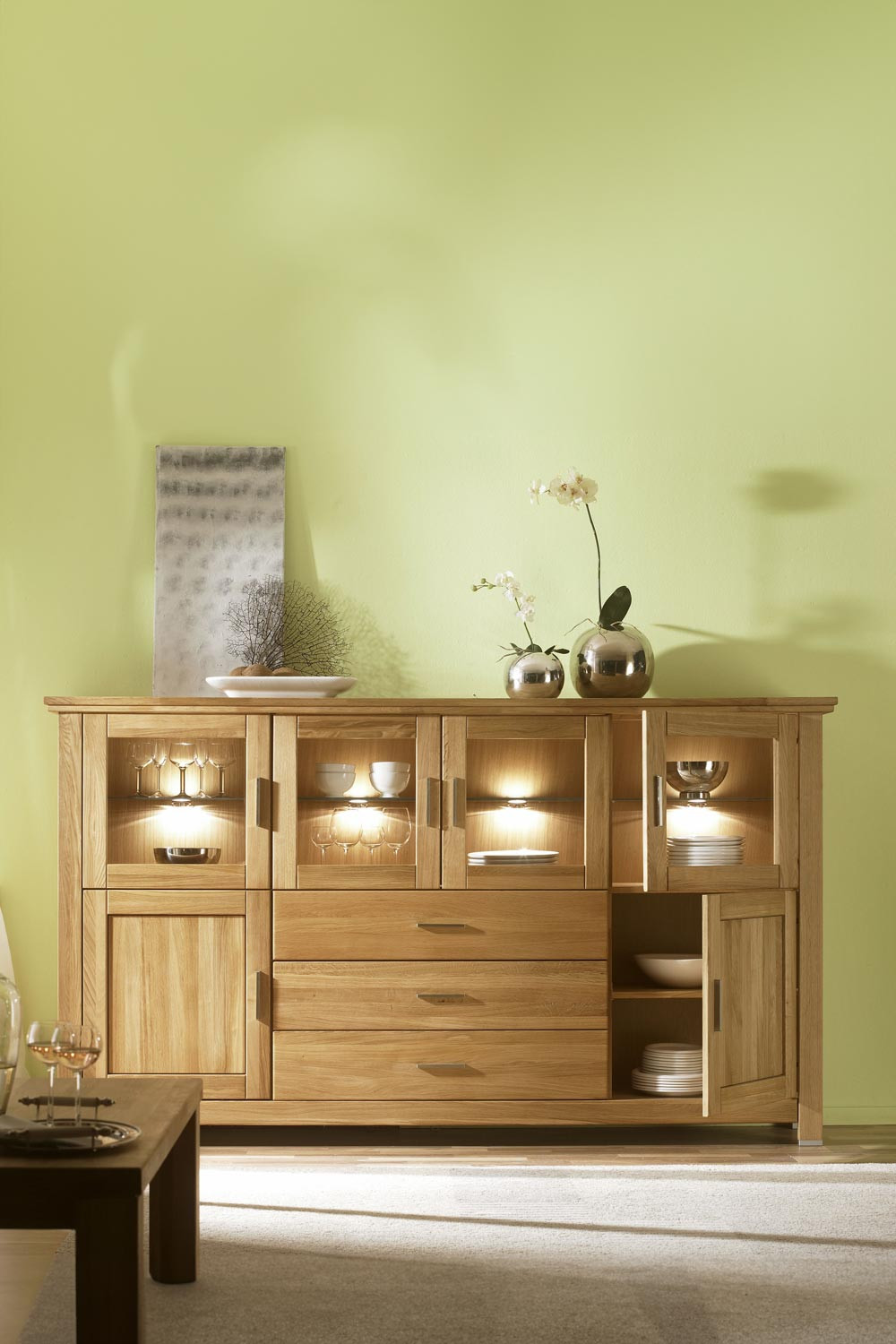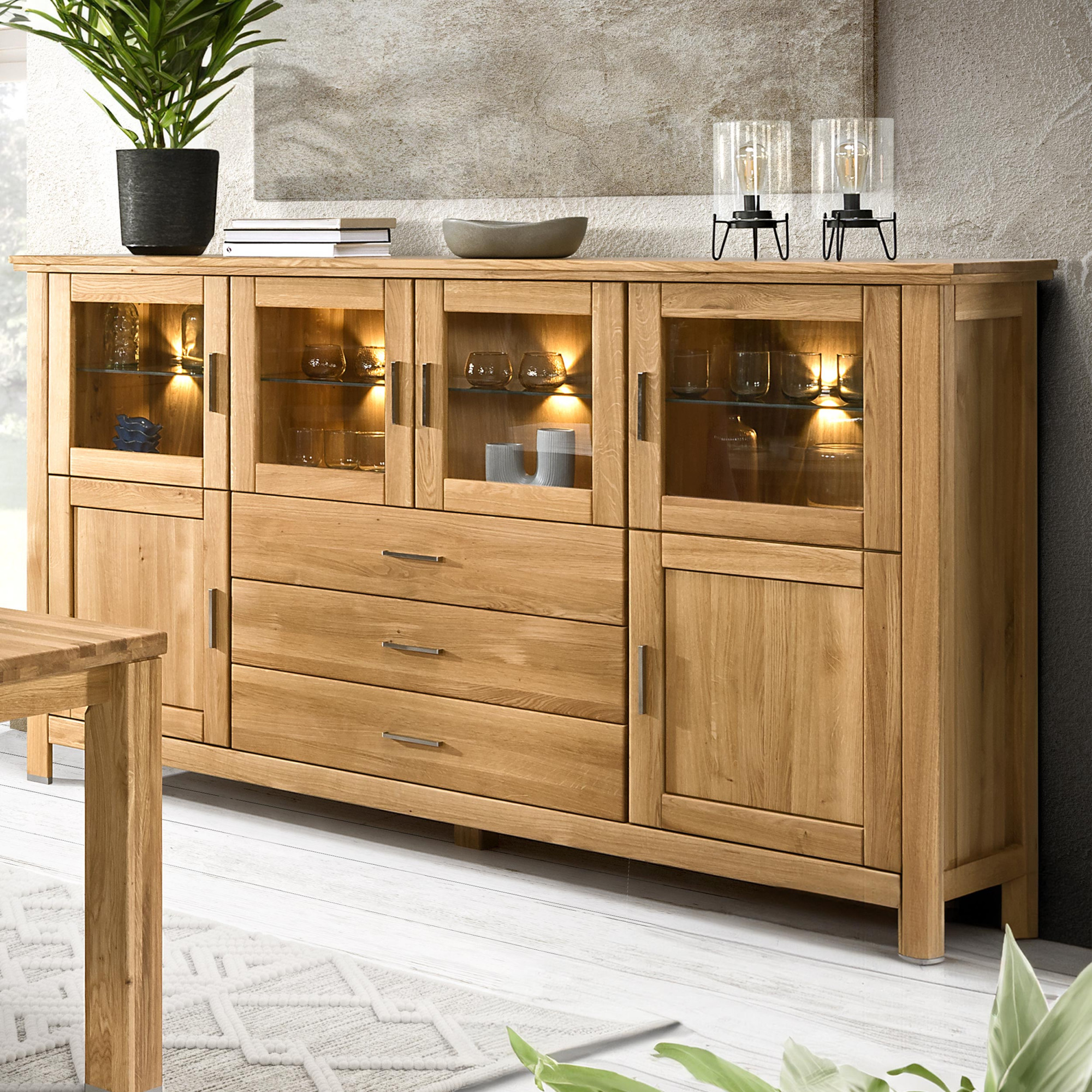 Große massive Eichenholz Kommode Wohnzimmer naturfarben massiv Holz