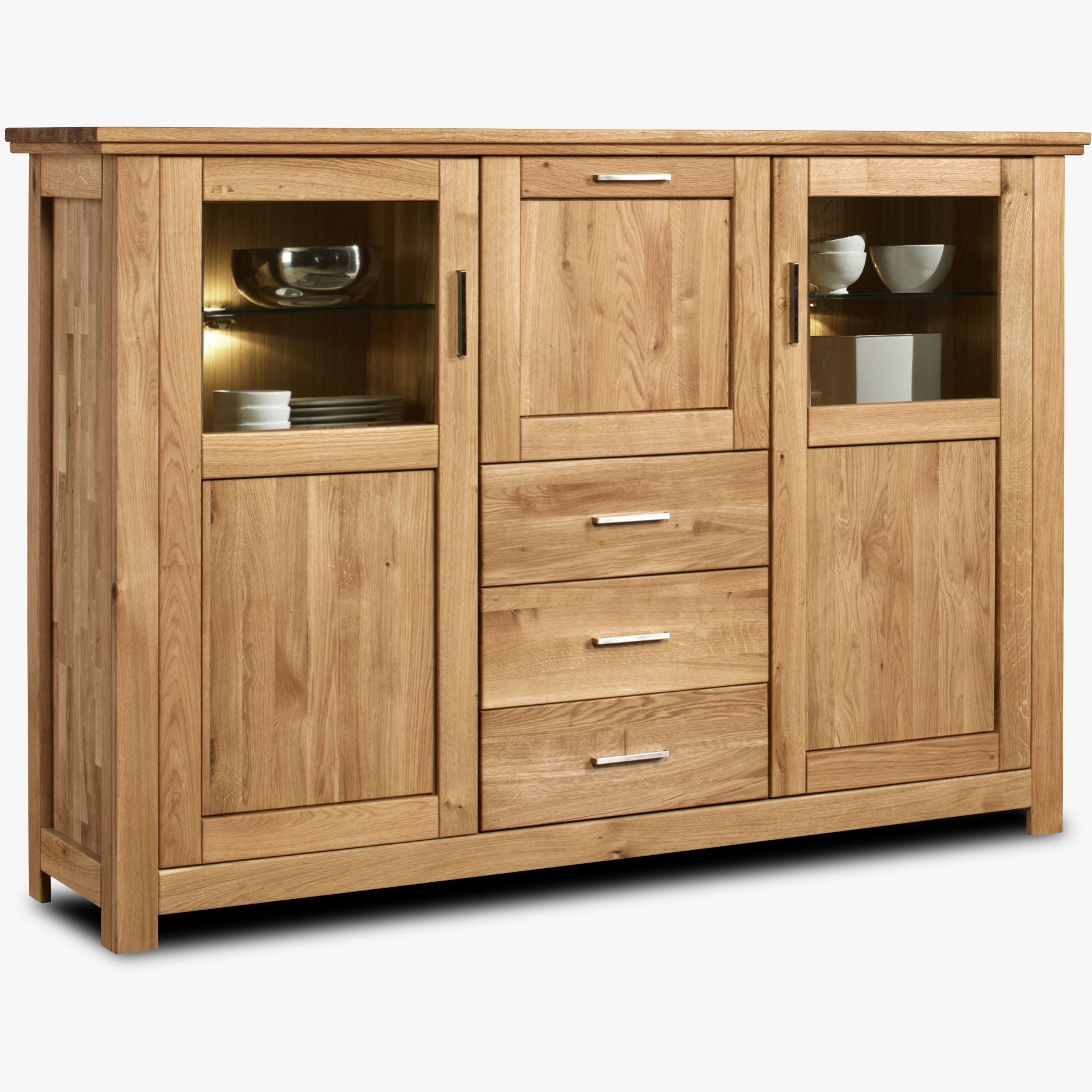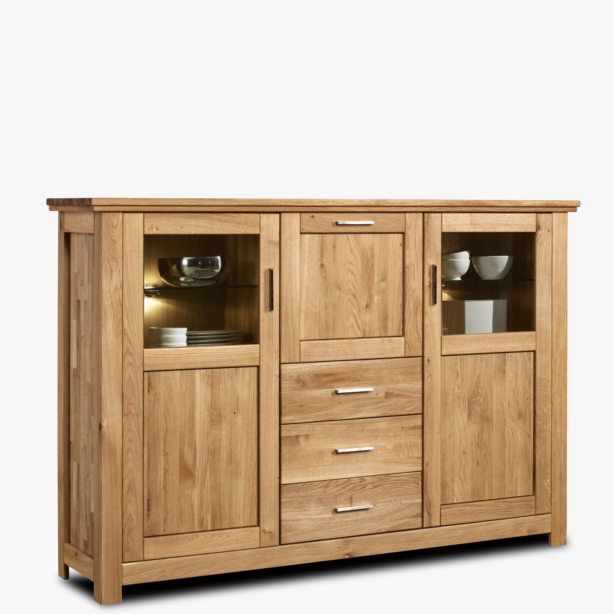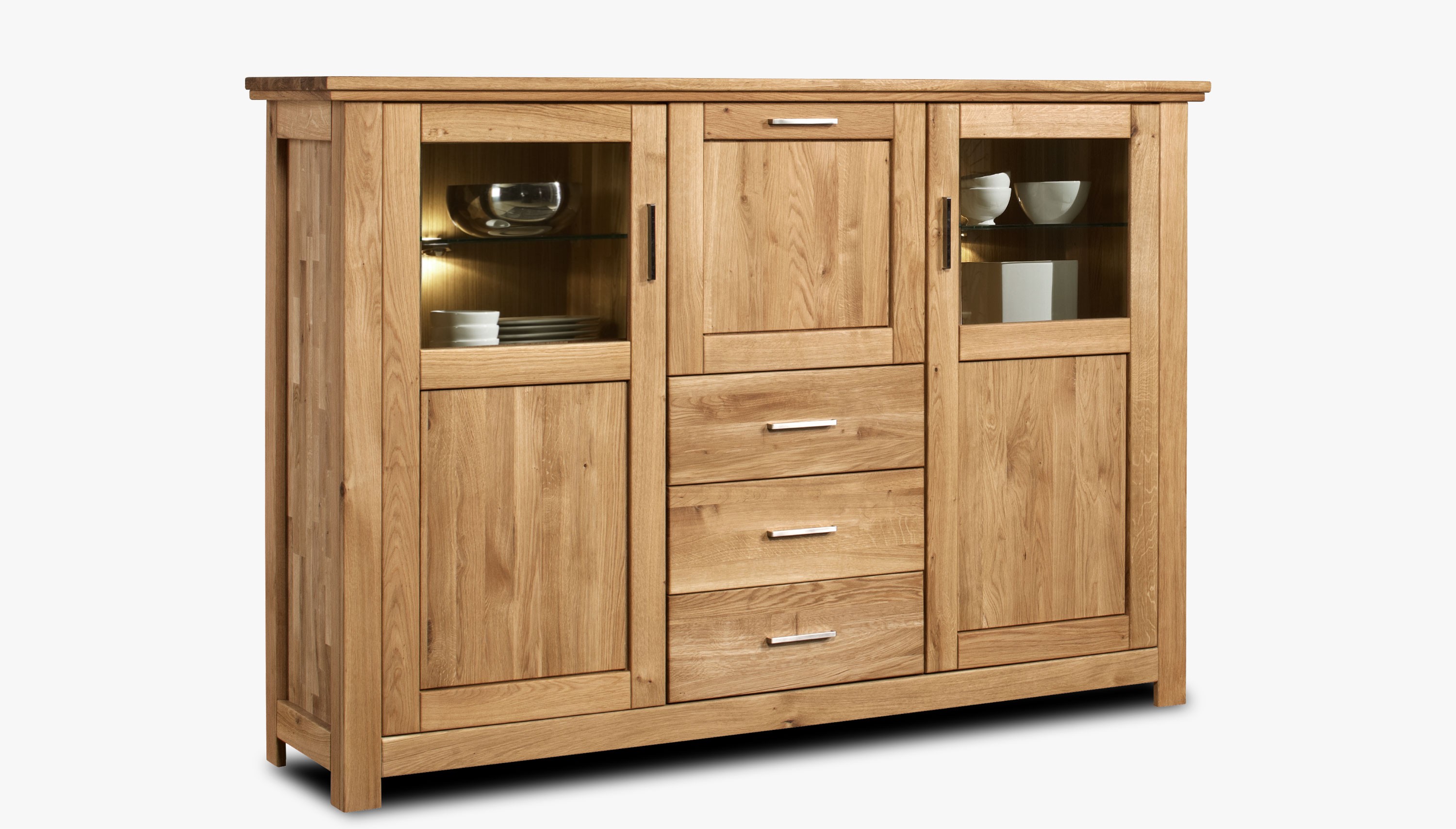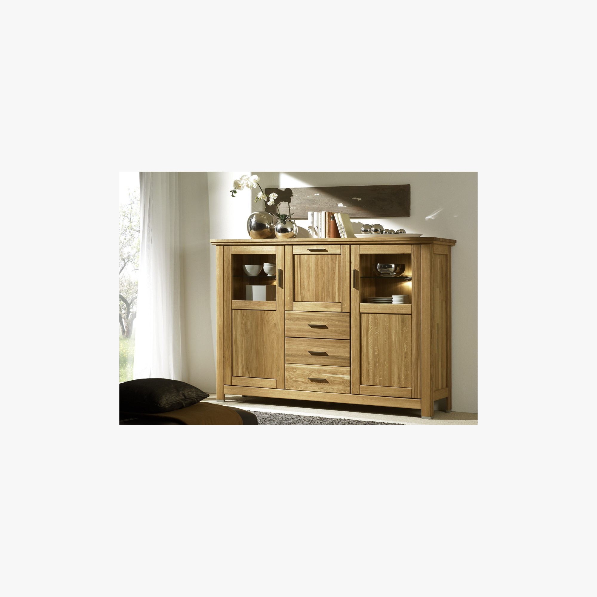 Der Eichen-Sekretär eignet sich hervorragend für das Esszimmer oder das Wohnzimmer. Zwei seitliche Schränke sind mit teilweise verglasten Türen ausgestattet. Hinter dem verglasten Teil befindet sich jeweils ein Glasregal, hinter dem geschlossenen Teil ein Holzregal. Im mittleren Bereich des Sekretärs befinden sich ein oberer Schrank und darunter drei Schubladen mit Selbstzugmechanismus. Selbstverständlich besitzt er auch ein sanftes Türenschließen mit Soft-Stop. Die länglichen Metallgriffe harmonieren schön mit dem Gesamtdesign des Sekretärs. Für die Herstellung des Eichen-Sekretärs wurde ausgewähltes Holz verwendet, das einem strengen Kontrollprozess unterliegt. Die Produktion erfolgt unter Einsatz modernster Technologien. Die Oberfläche des Sekretärs ist nur mit natürlichem Öl einer renommierten deutschen Marke behandelt. Dessen Aufgabe ist es, die Maserung des Massivholzes hervorzuheben, dessen Schönheit zu bewahren und ihm höhere Widerstandsfähigkeit gegen mechanische Beschädigungen zu verleihen. Die Farbgestaltung Eiche Öl wirkt natürlich und lässt sich mit weiteren Elementen dieser Ausführung aus allen Kollektionen des Eichenmöbels kombinieren.