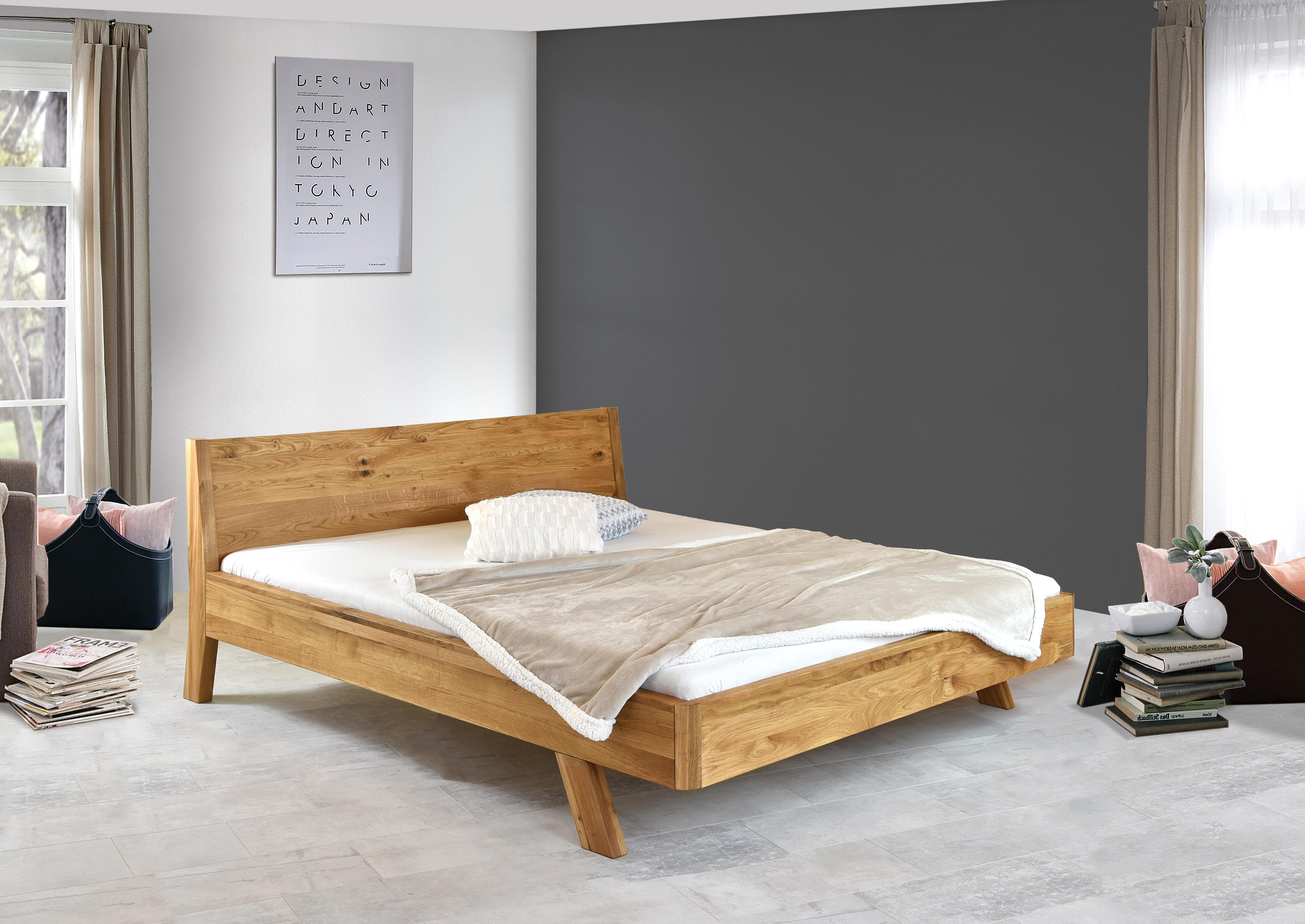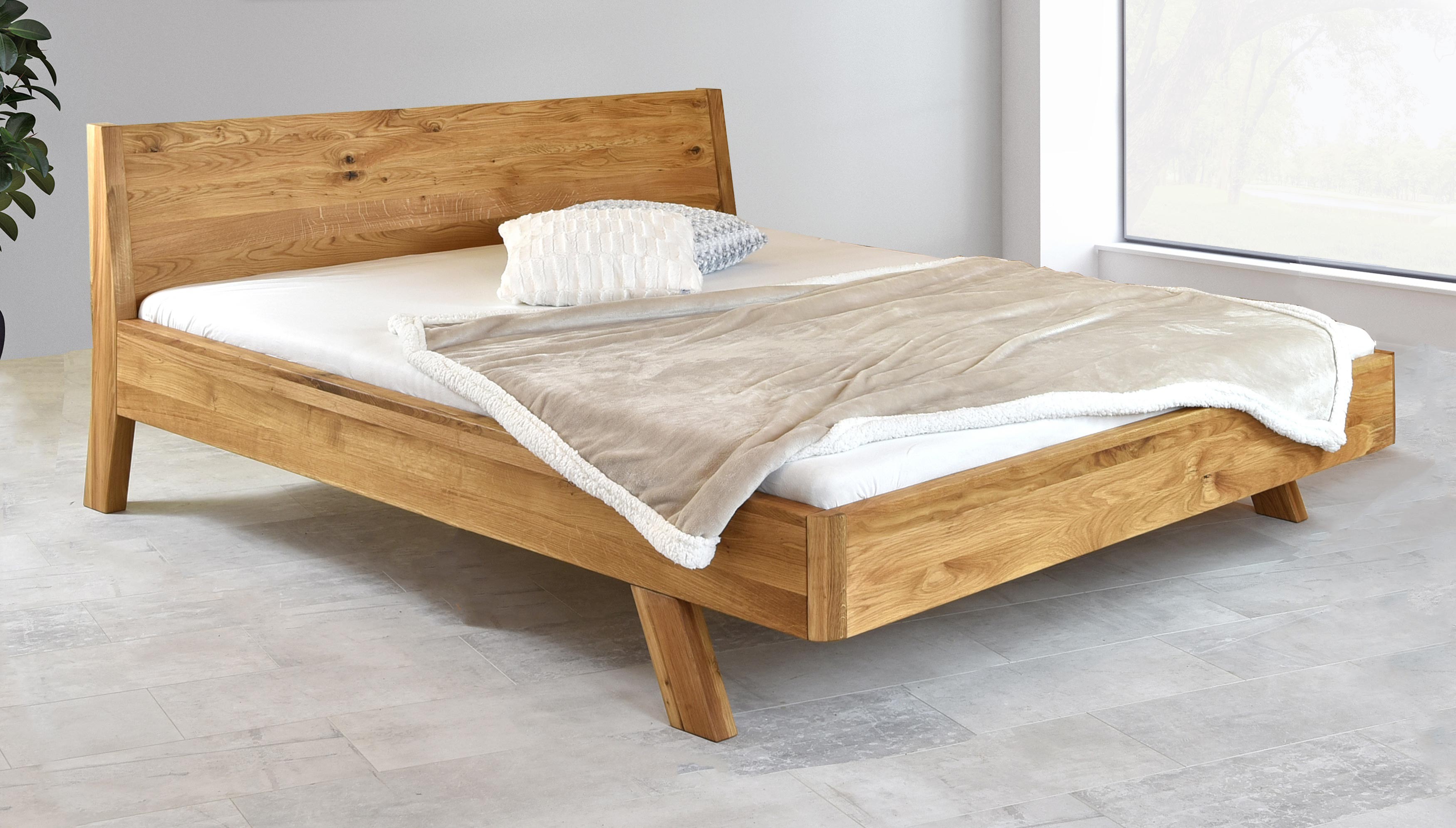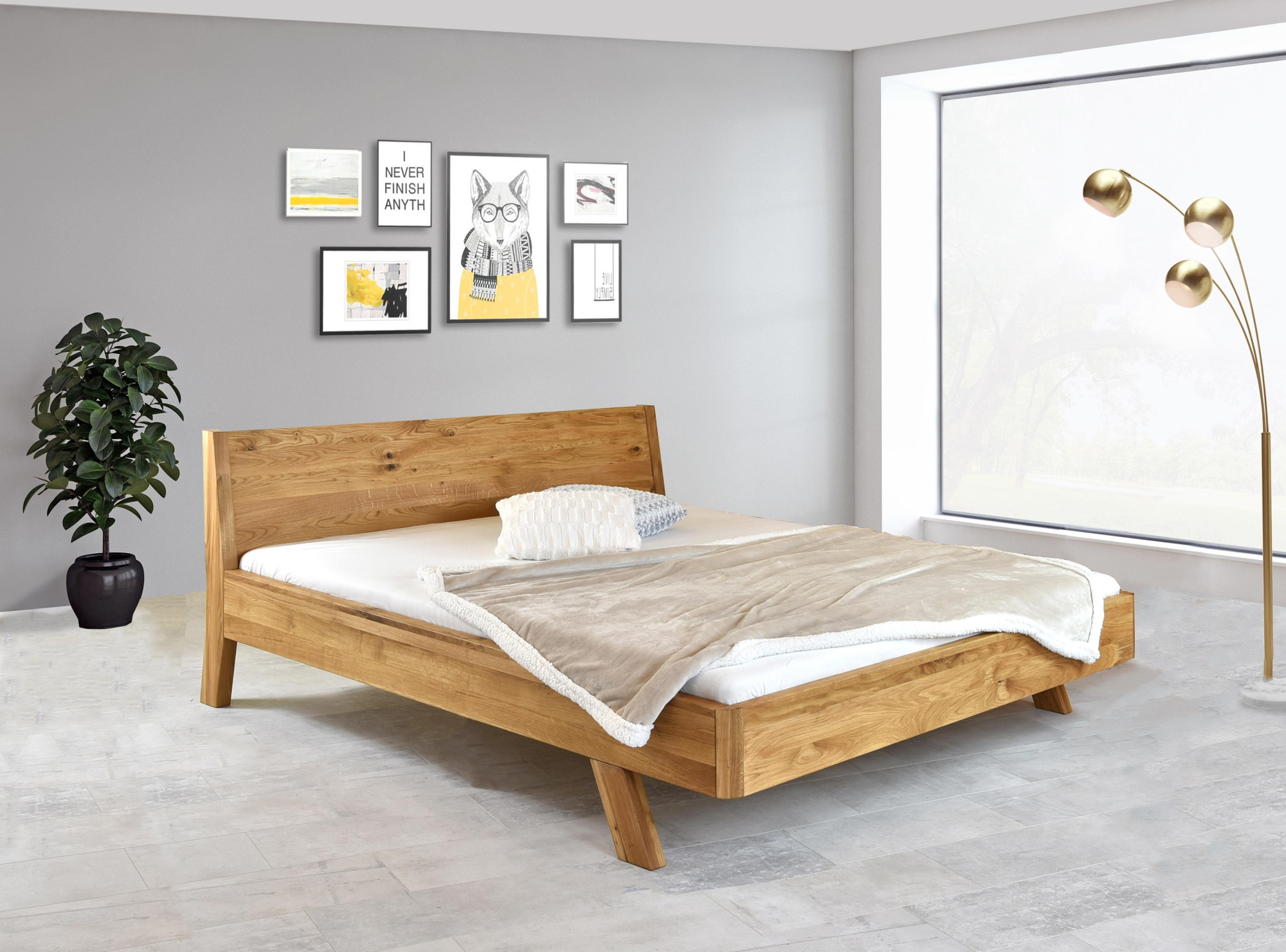 Eiche Massivholz-Bett 160 x 200 cm, Marina - Holzlattenrost gratis