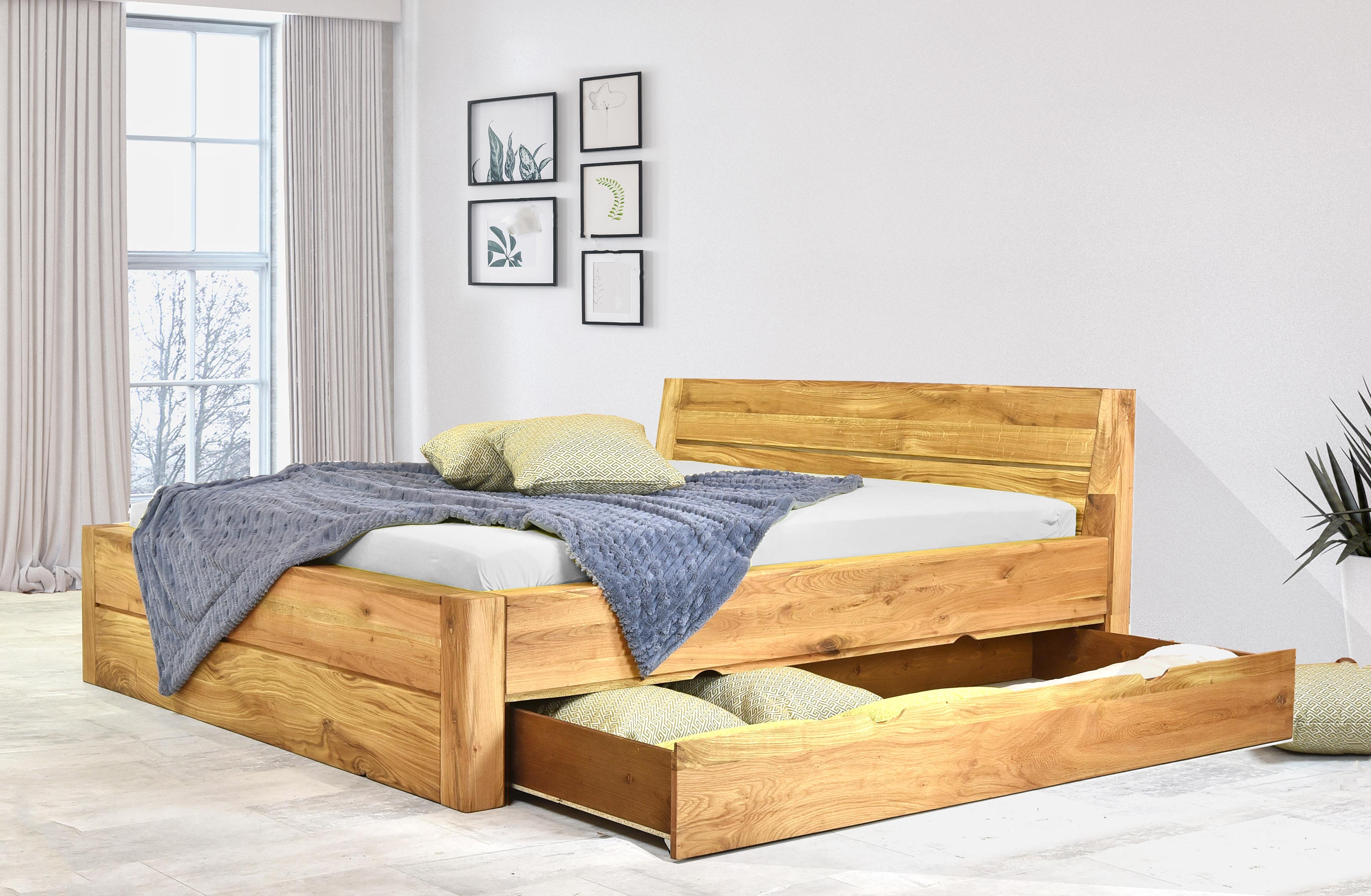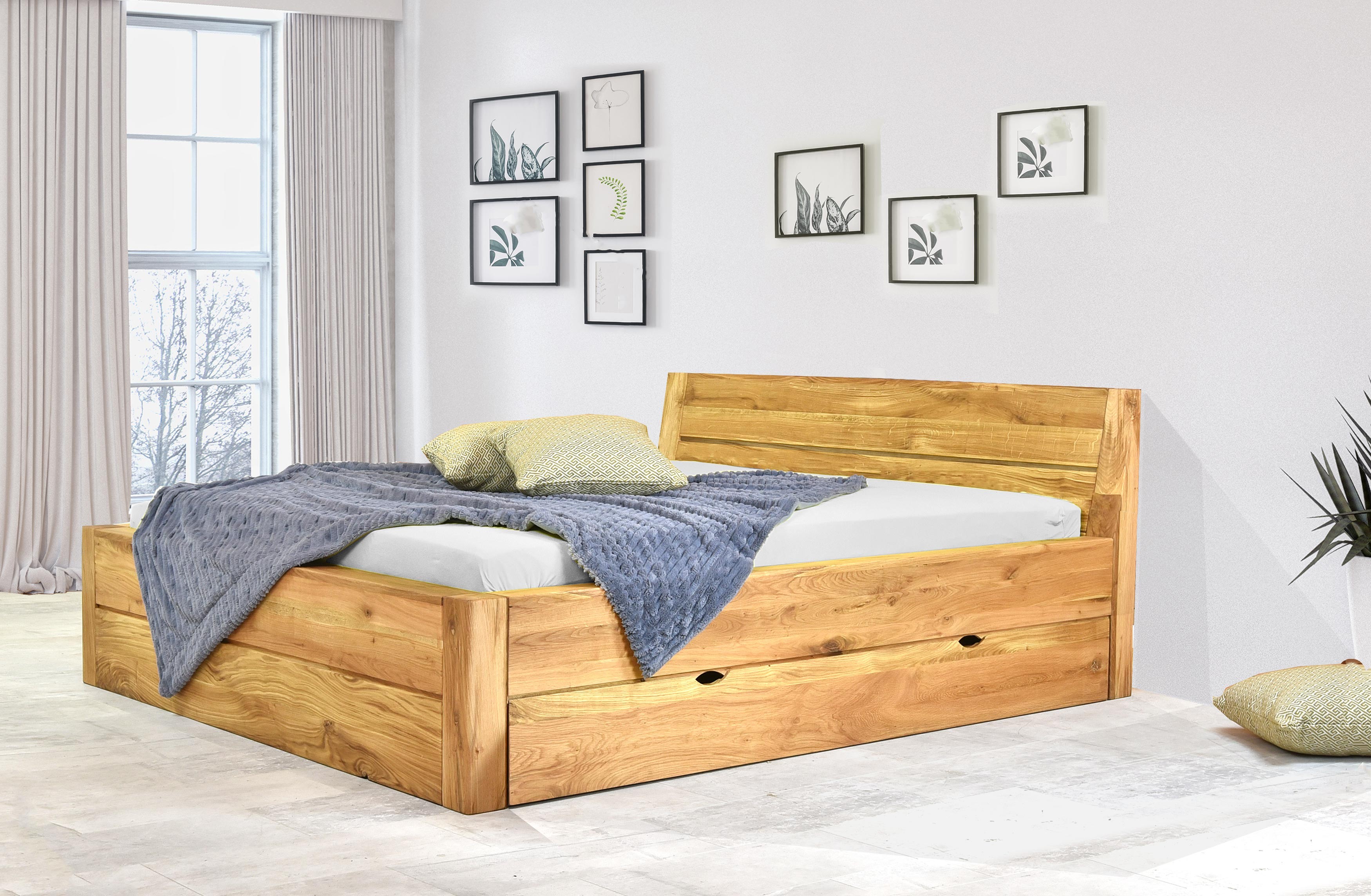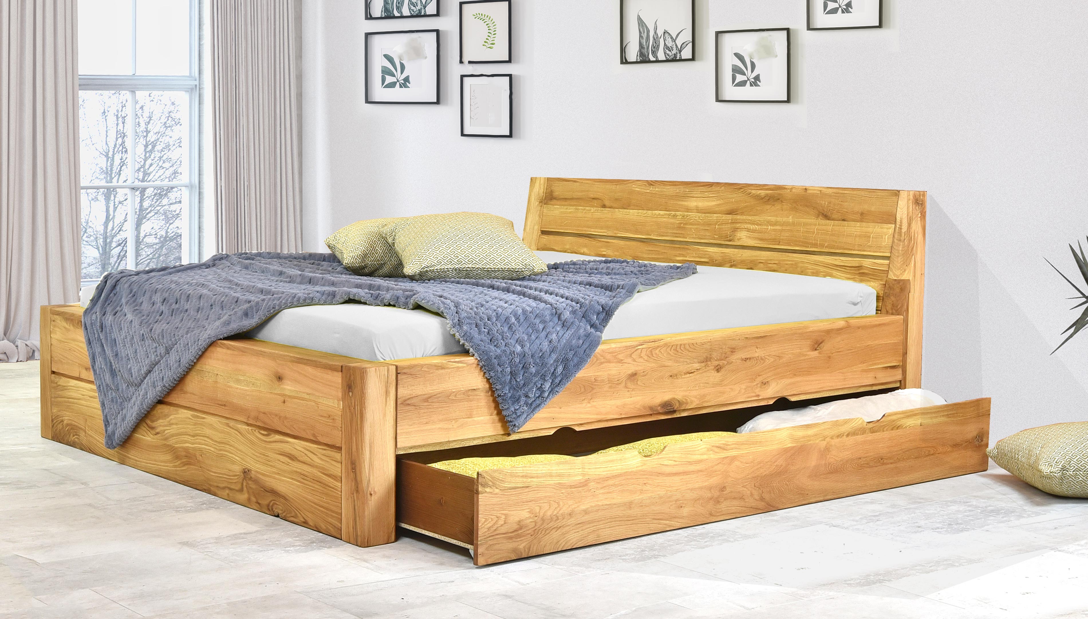 Massivholzbett Eiche 160x200 cm mit Stauraum und Lattenrost
