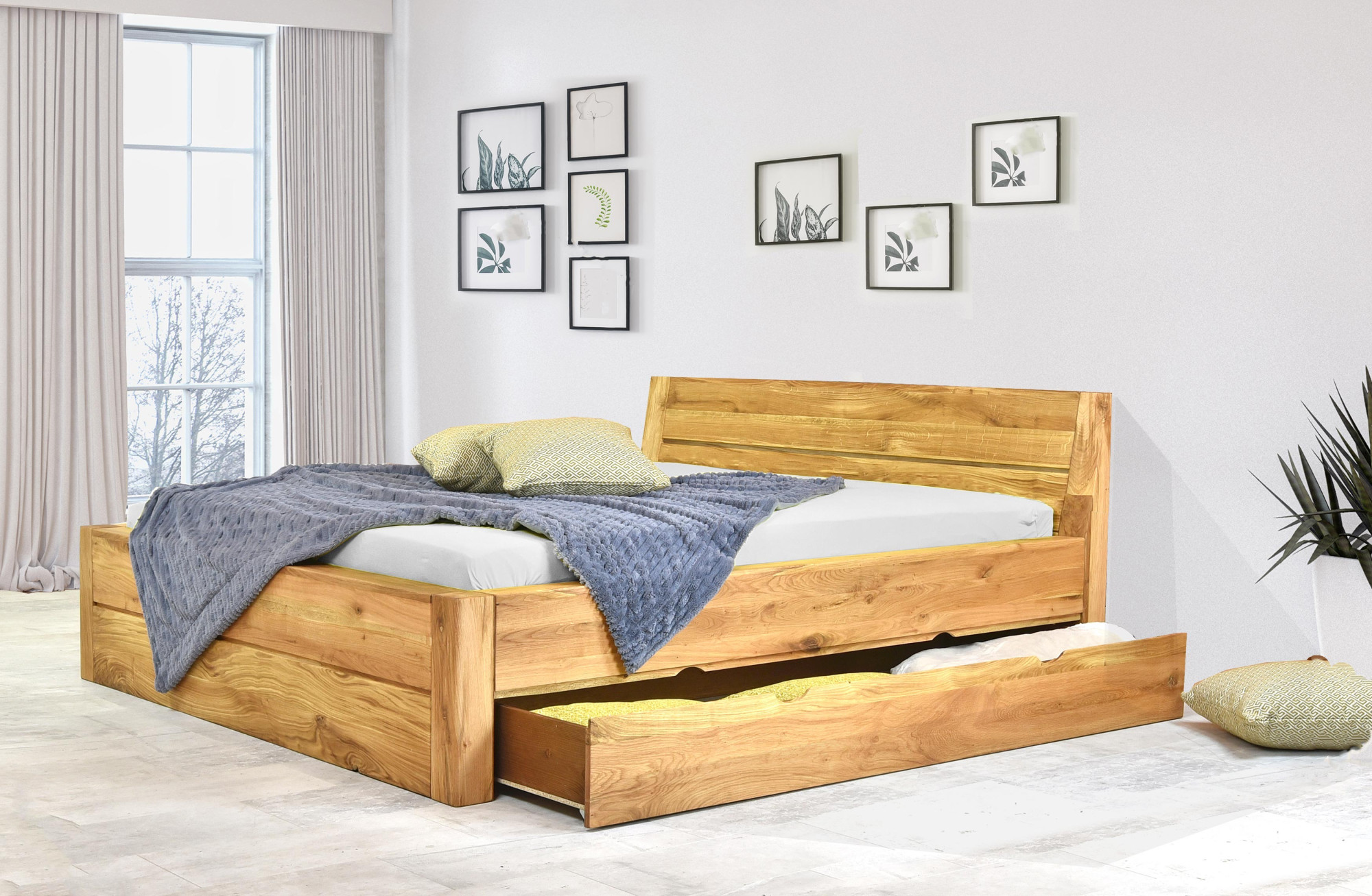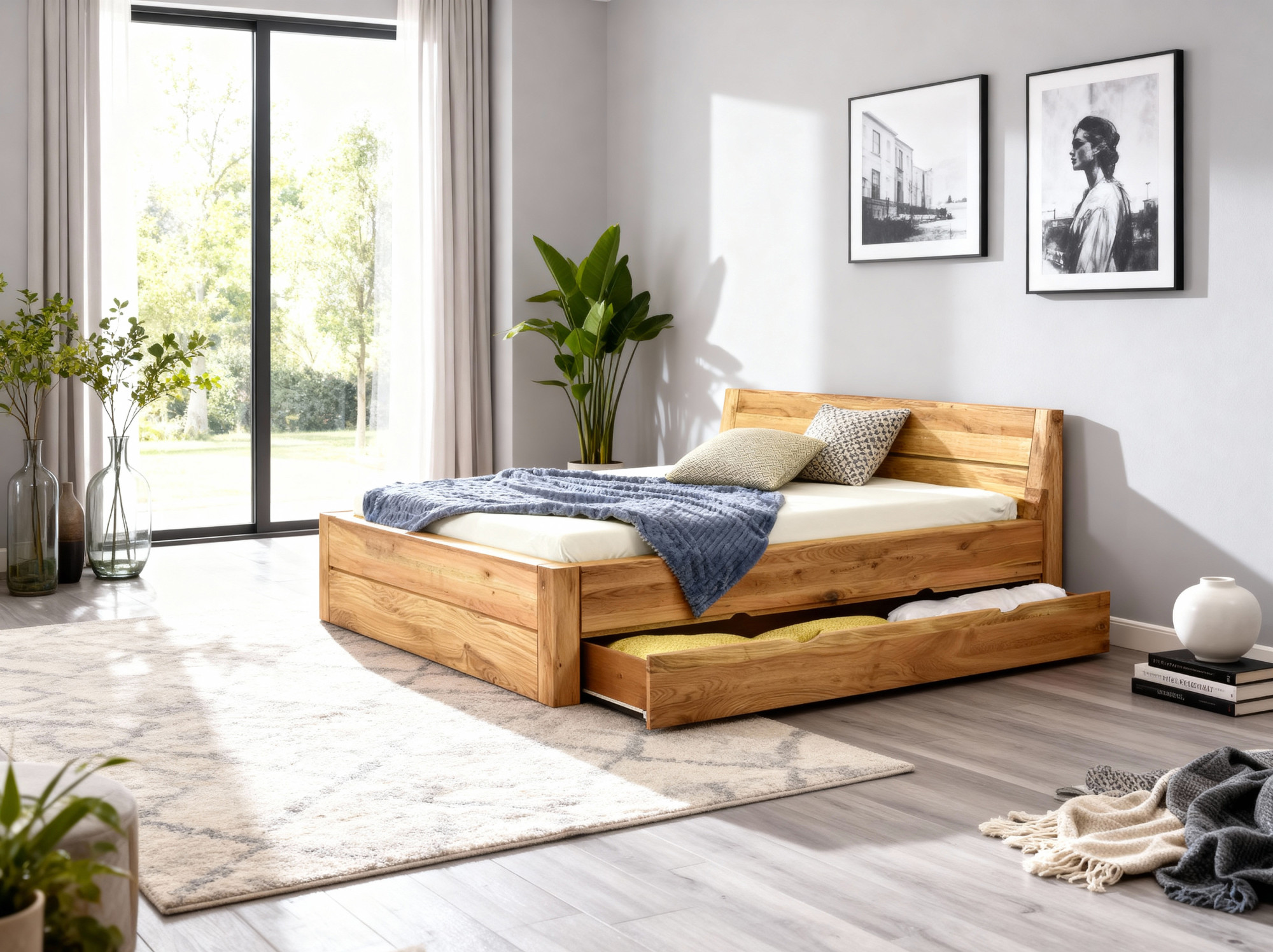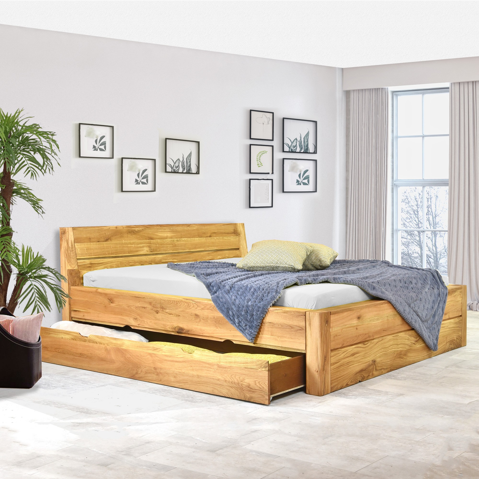 Massivholzbett Eiche 160x200 cm mit Stauraum und Lattenrost
