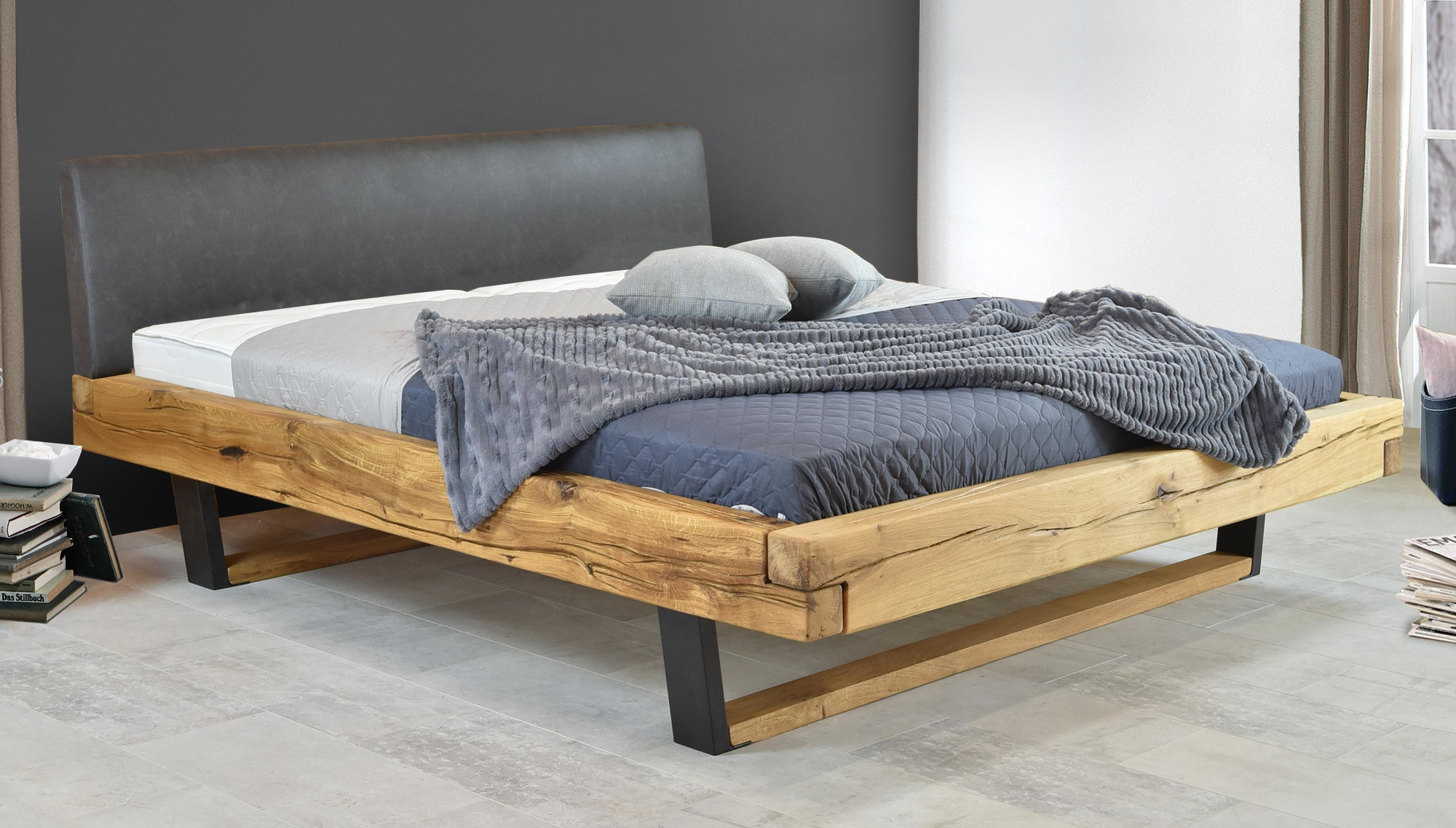 Moderne massive Eichenbett - Metallfüße, Laura 180 x 200 cm