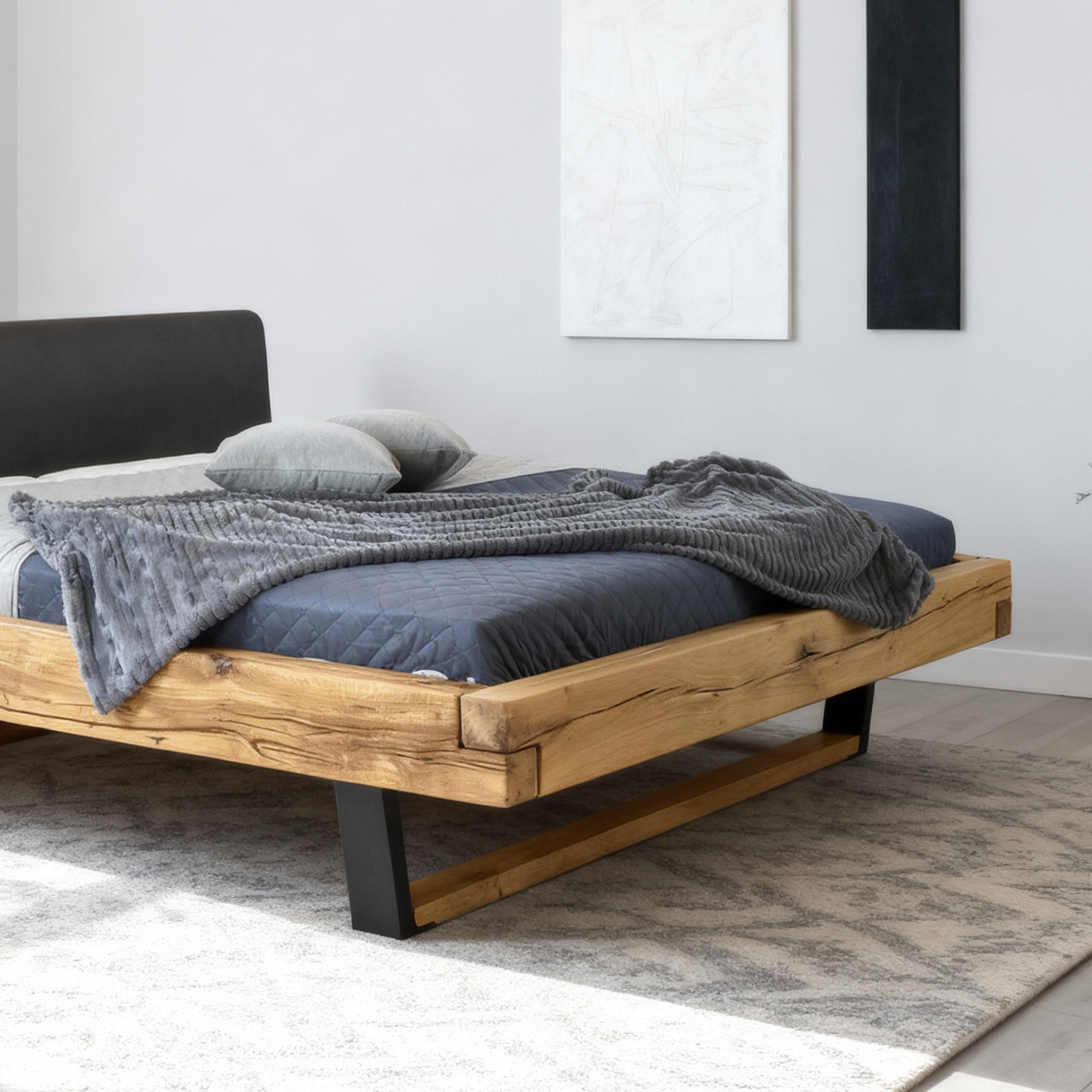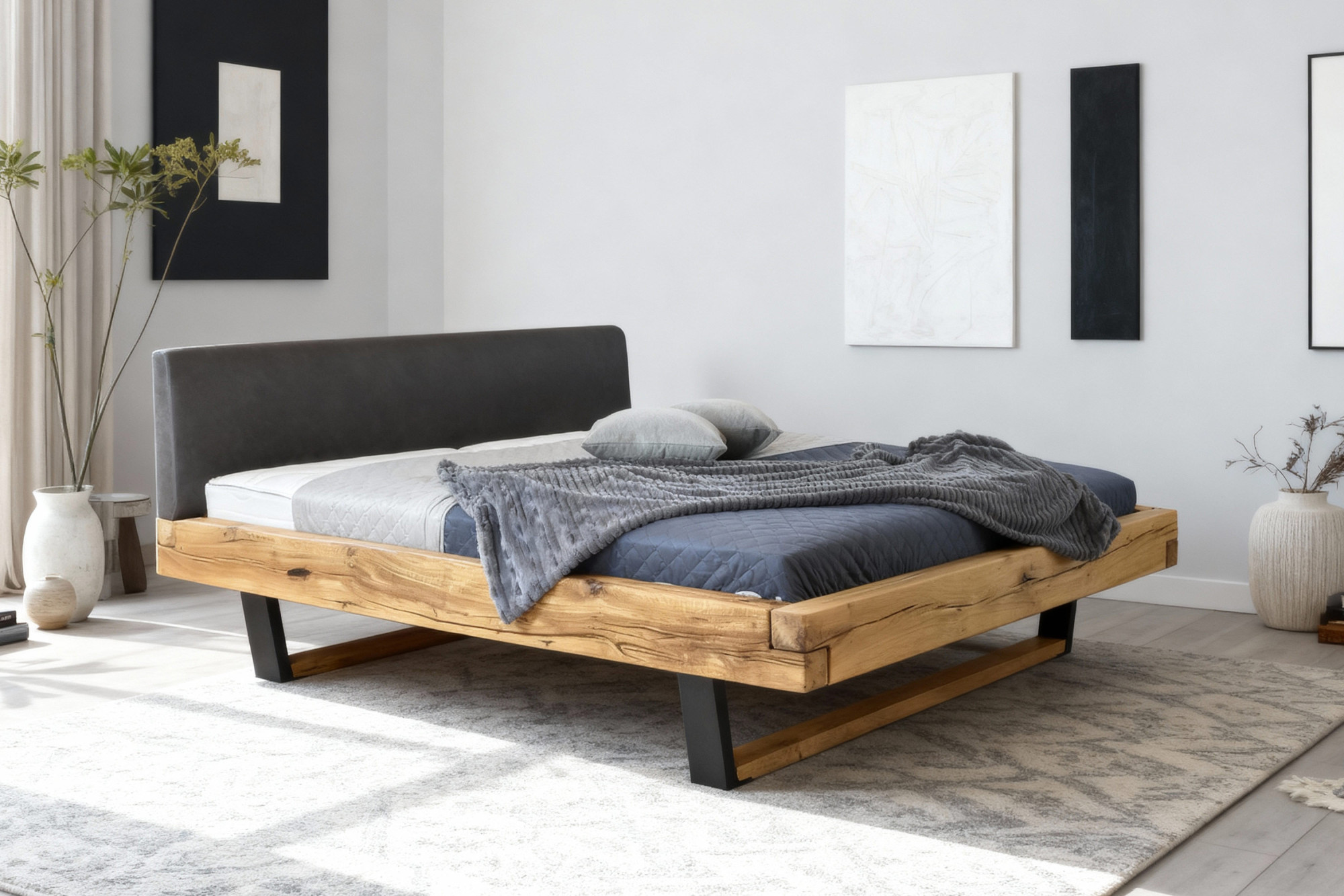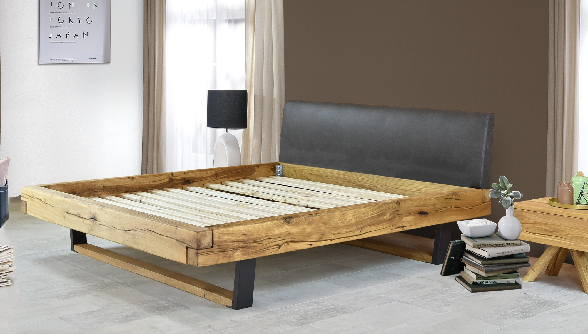 Massives Eichenbett Laura 180x200 cm mit schwarzen