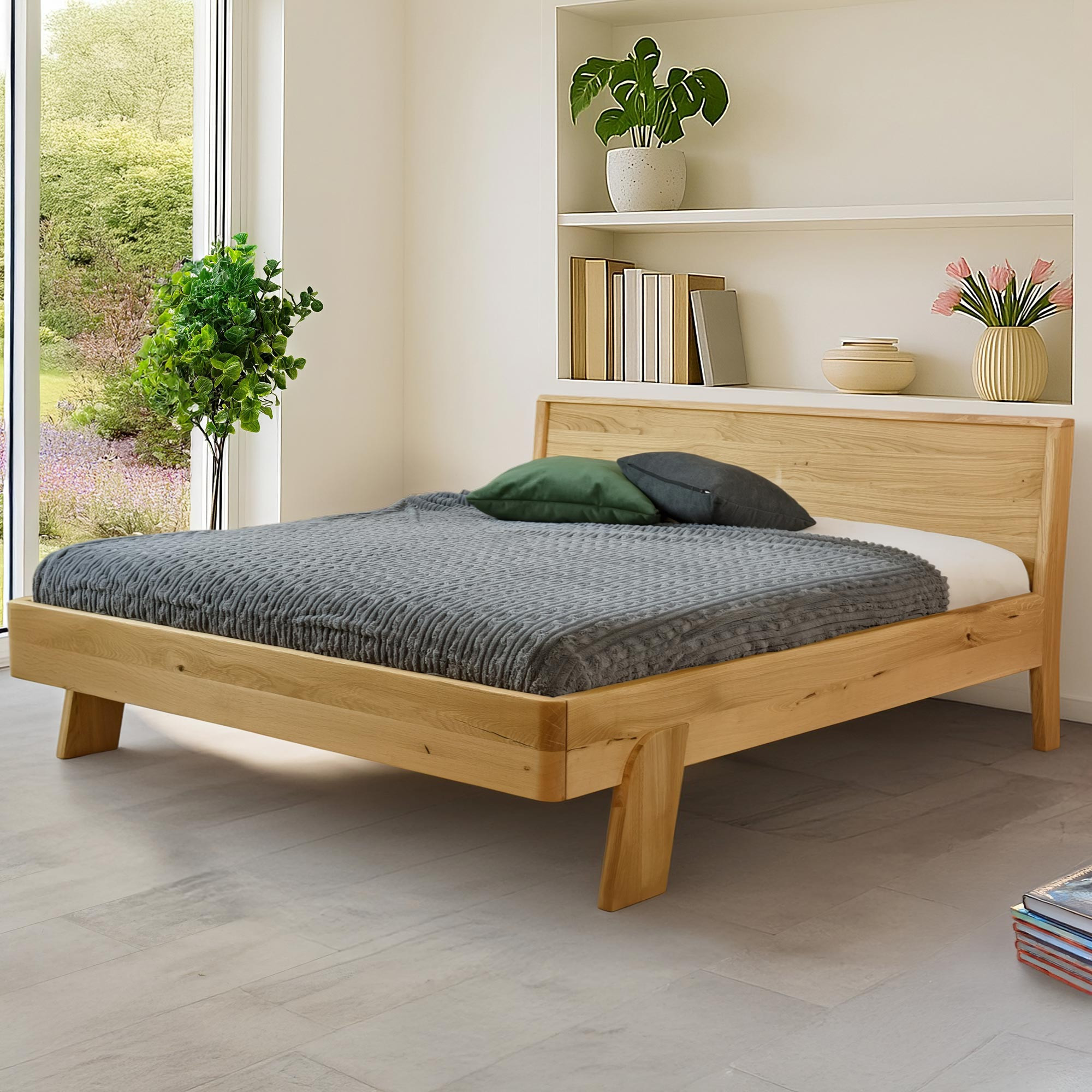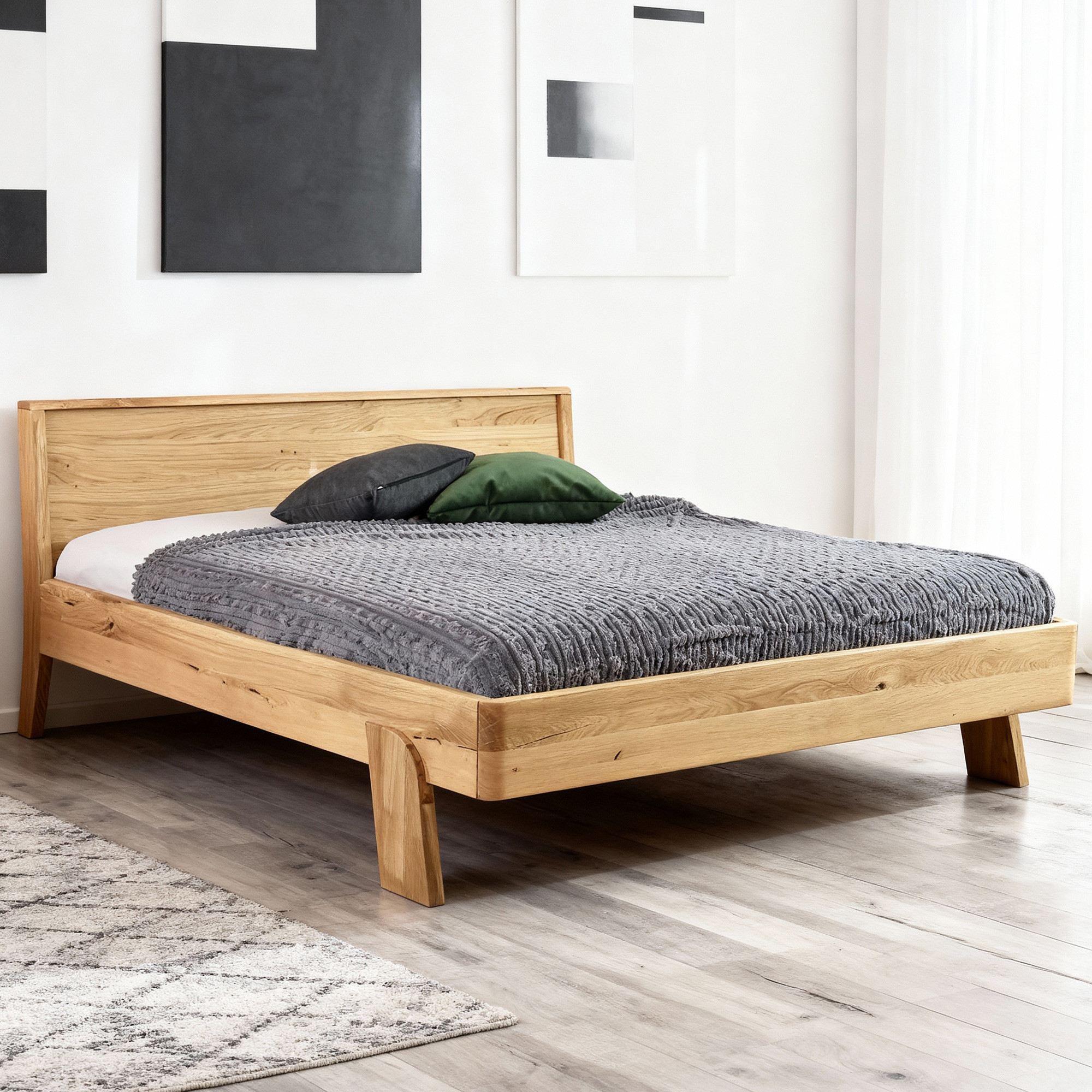 Die robuste Konstruktion besteht aus einem stabilen Eichenholzrahmen und einem inneren Fichtenholzrahmen, auf den jeder beliebige Lattenrost eingesetzt werden kann. Die Oberfläche ist mit naturöl behandelt, um die schöne Holzmaserung zu betonen und die Langlebigkeit zu erhöhen. Mit einer Materialstärke von bis zu 4 cm und einer Tragfähigkeit von bis zu 220 kg bietet das Bett hohe Stabilität. Zudem lässt sich das Modell hervorragend mit anderen Möbelstücken aus Eichenholz kombinieren.