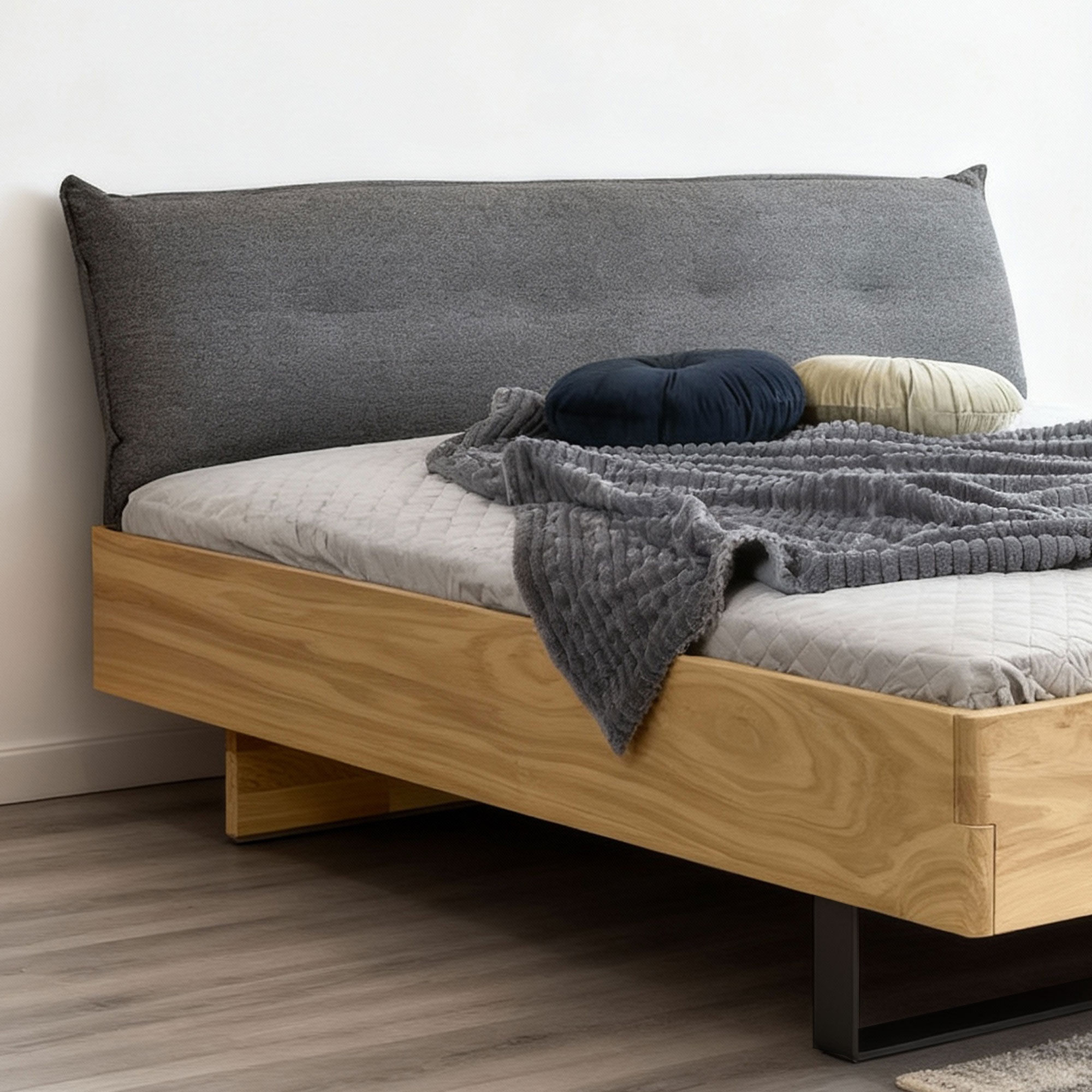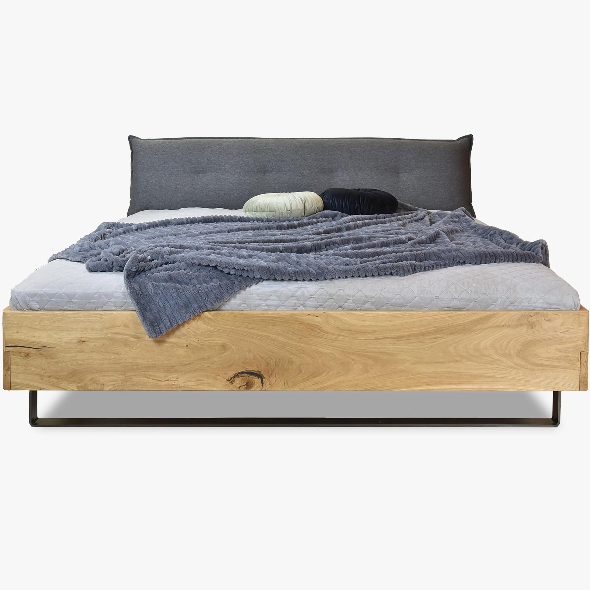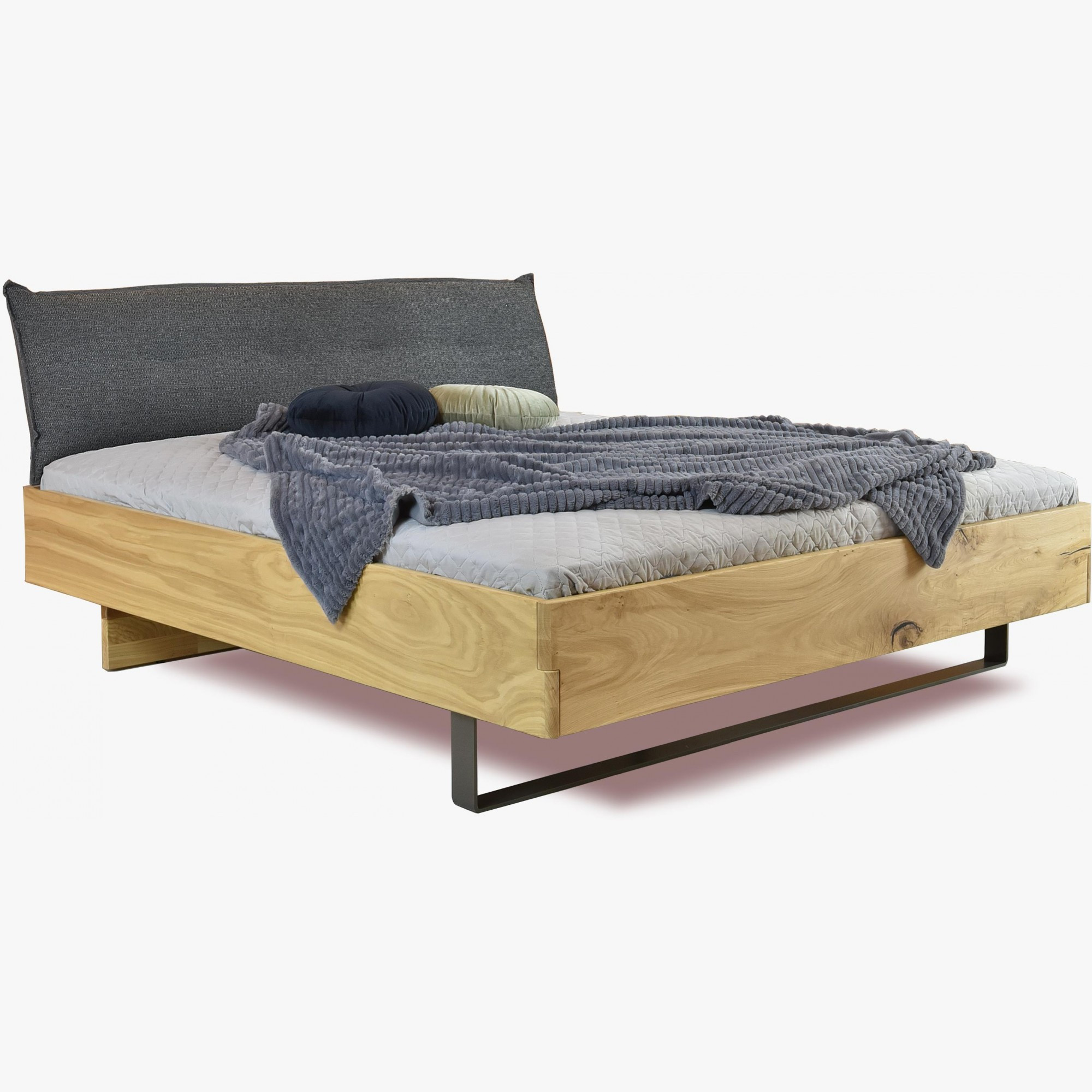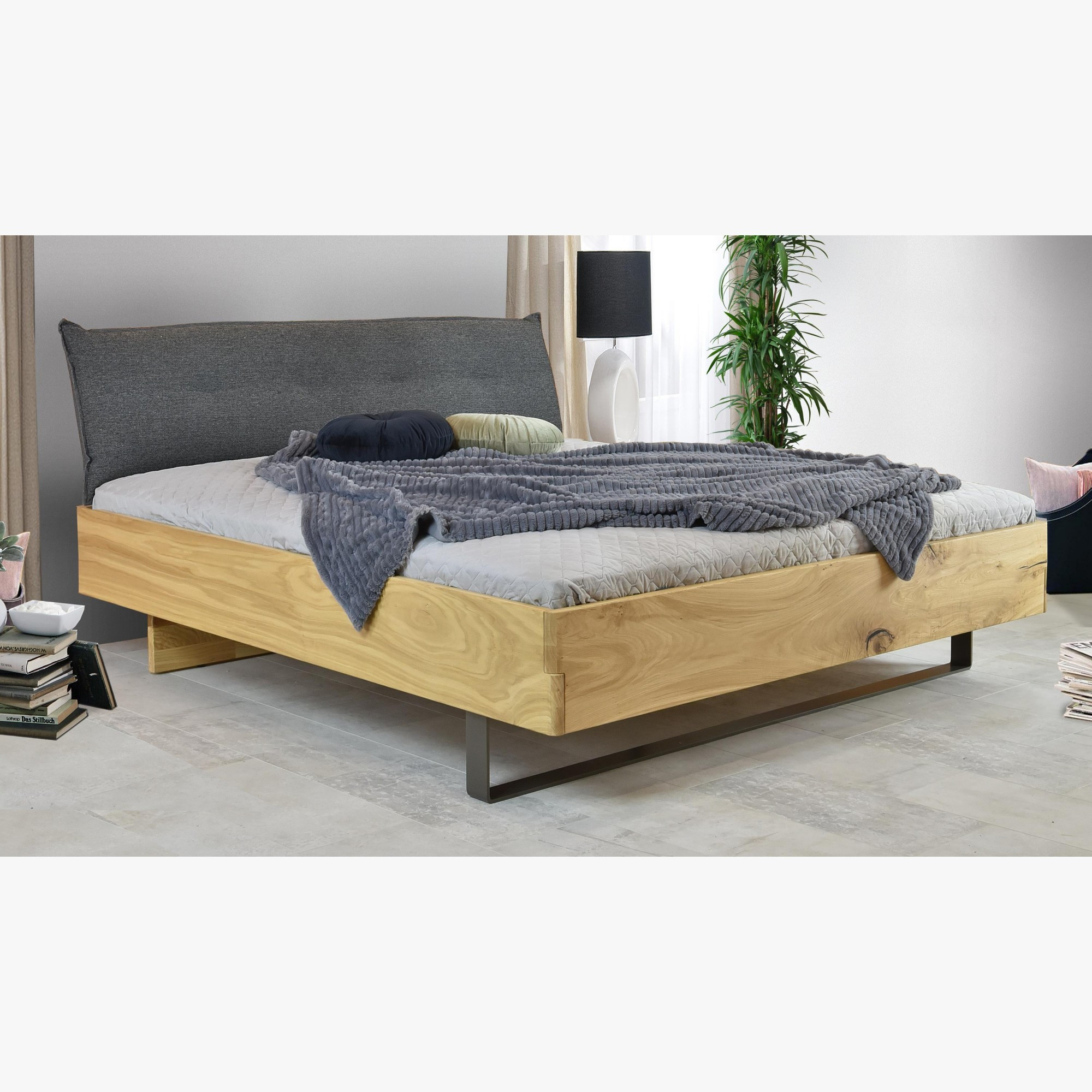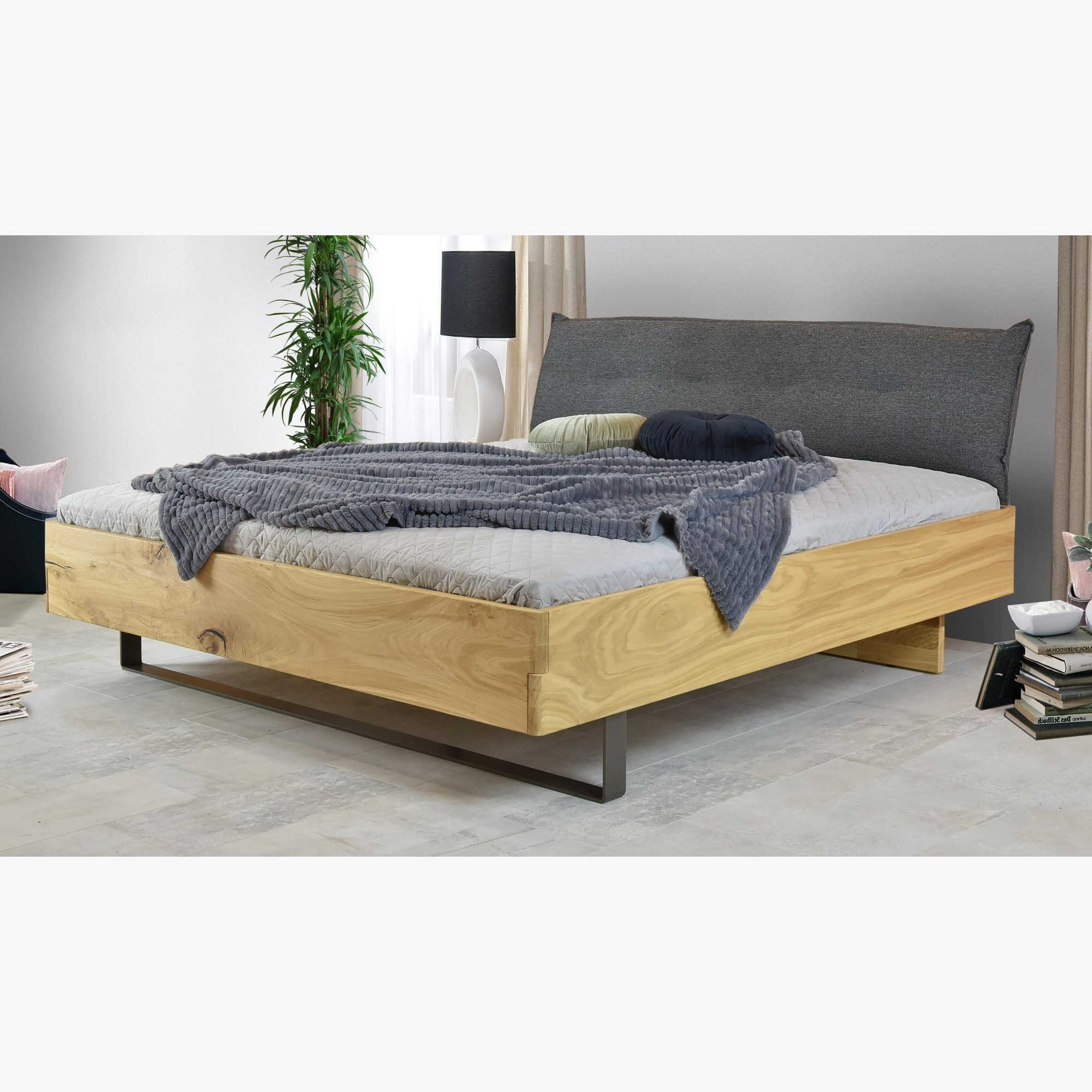 Massivholz Eichenbett 180x200 mit gepolstertem Kopfteil