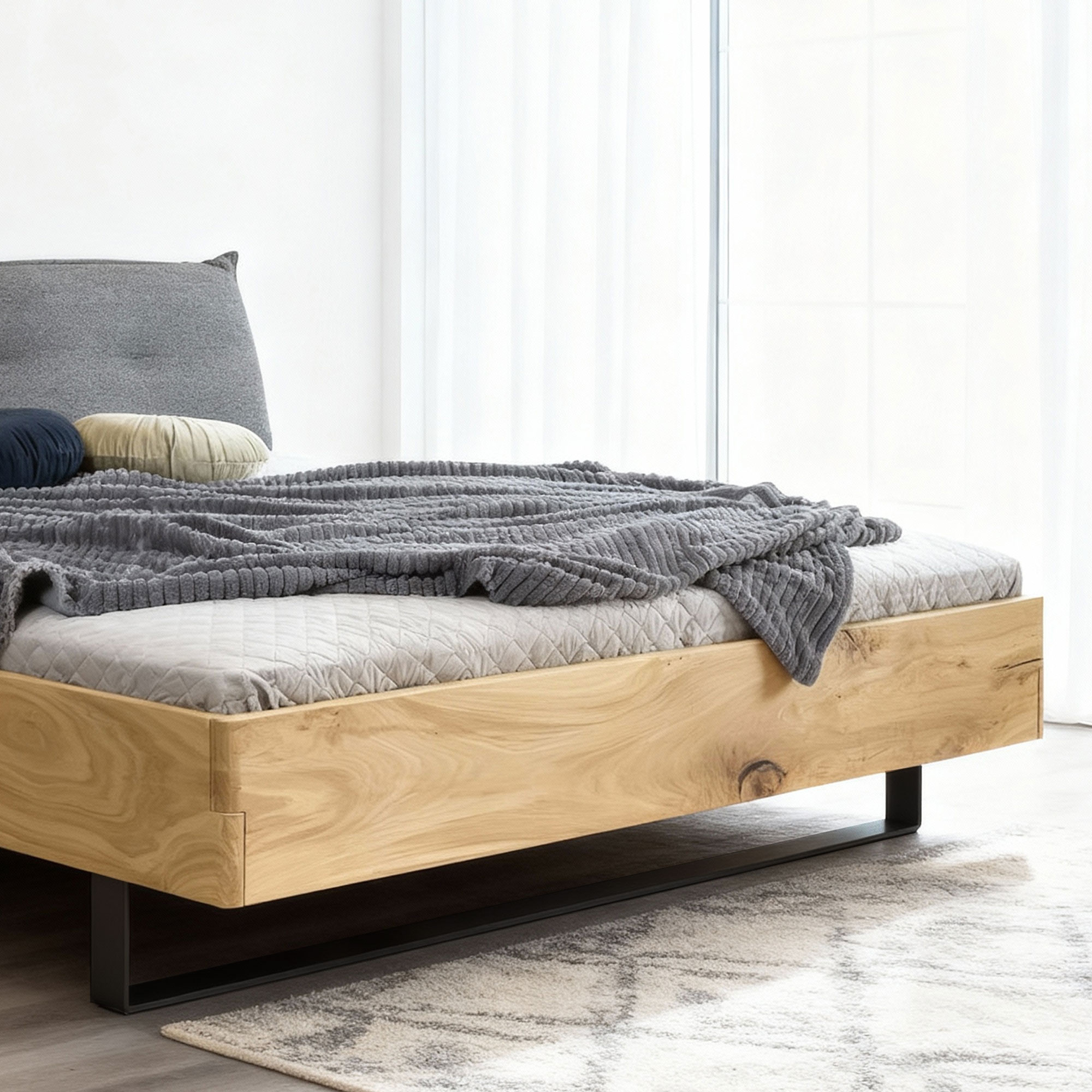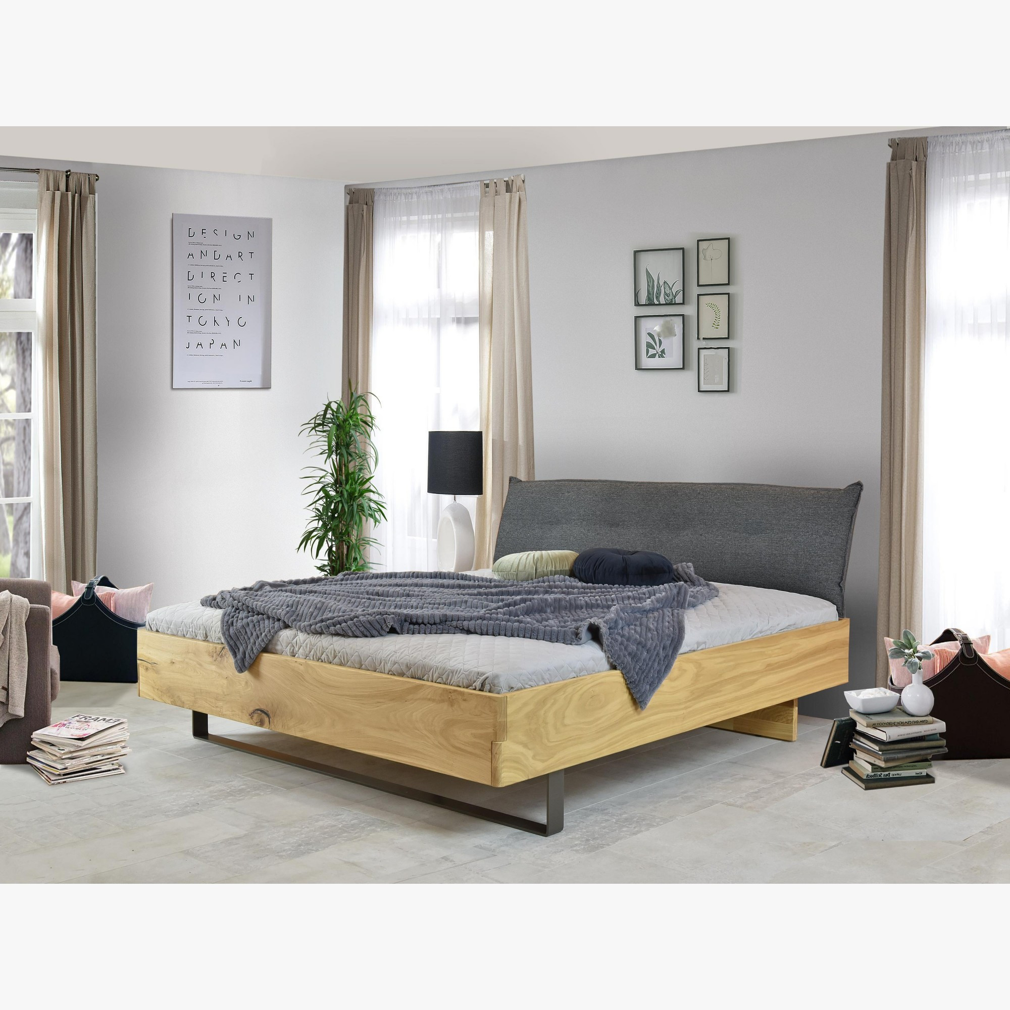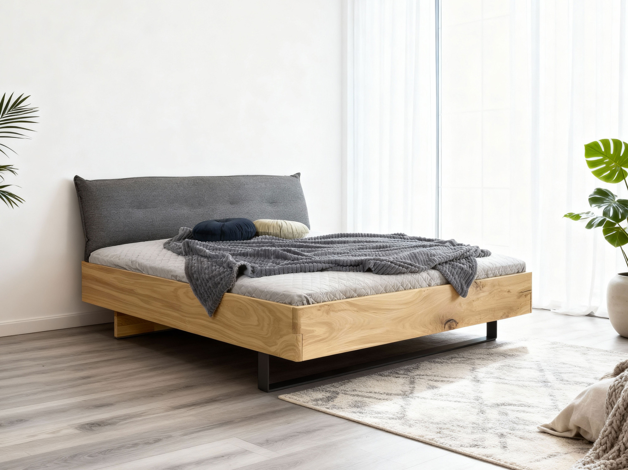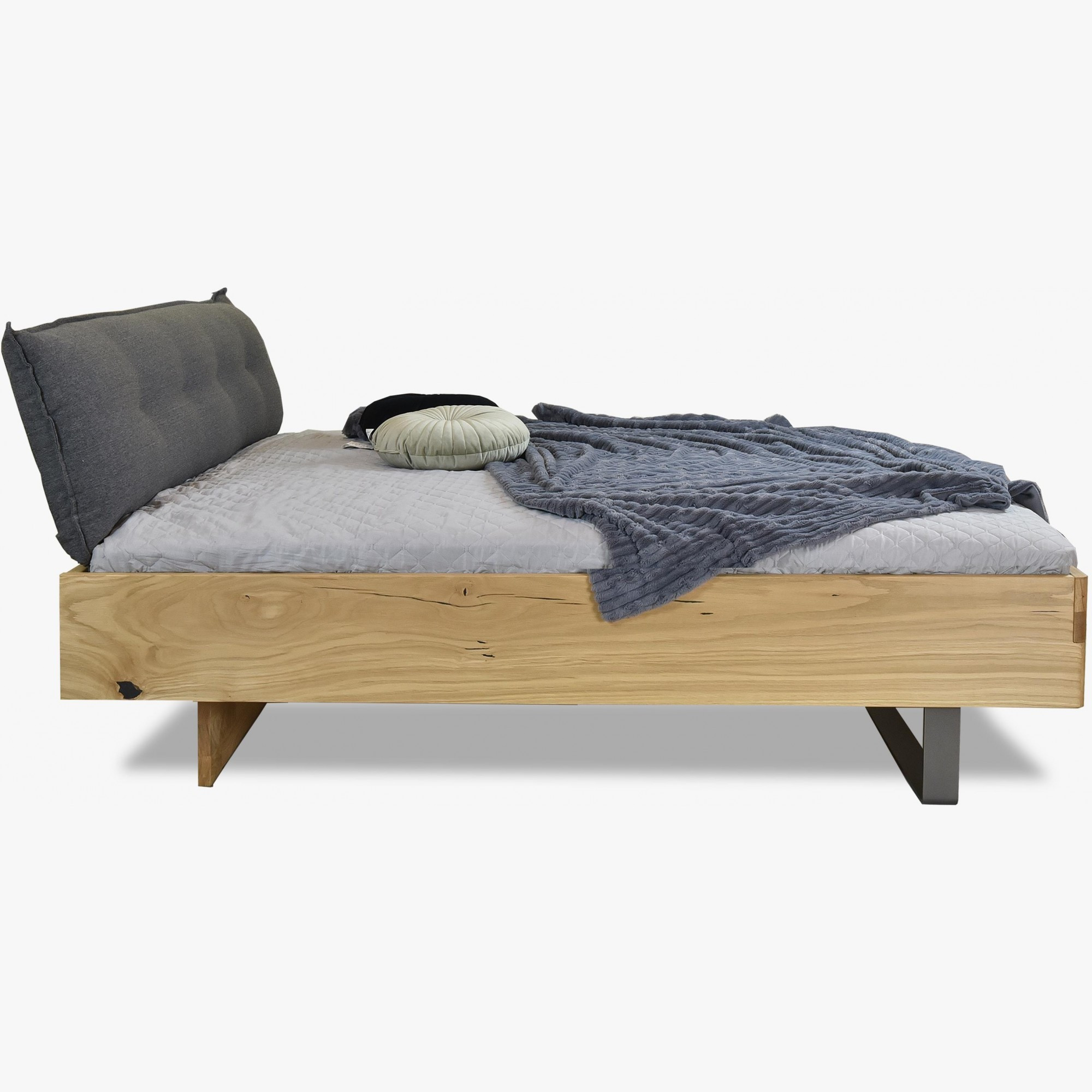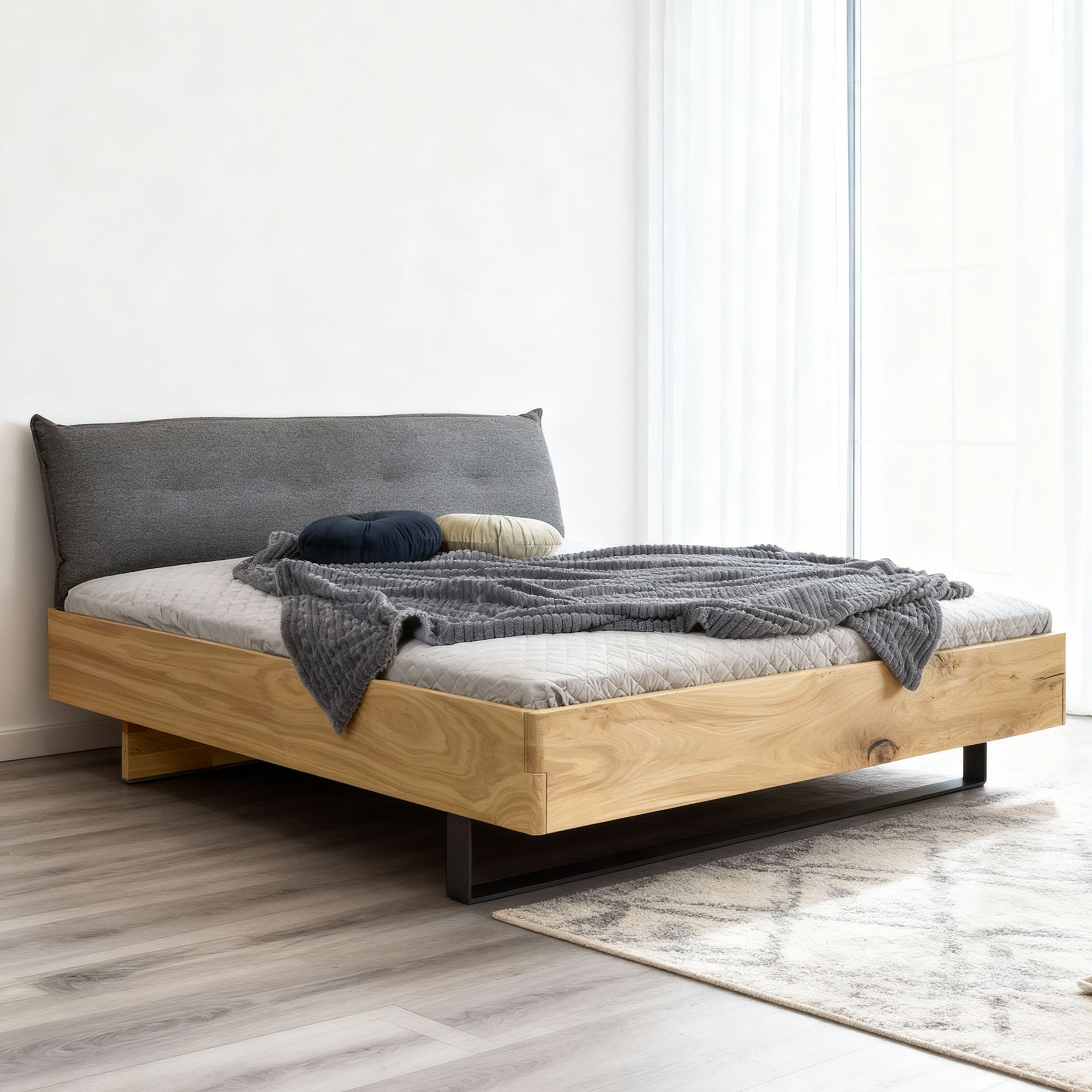Massivholz Eichenbett 180x200 mit gepolstertem Kopfteil