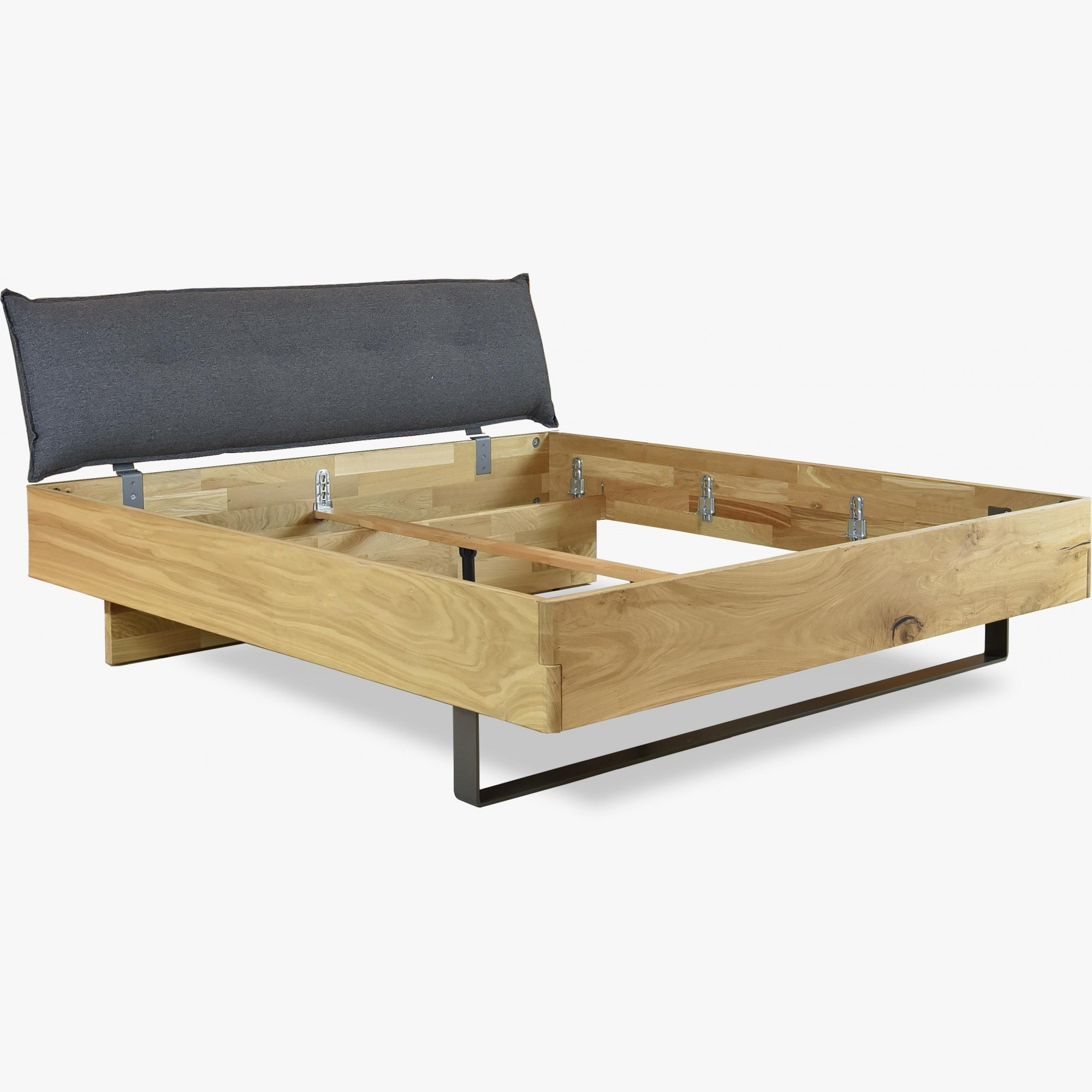 Durch seine ergonomische Neigung bietet es Ihrem Körper hohen Komfort, sodass Sie den Abend entspannt genießen können. Das Kopfteil ist mit Metallhaltern am Bett befestigt, was seine Festigkeit und Druckbeständigkeit vervielfacht. Das Toledo-Bett aus massivem Holz wird zum Blickfang und zugleich zum Kunstwerk Ihres Schlafzimmers. Es ist aus hochwertigem Eichenmassivholz gefertigt, das auf der sichtbaren Seite mit Eichenfurnier veredelt ist, was hohe Stabilität und eine perfekte einheitliche Optik garantiert. Die Matratzenhöhe kann mit den metallenen Haltern des Lattenrosts in drei Stufen reguliert werden. Das Bett wird ohne Lattenrost geliefert, optional können Sie gegen Aufpreis einen hochwertigen Lattenrost aus unserem Angebot dazu bestellen.