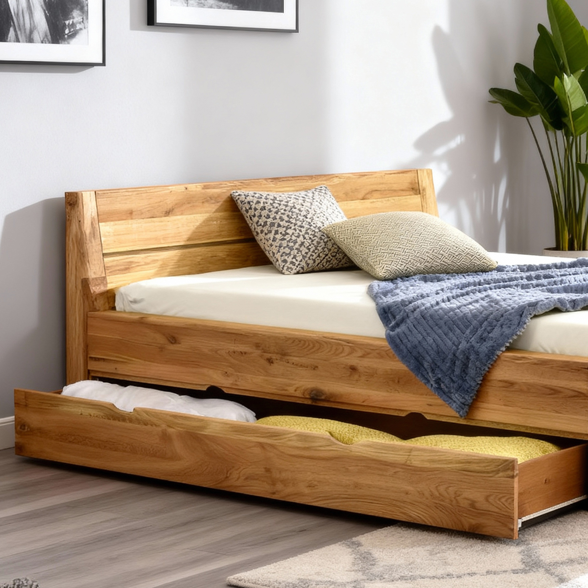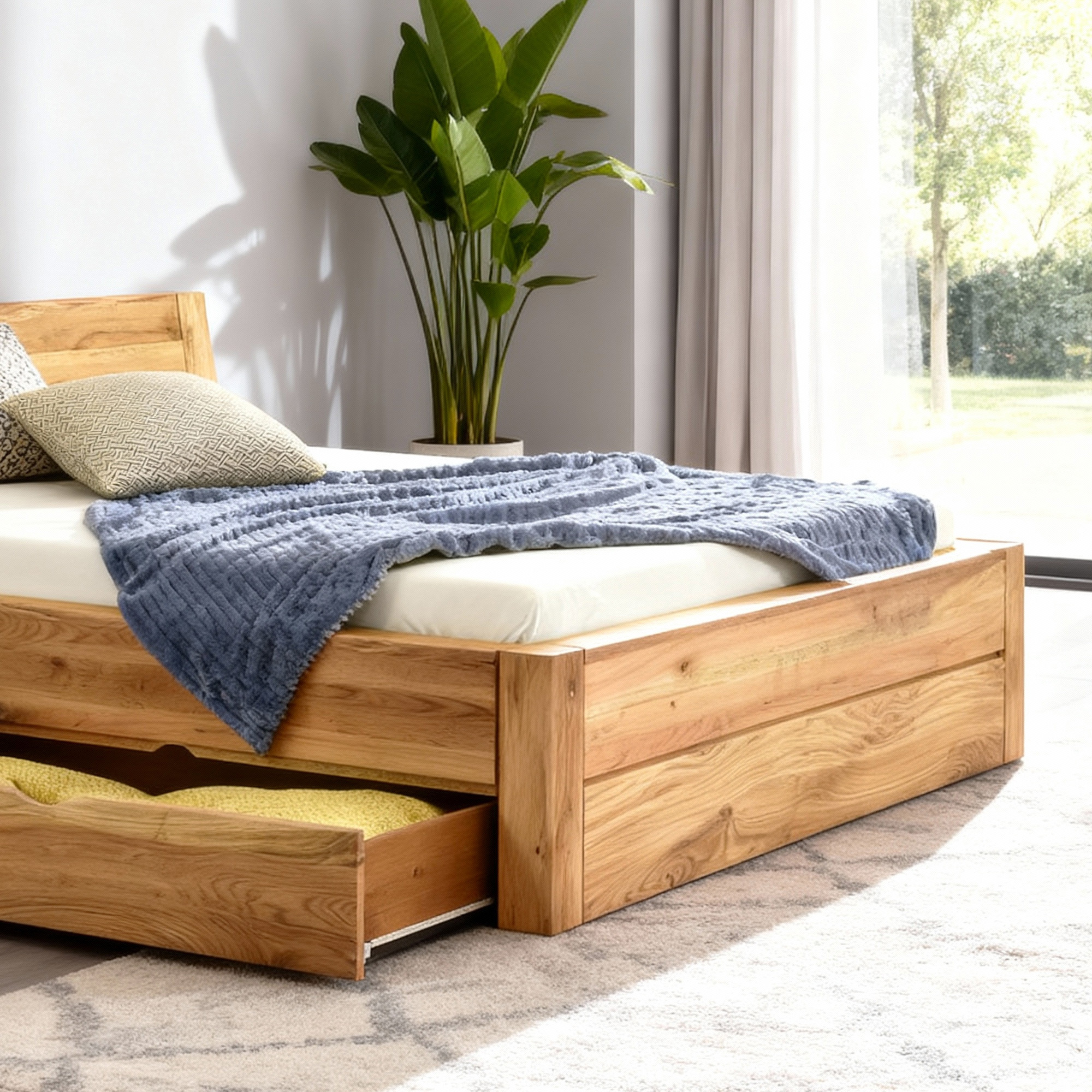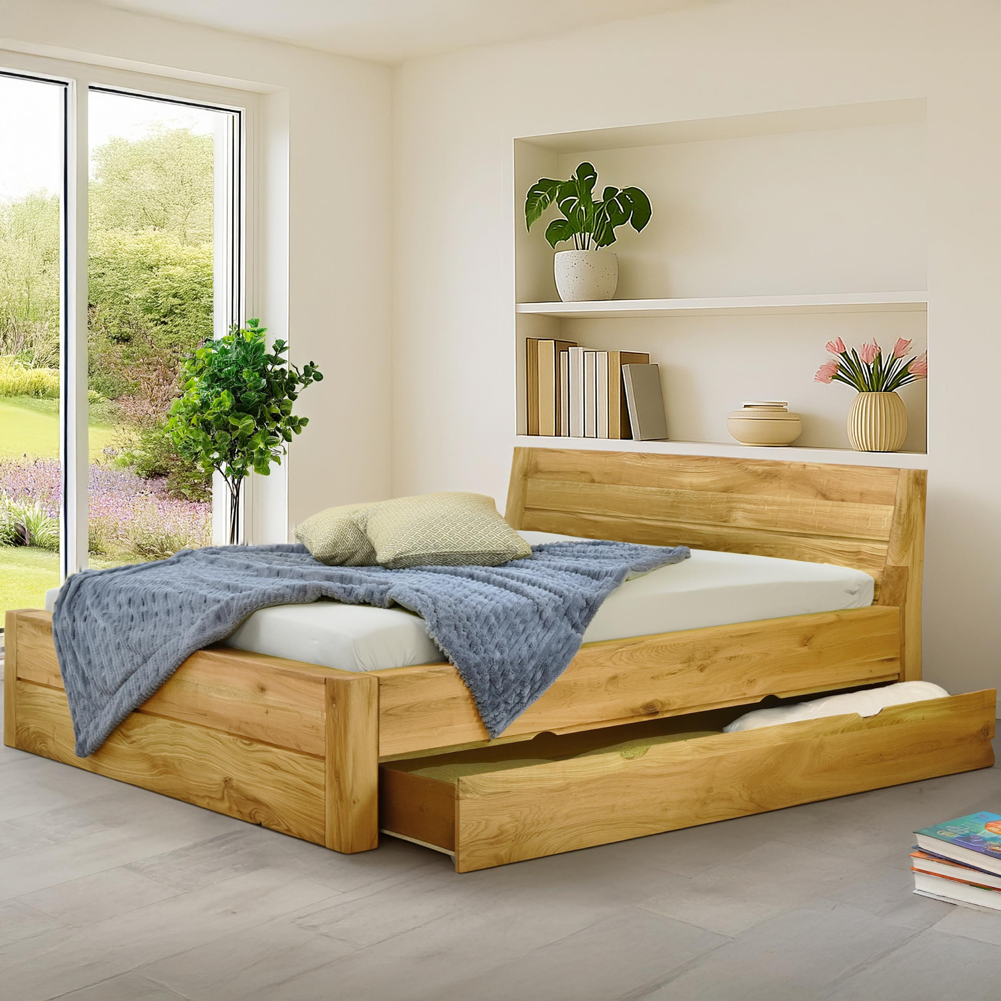 Massivholzbett Eiche mit Stauraum 160-180 cm Holzrahmen