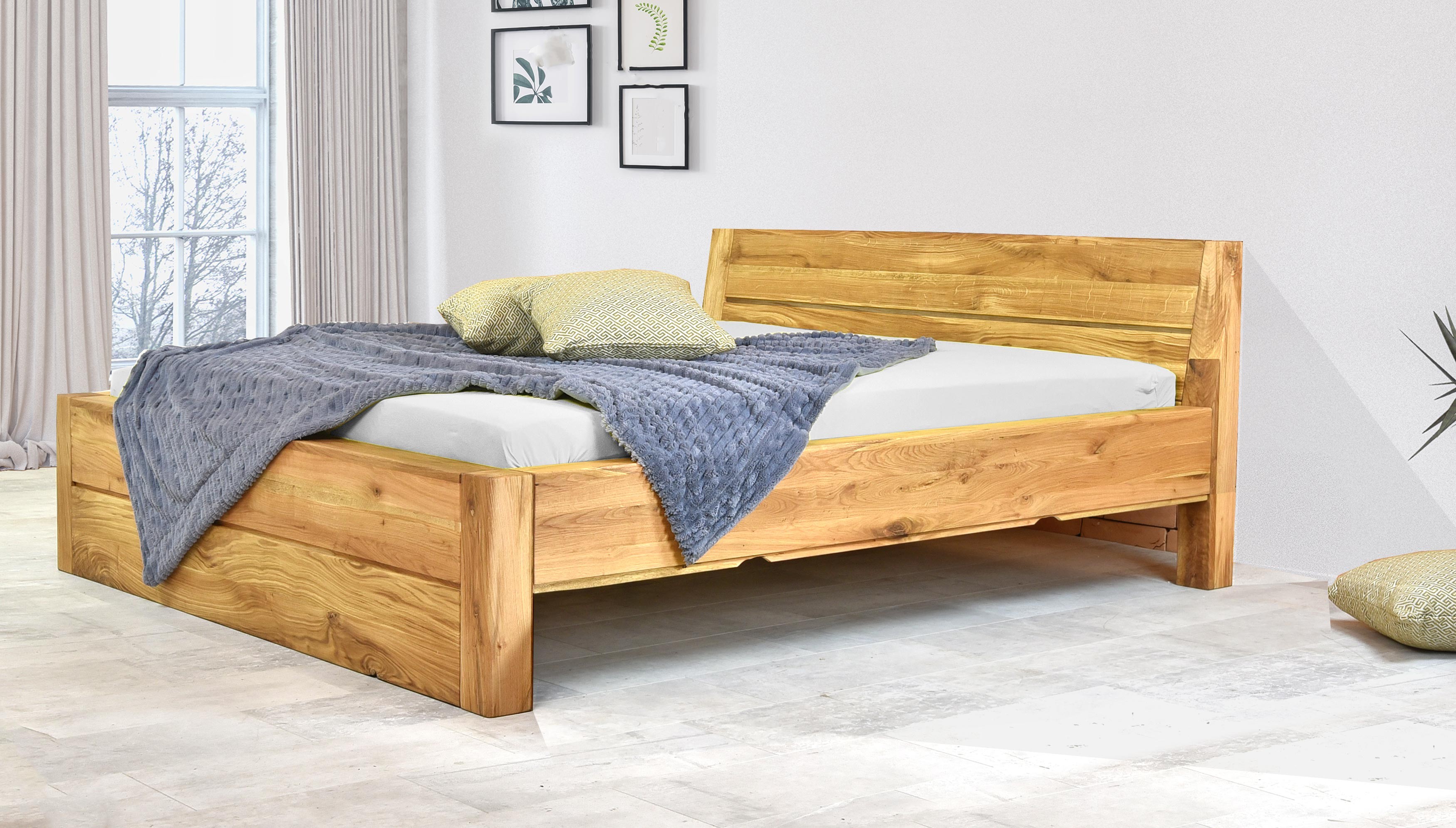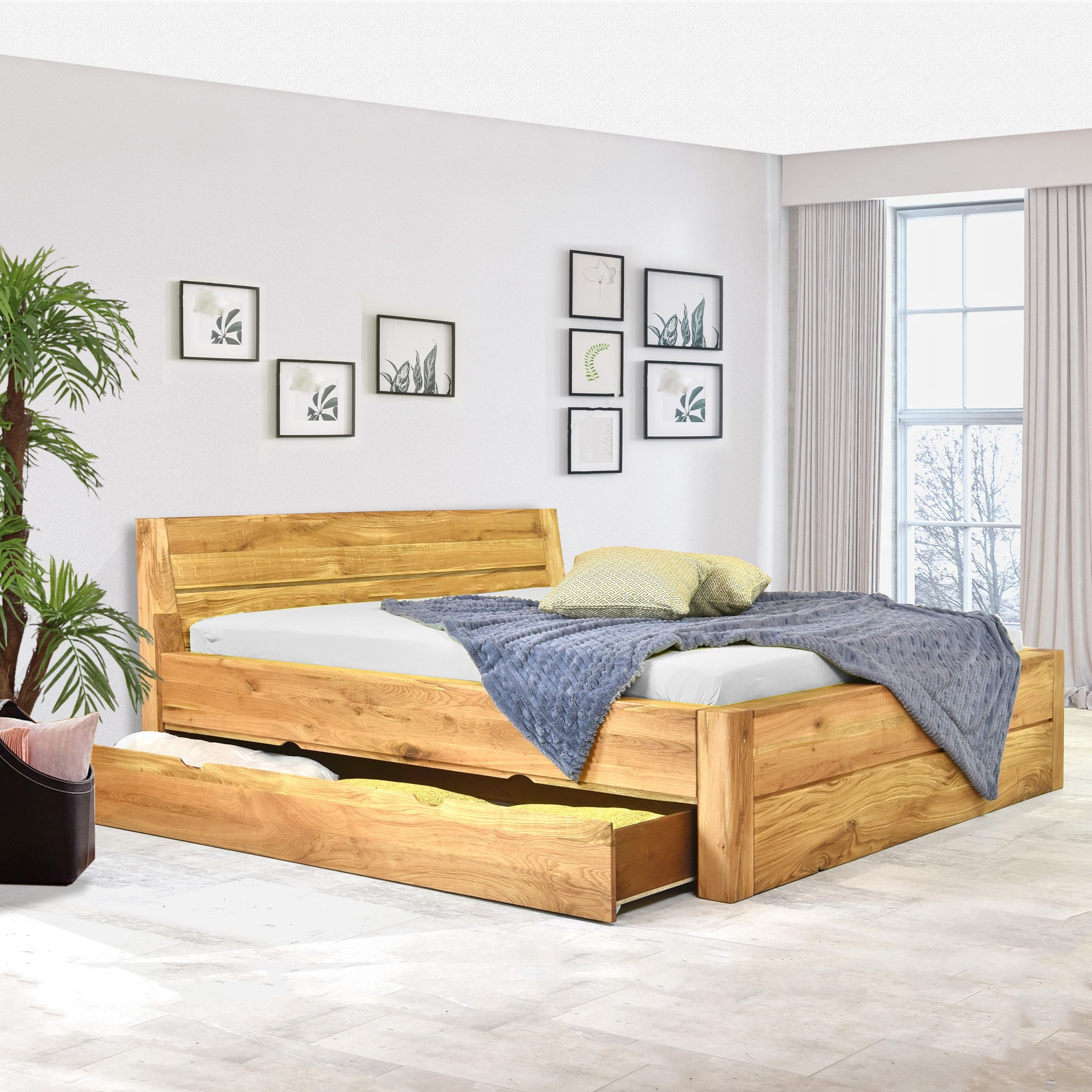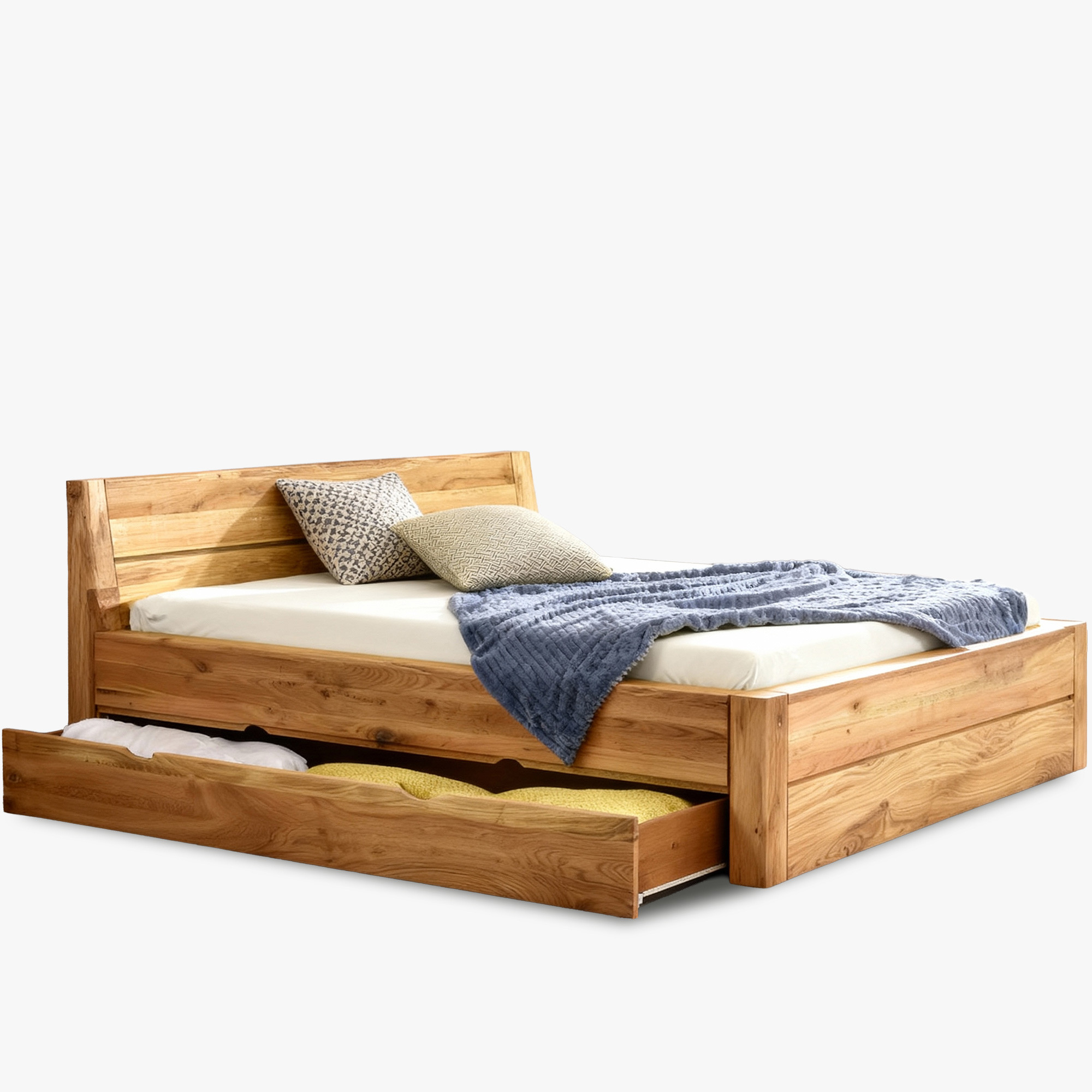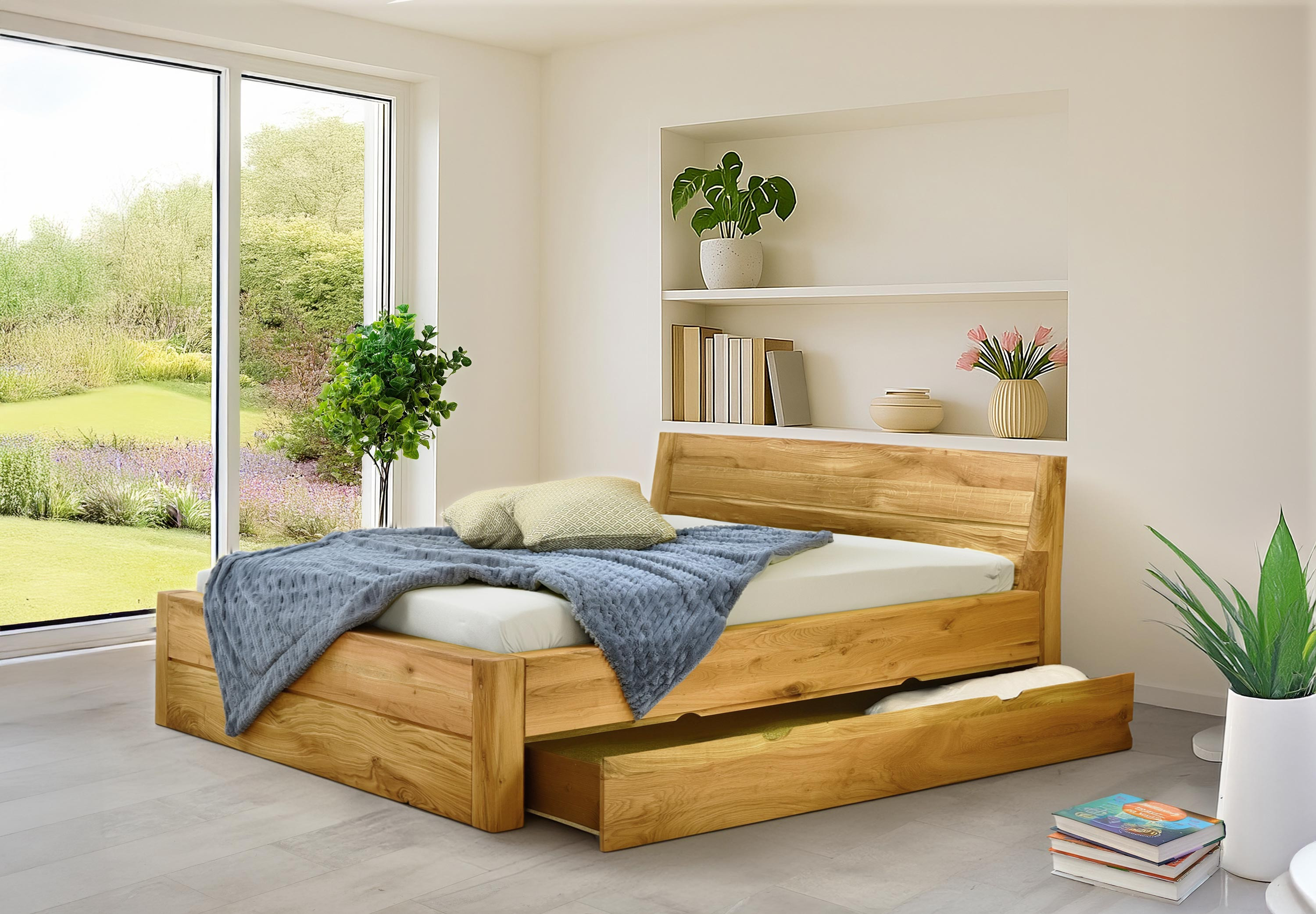 Massivholzbett Eiche mit Stauraum 160-180 cm Holzrahmen
