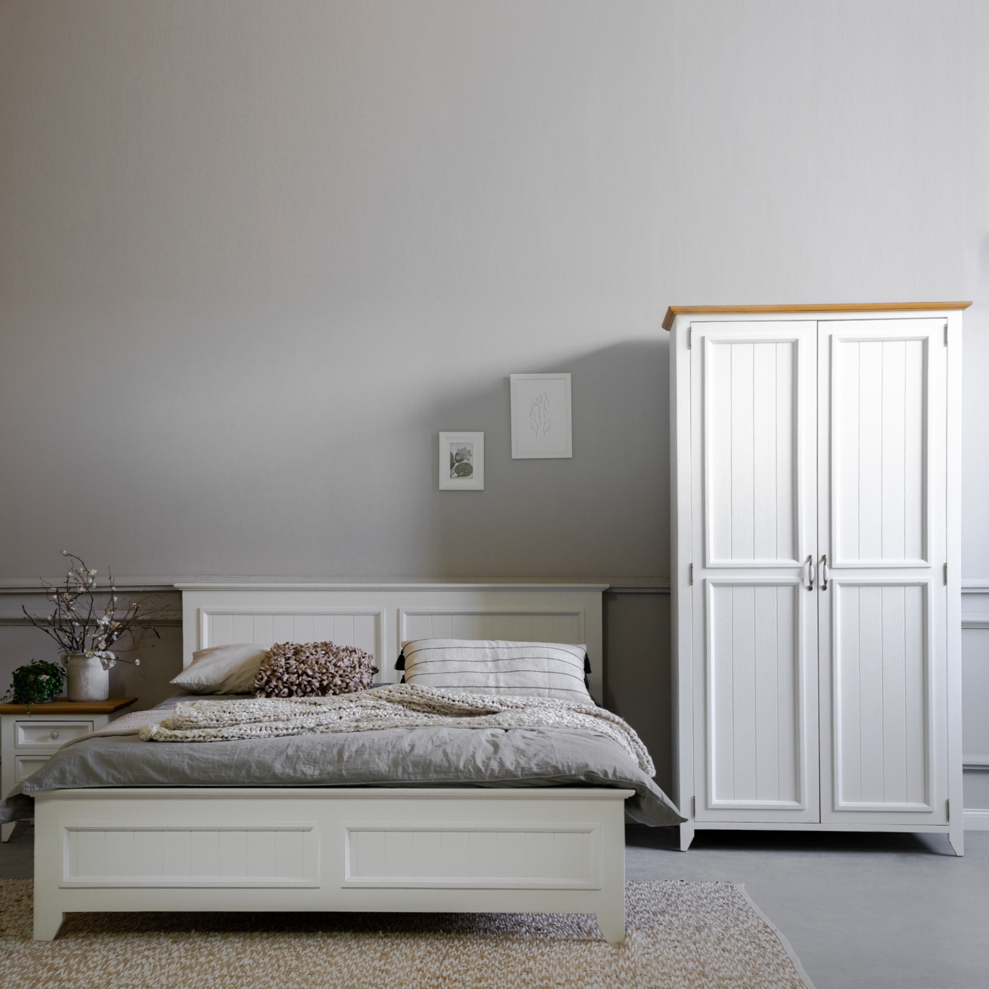 Das Holzbett Lille im Provence-Stil ist ideal für Liebhaber einer natürlichen und gesunden Schlafzimmeratmosphäre. Es bietet mit den Maßen für Matratzen 180 x 200 cm eine großzügige Liegefläche. Gefertigt aus hochwertigem Kiefernholz, besticht das Bett durch seine natürliche Optik und den charmanten Landhausstil. Die weiße Farbe und das ökologische Material schaffen ein harmonisches und beruhigendes Ambiente. Perfekt geeignet für alle, die Wert auf Qualität und Design legen.